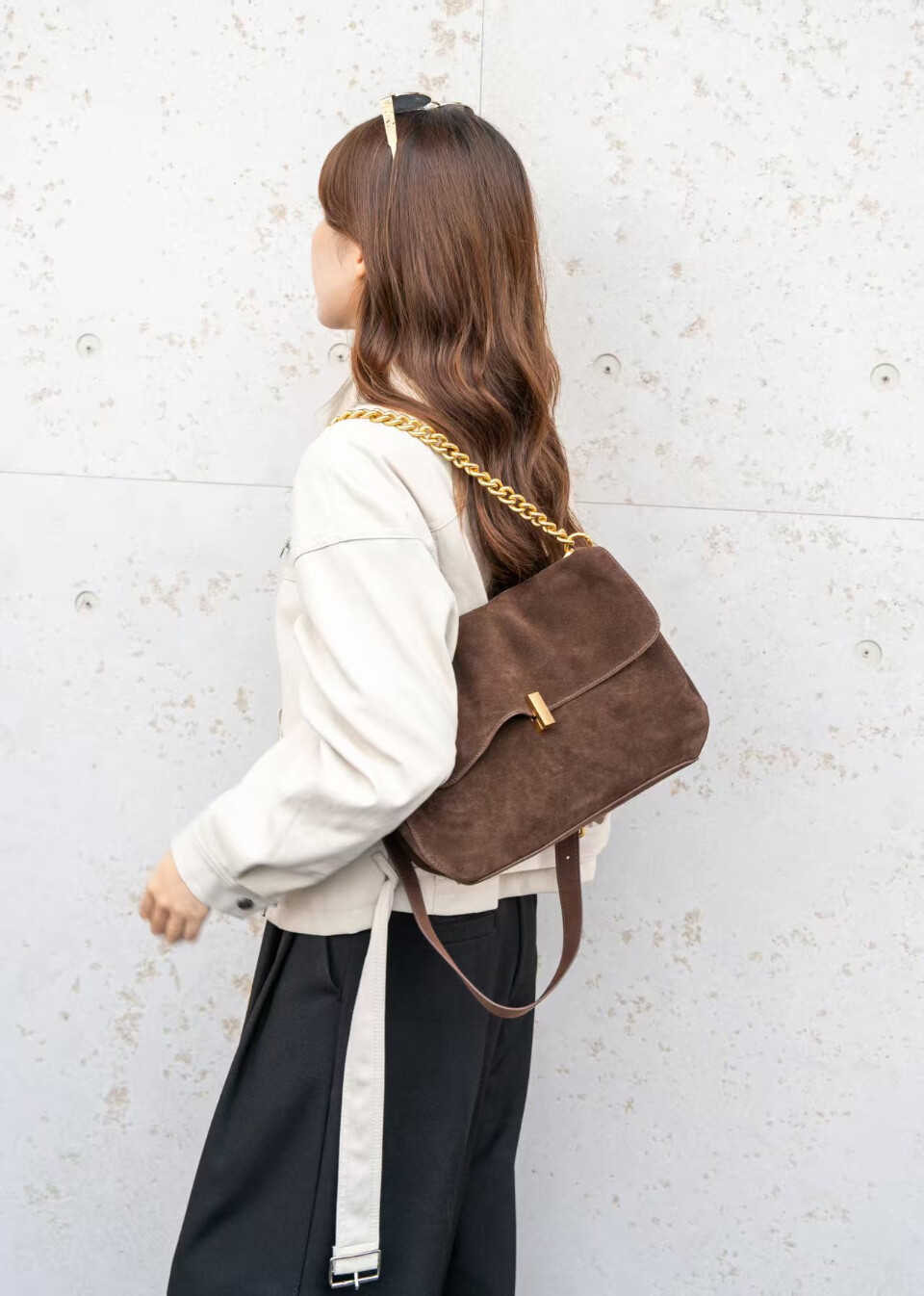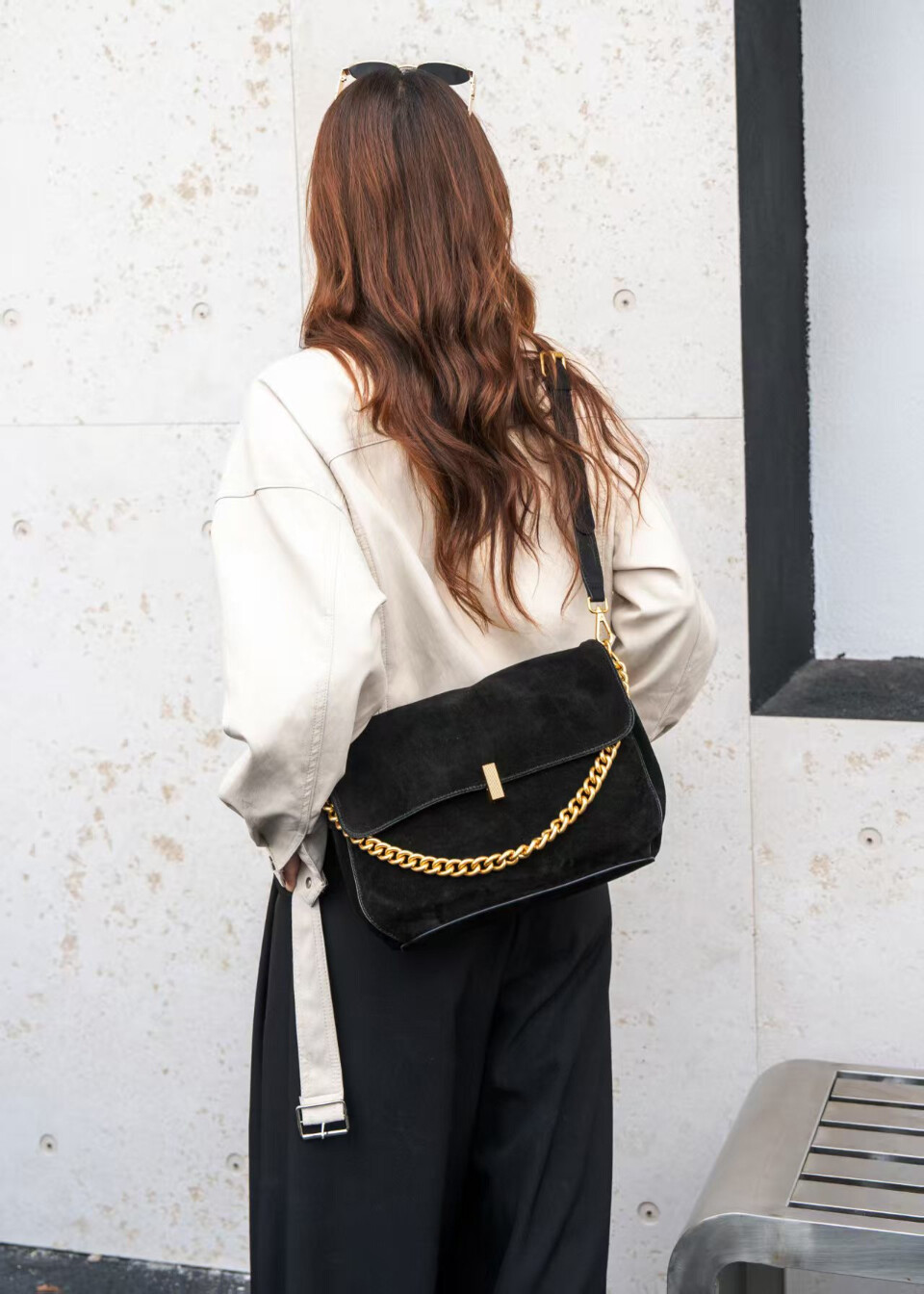 [천연가죽 기획] 마드리드 골드 체인 스웨이드 숄더백