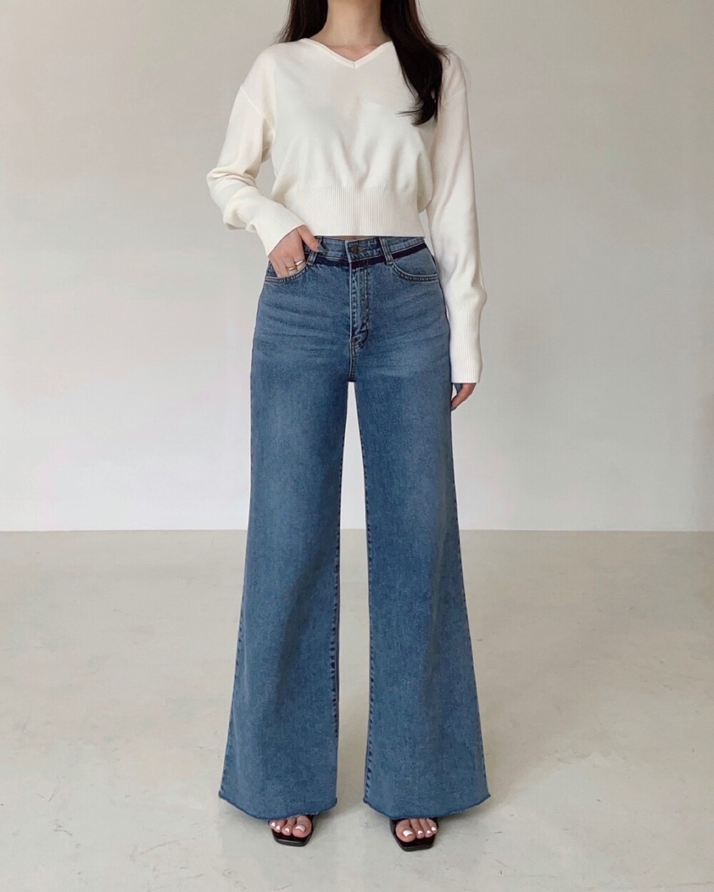 자아내는 깔끔한 와이드 핏.