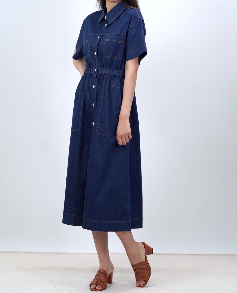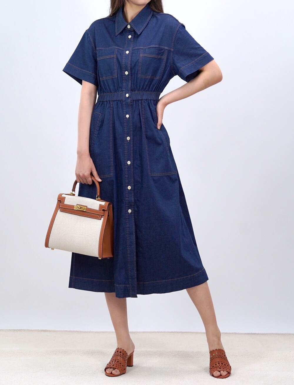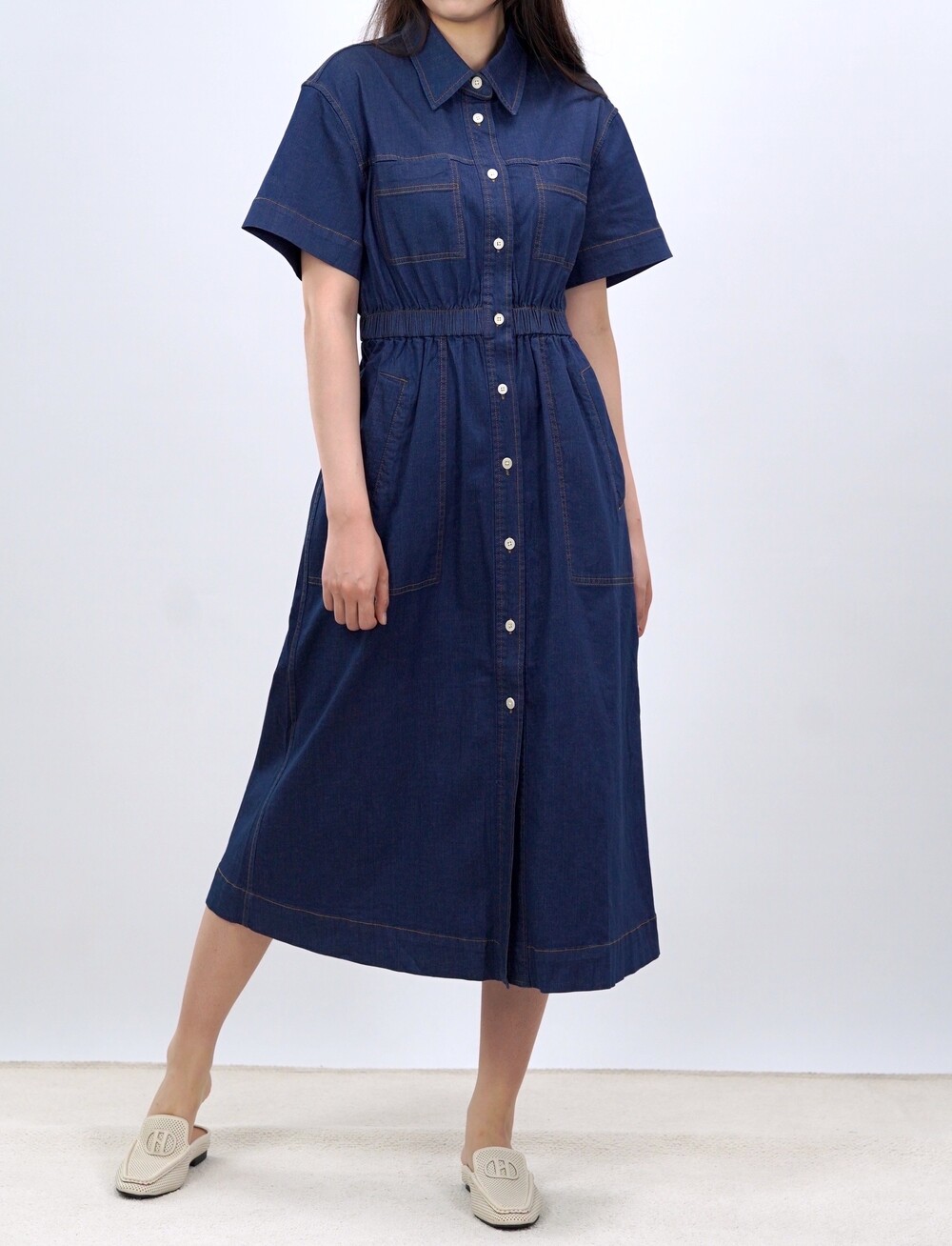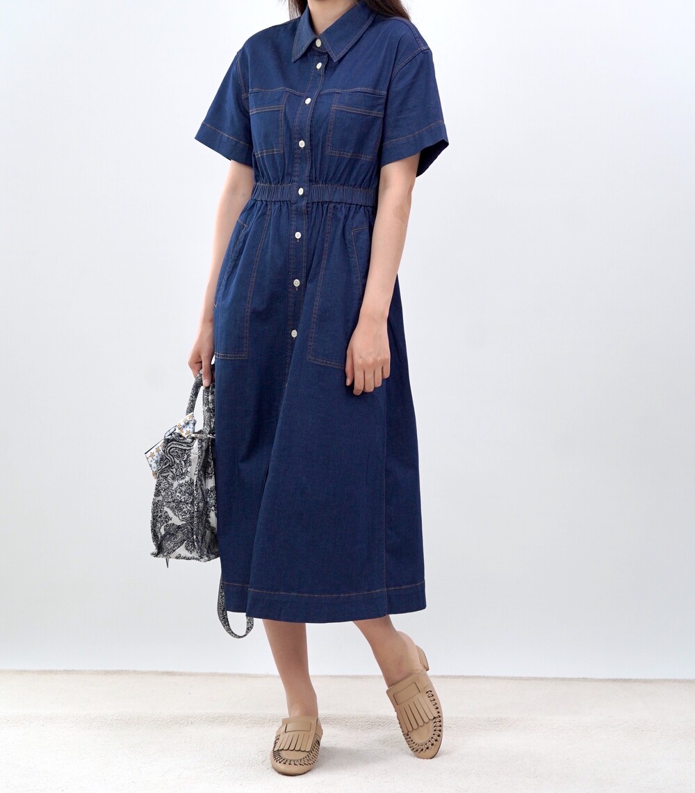 브루클린 스티치 데님 포켓 드레스