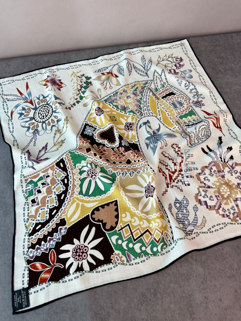 [프리미엄 울실크] 이탈리안 홀스 유니크 스카프
