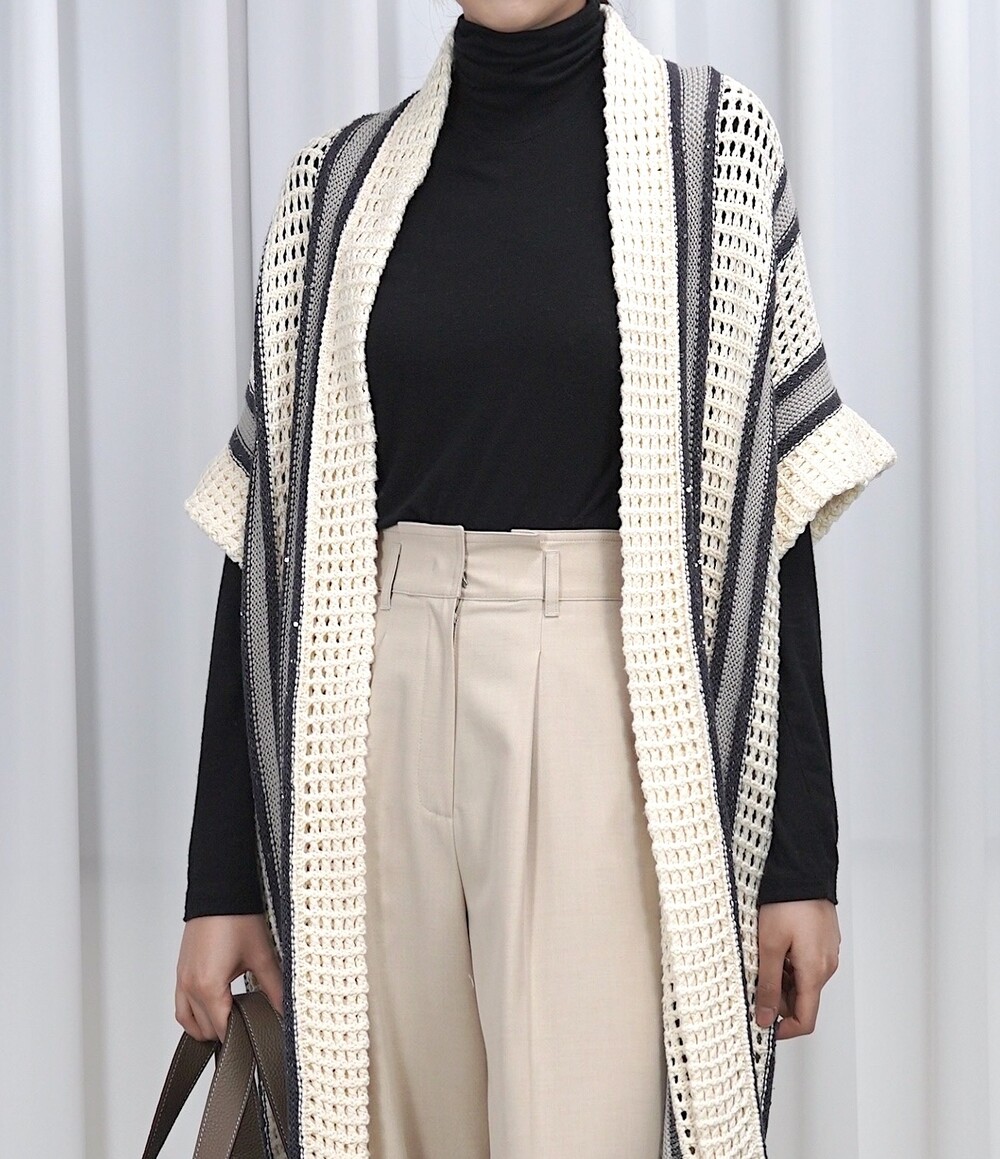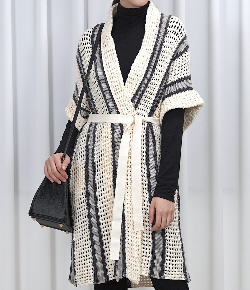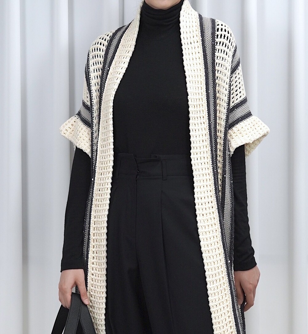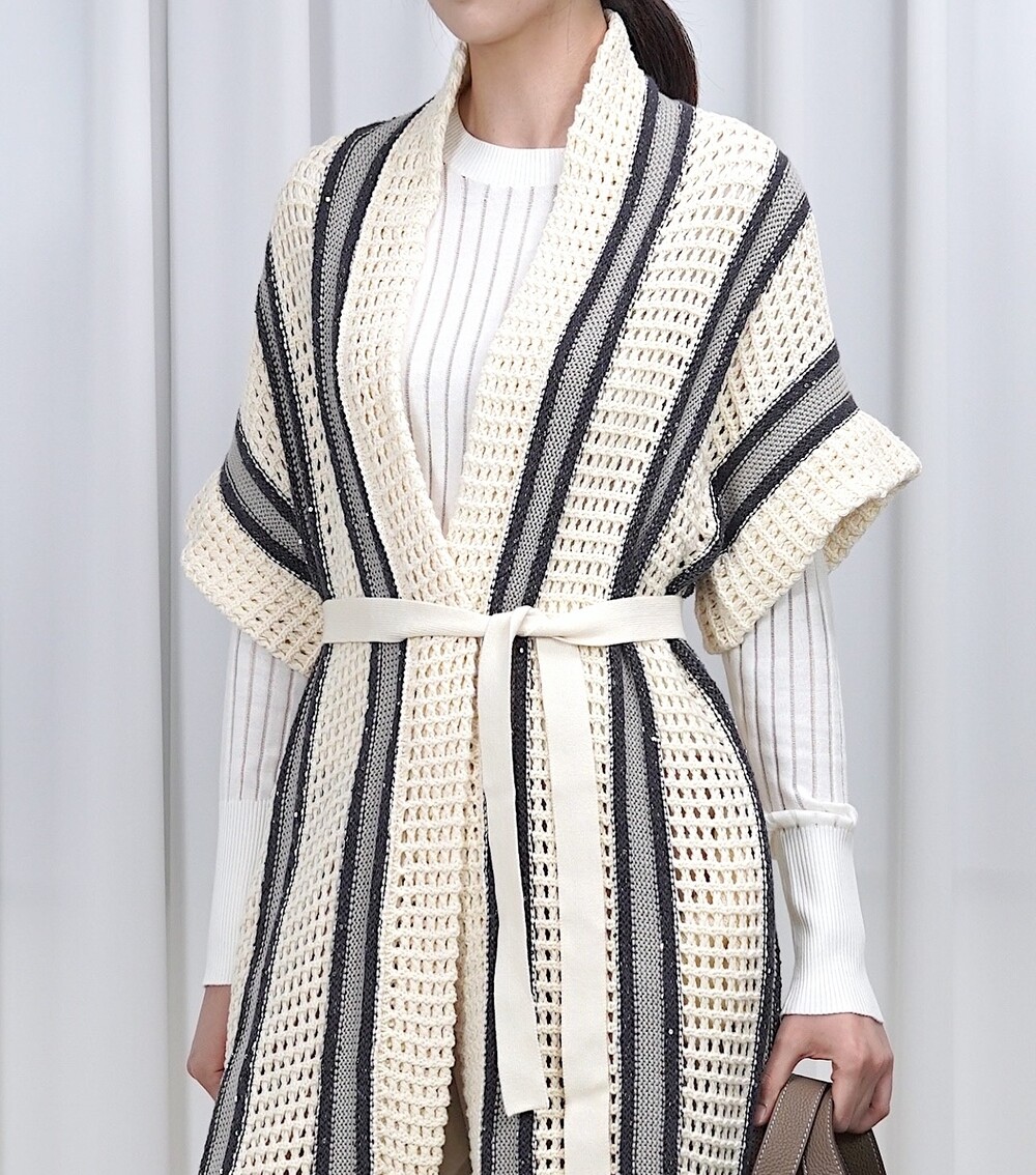[수입 프리미엄] 피렌체 유니크 넷 니트 롱 가디건