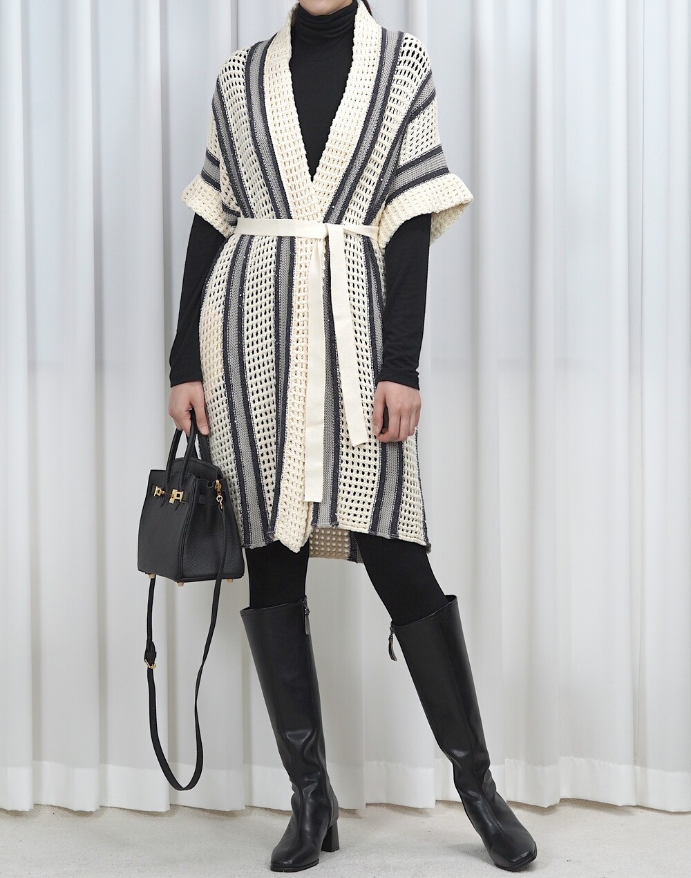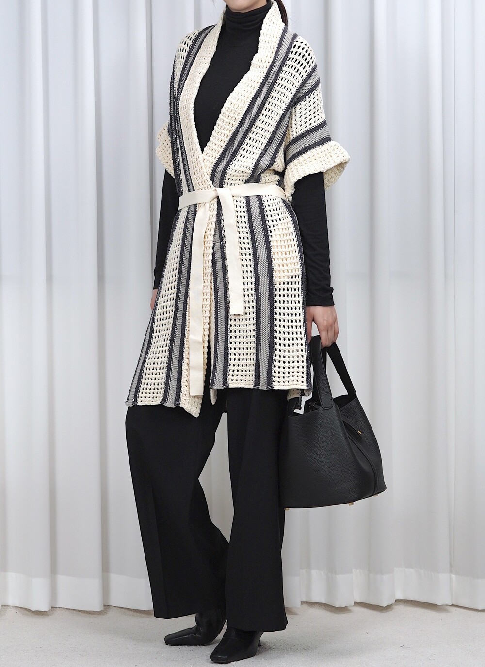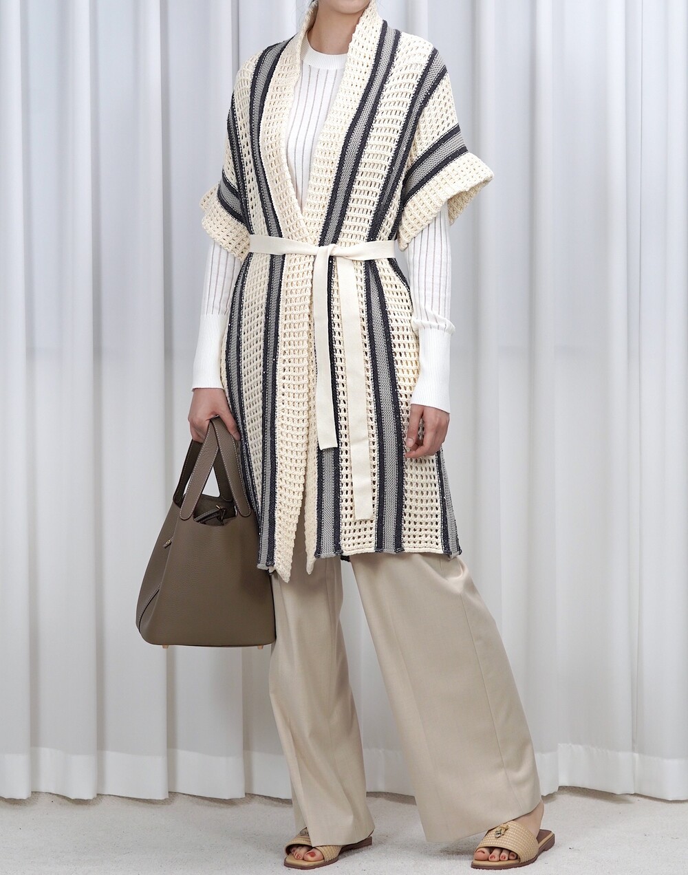 [수입 프리미엄] 피렌체 유니크 넷 니트 롱 가디건