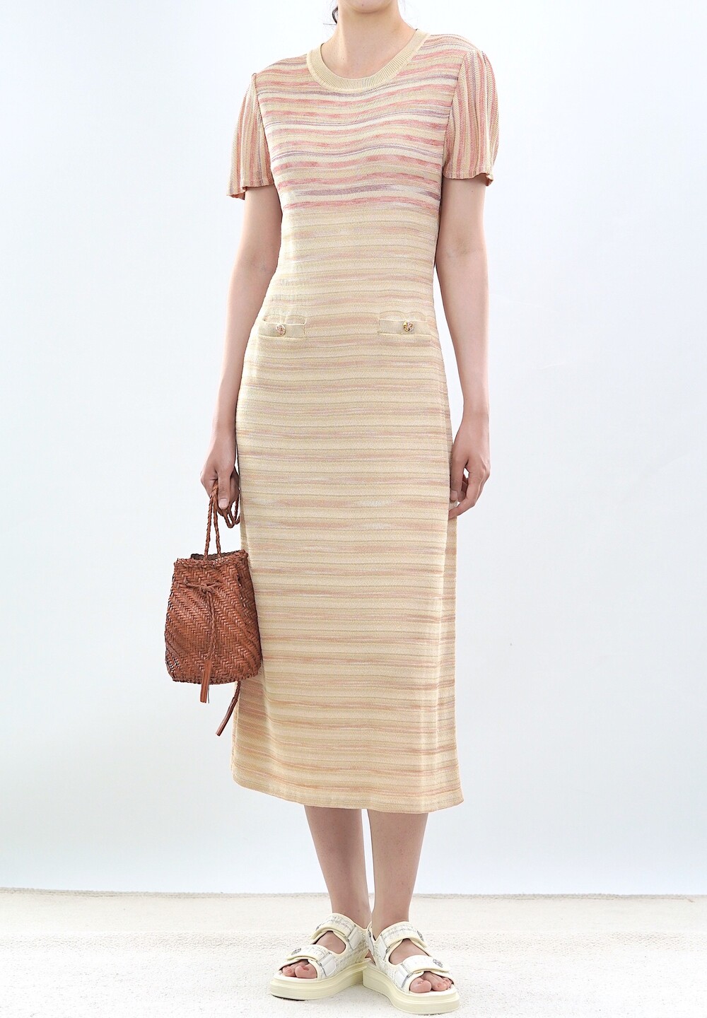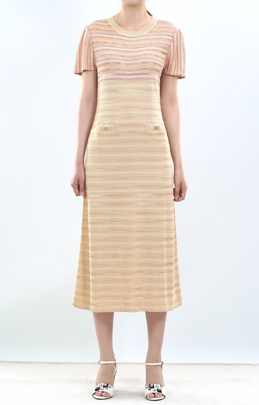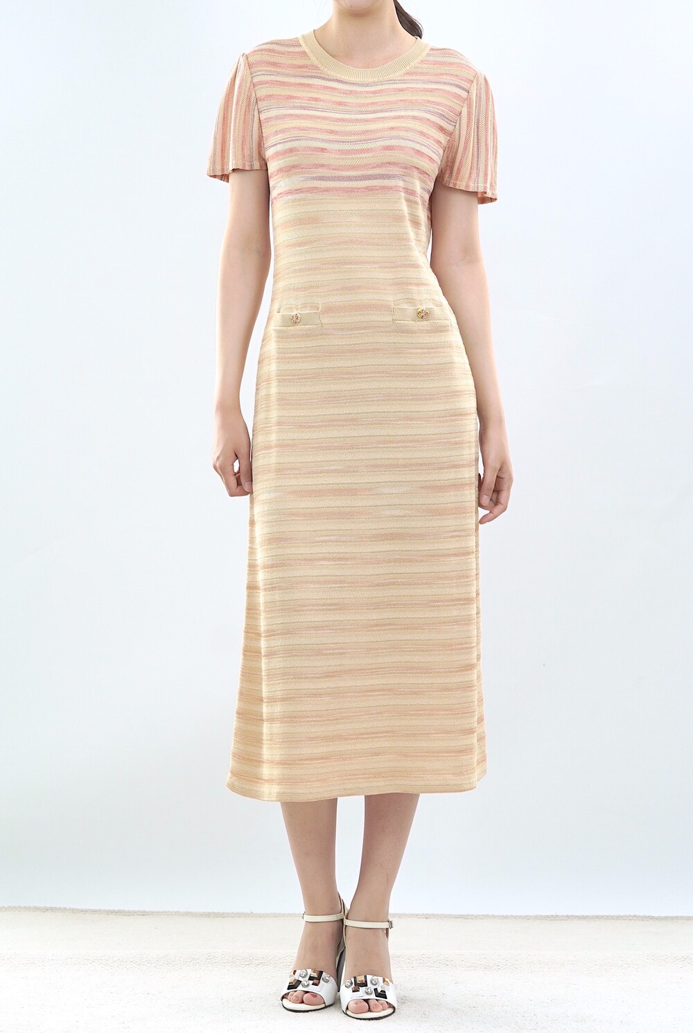 파리 골든 스트라이프 니트 드레스