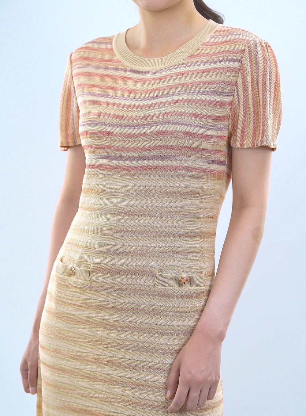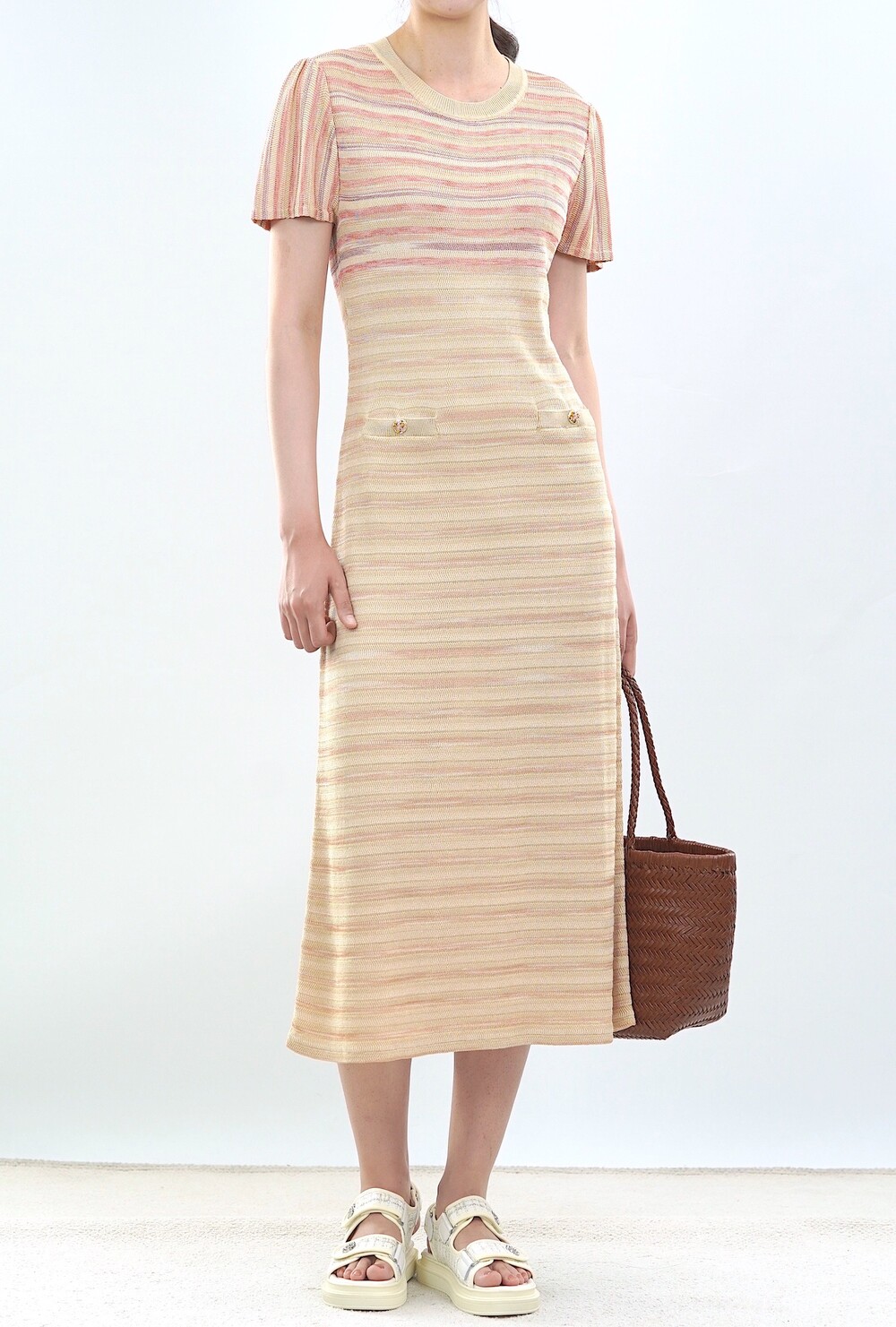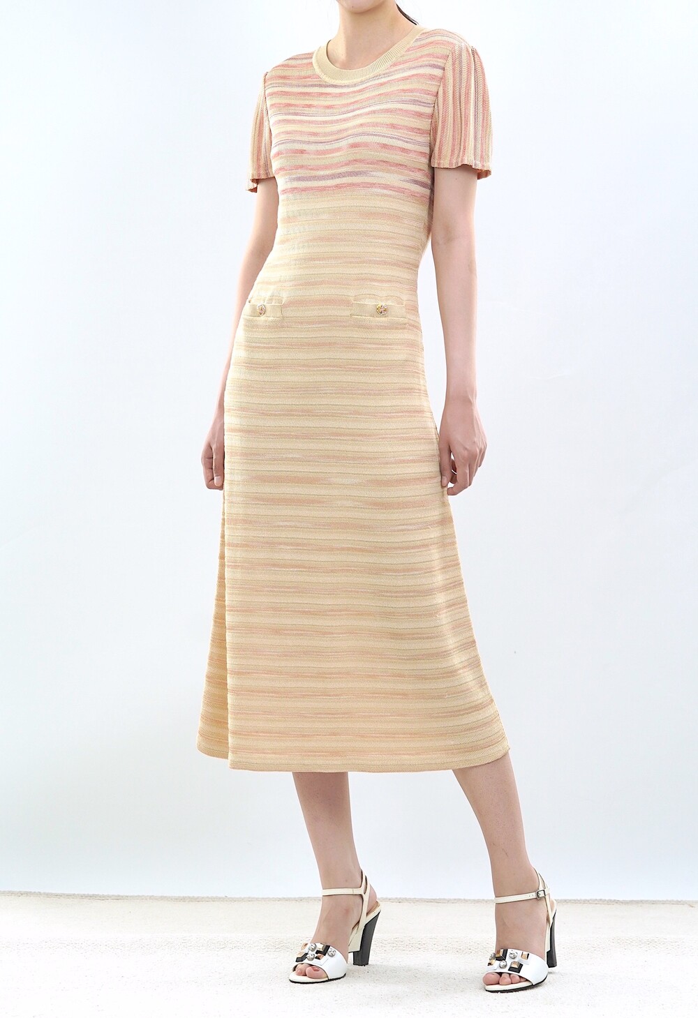 파리 골든 스트라이프 니트 드레스