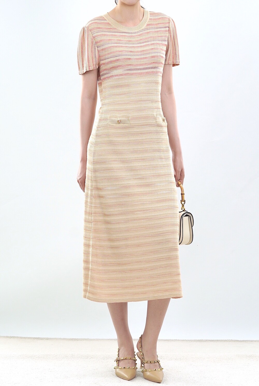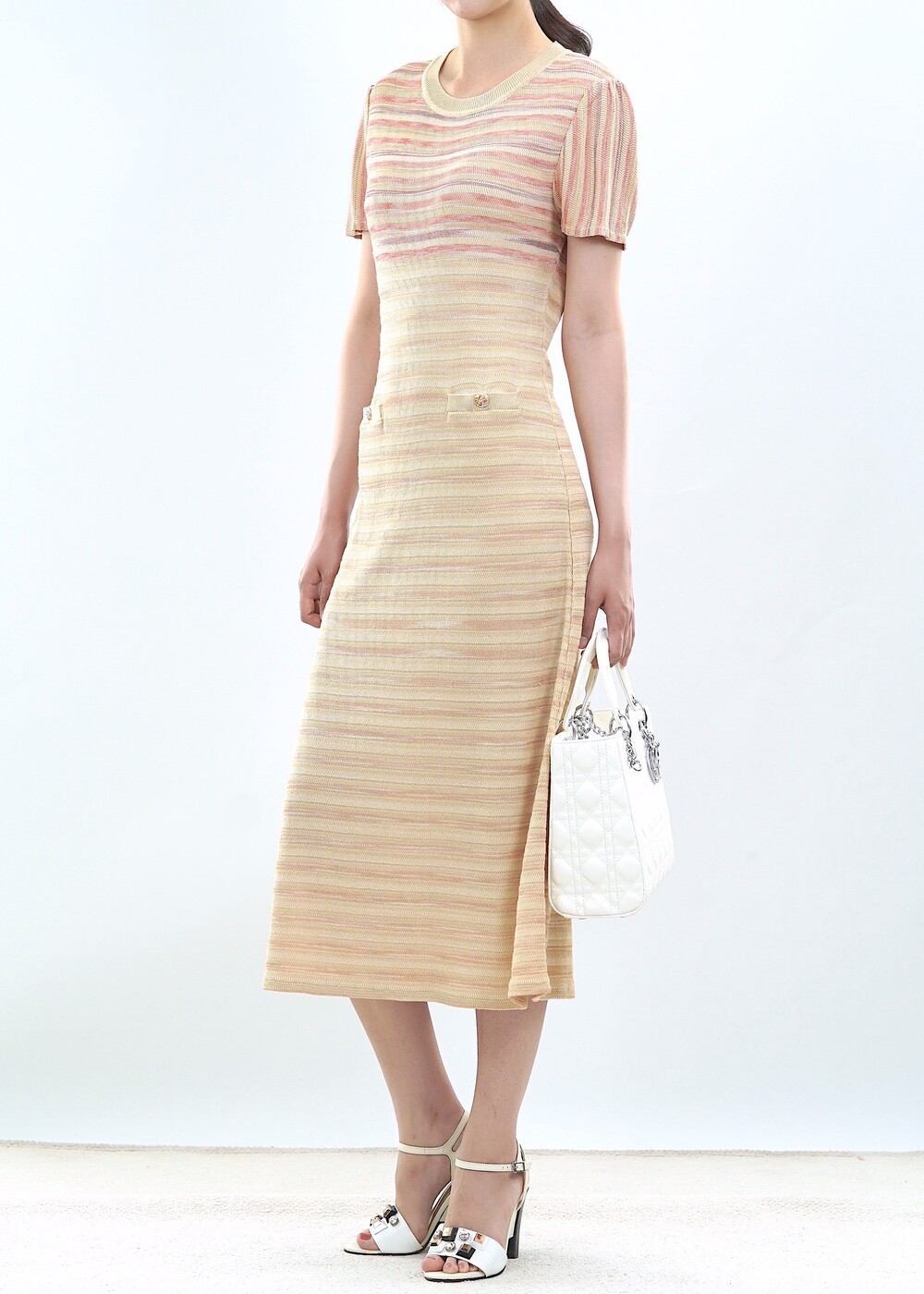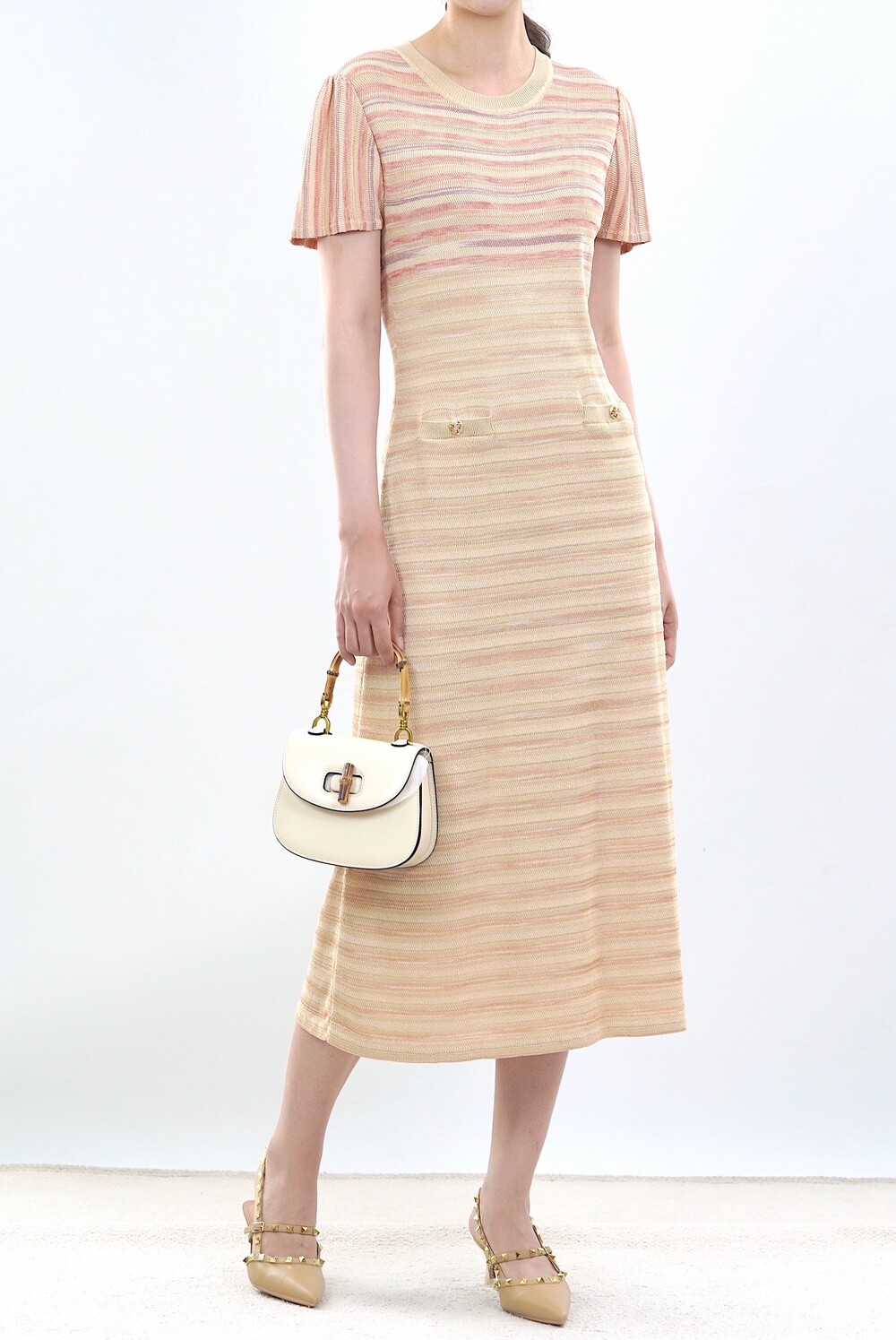 [수입 프리미엄] 파리 골든 스트라이프 니트 드레스
