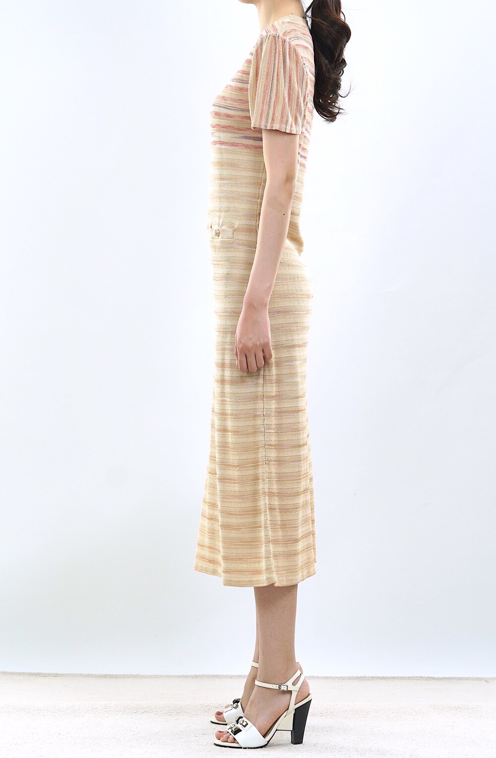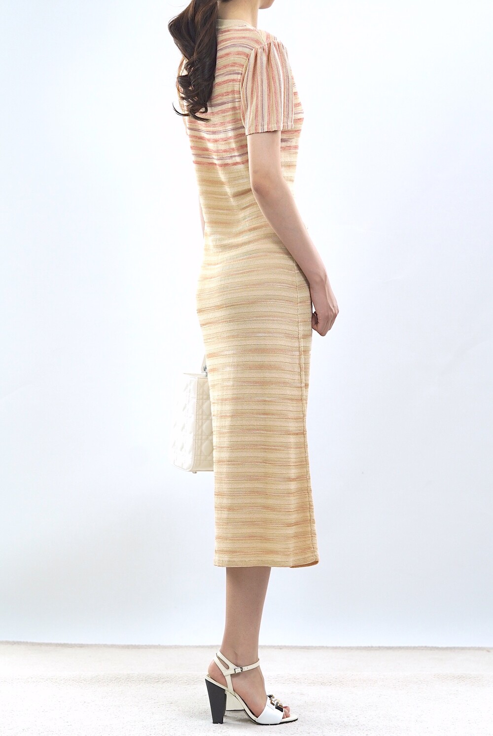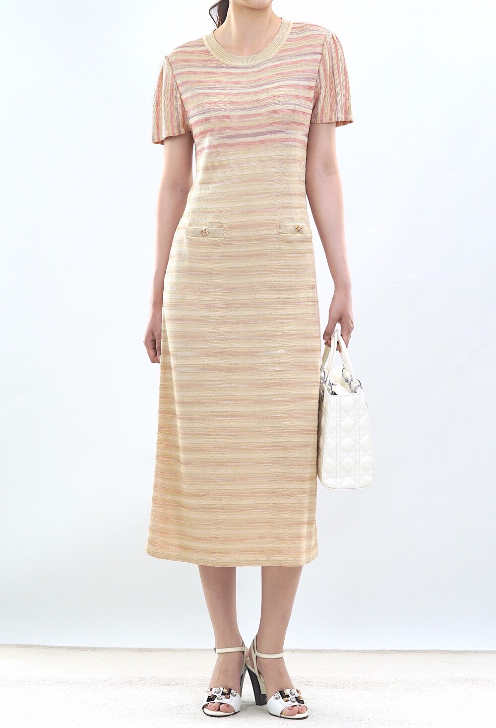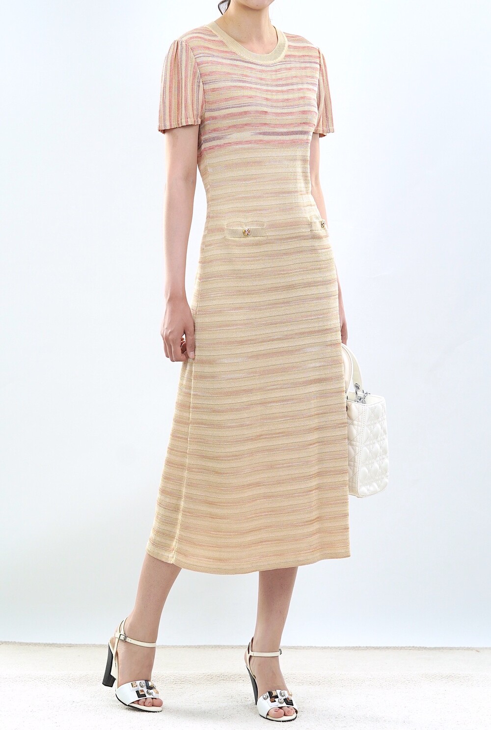 [수입 프리미엄] 파리 골든 스트라이프 니트 드레스
