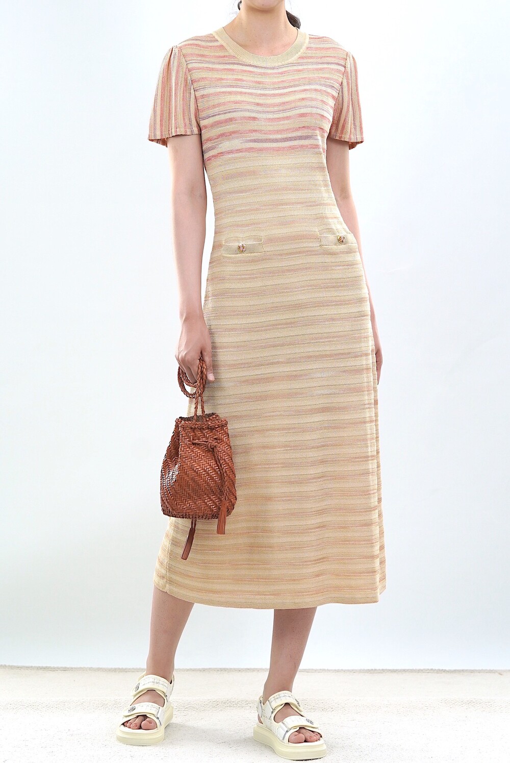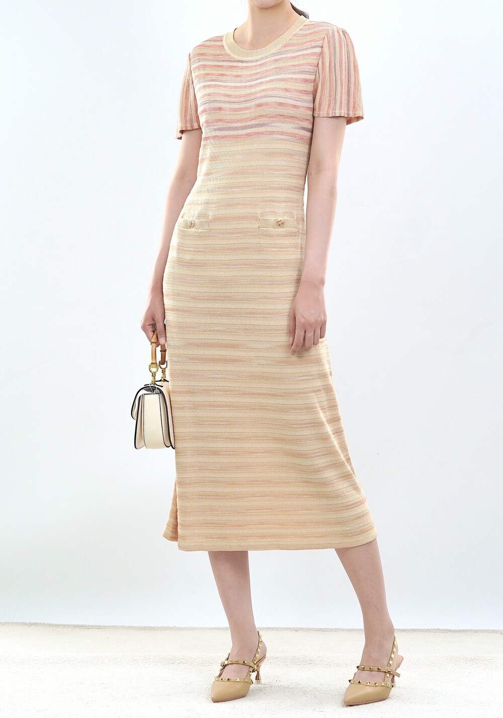 골든 스트라이프 니트 드레스