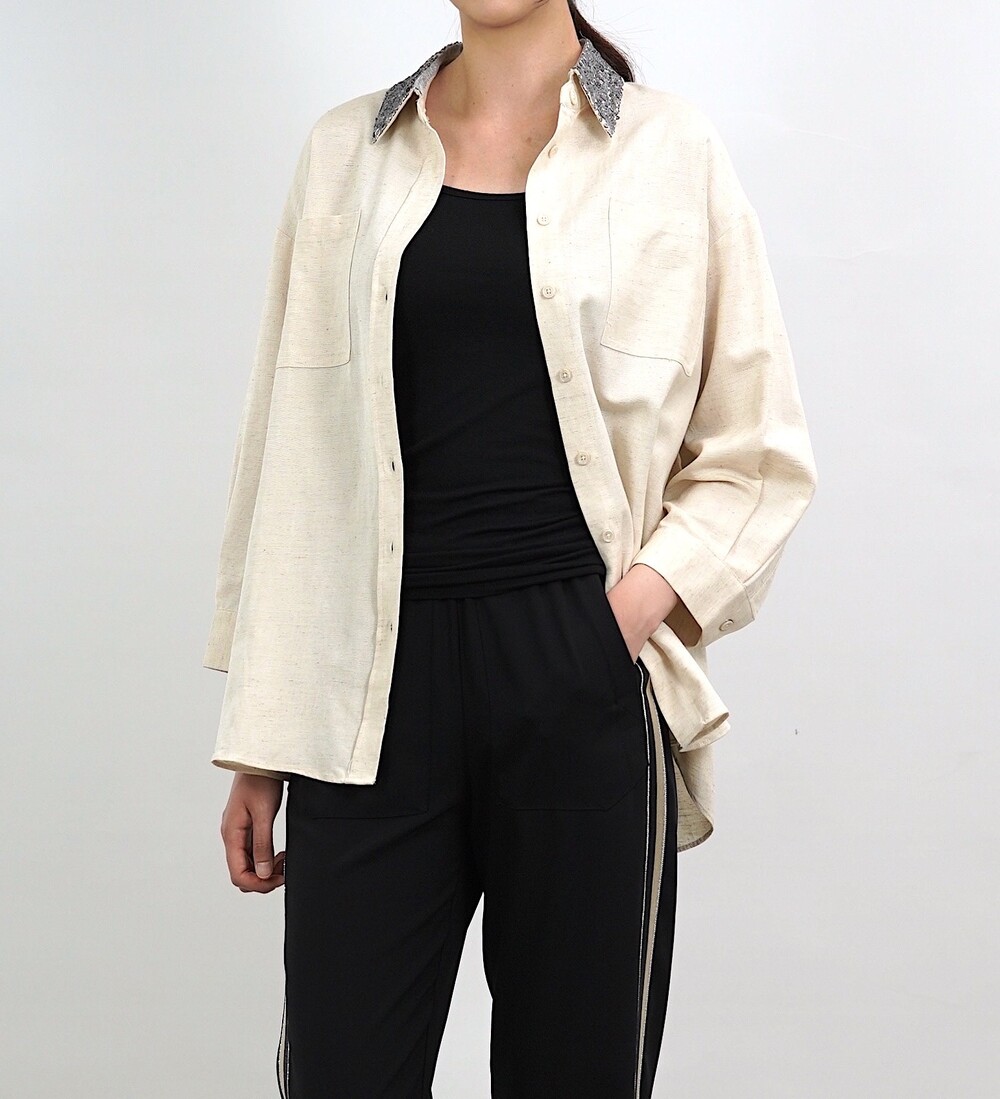 [수입 프리미엄] 피렌체 샤이닝 칼라 내츄럴 린넨 셋업