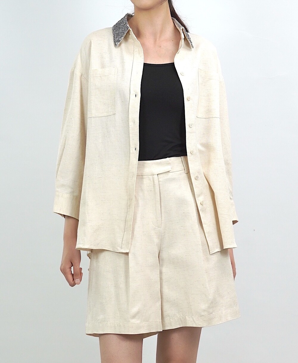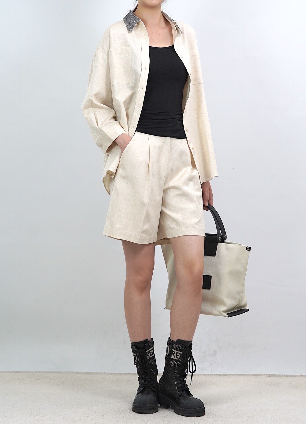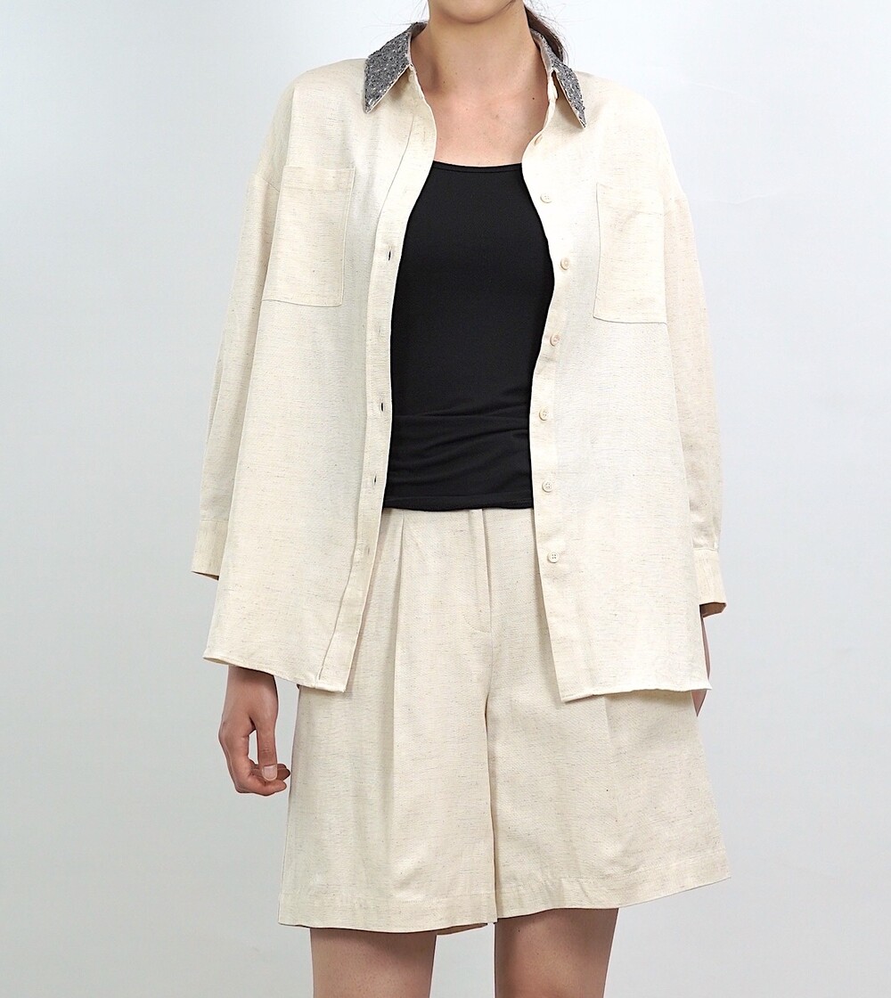 피렌체 샤이닝 칼라 내츄럴 린넨 셋업