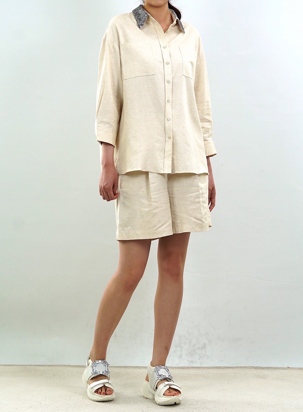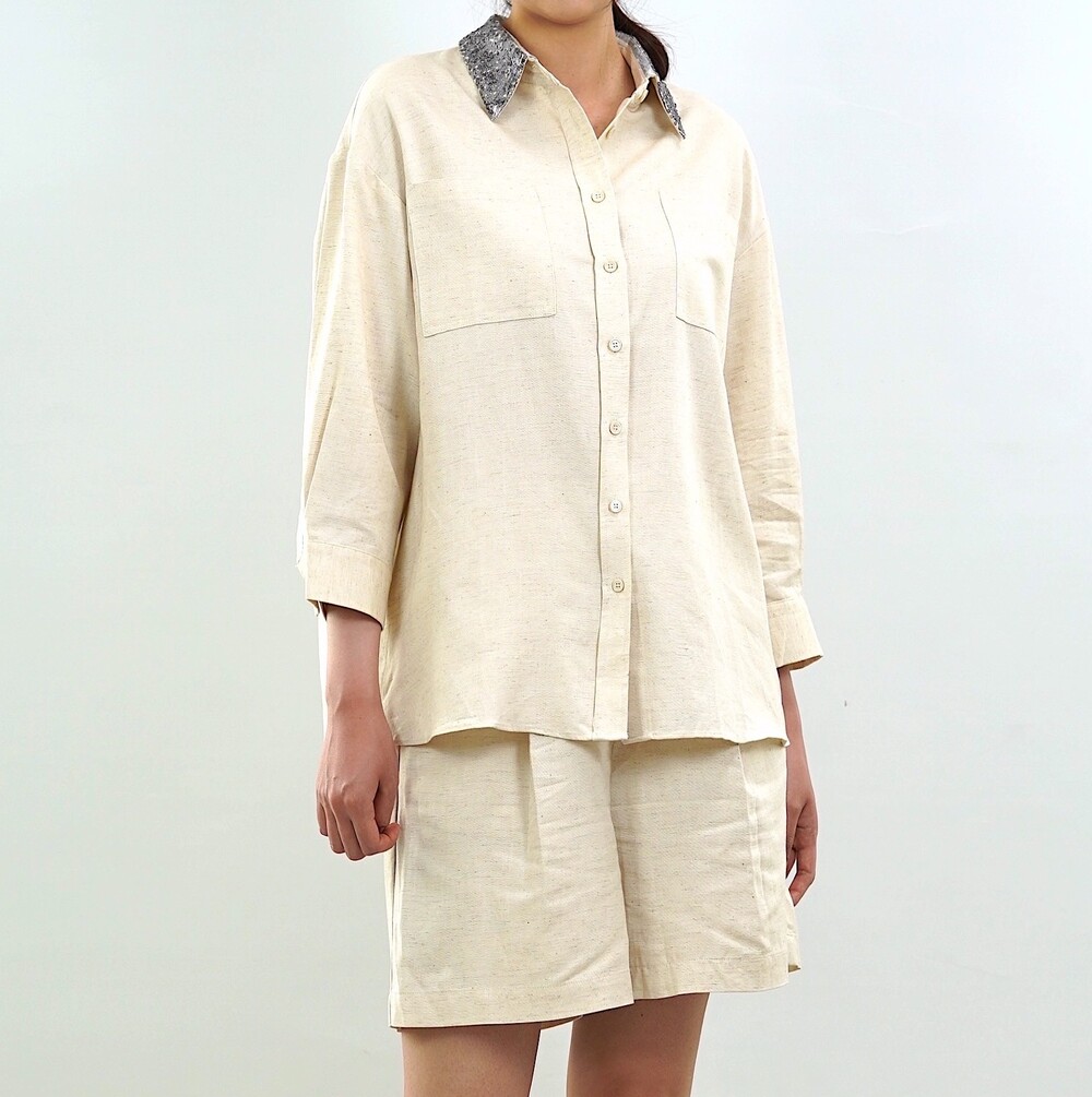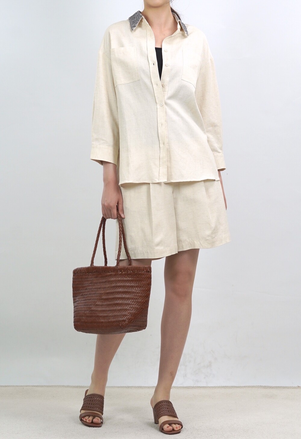 피렌체 샤이닝 칼라 내츄럴 린넨 셋업