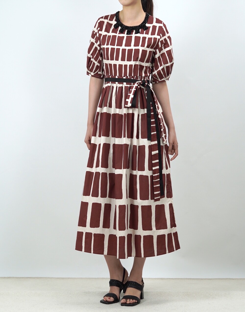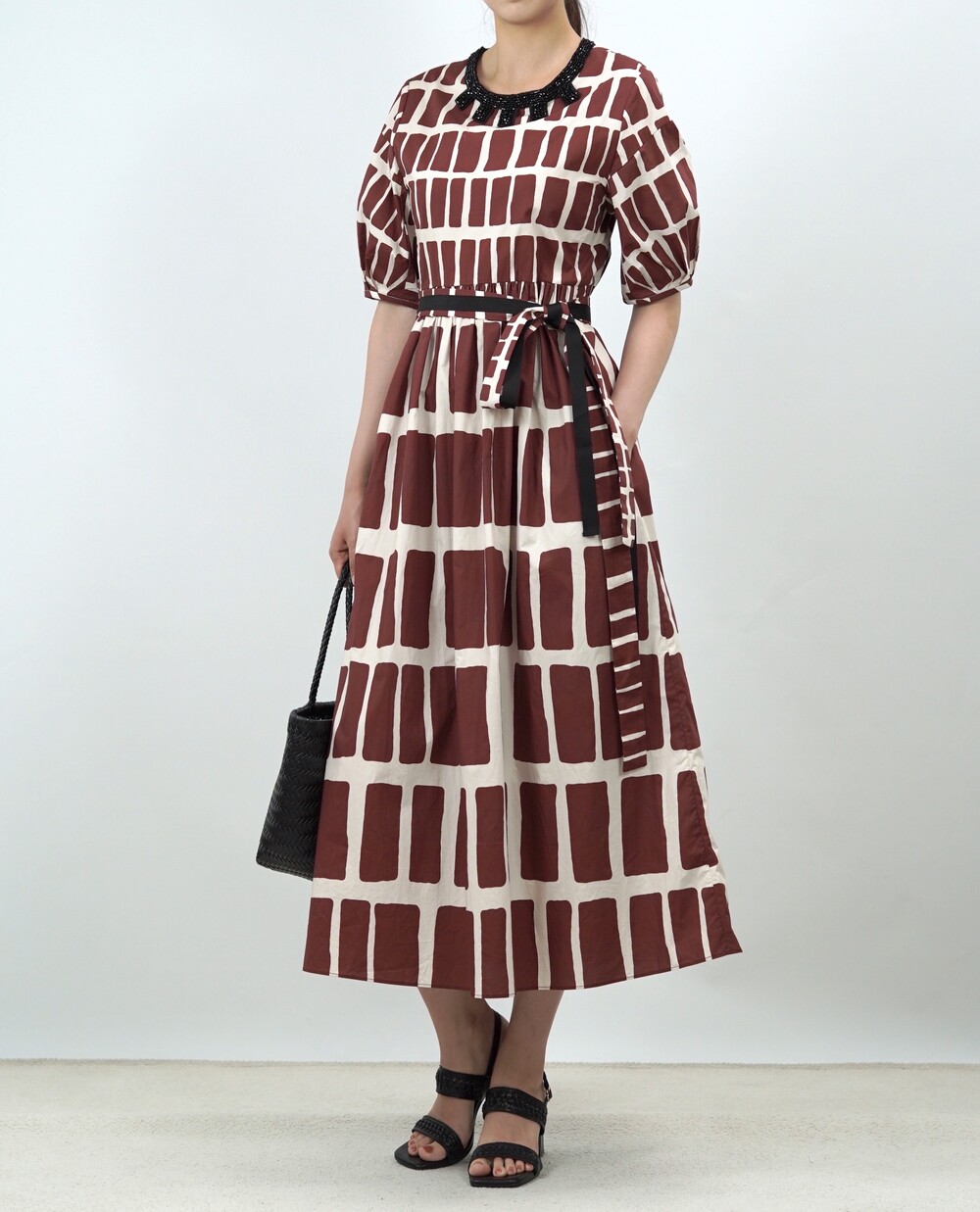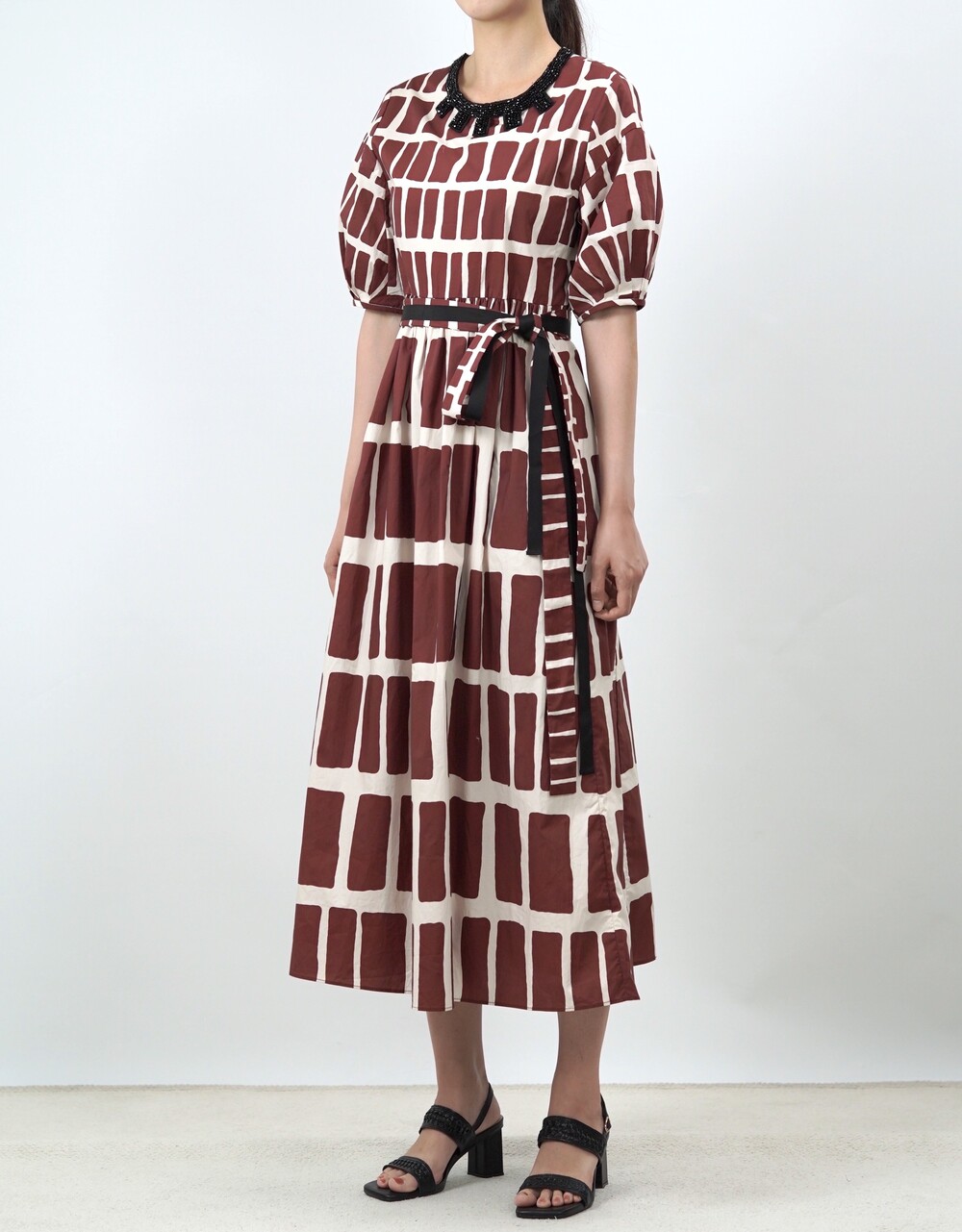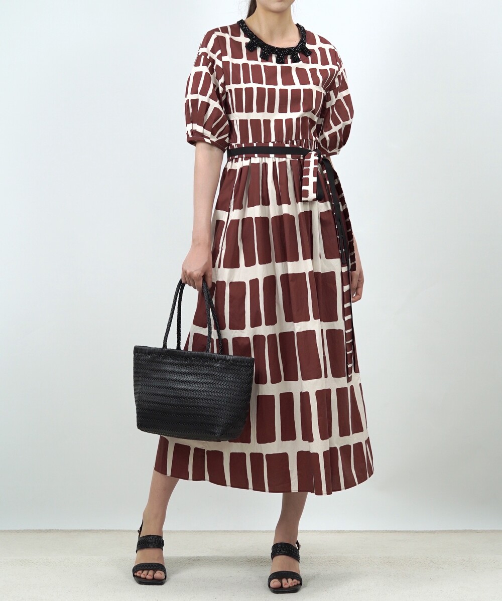 [수입 프리미엄] 밀란 내츄럴 브릭 프린트 드레스