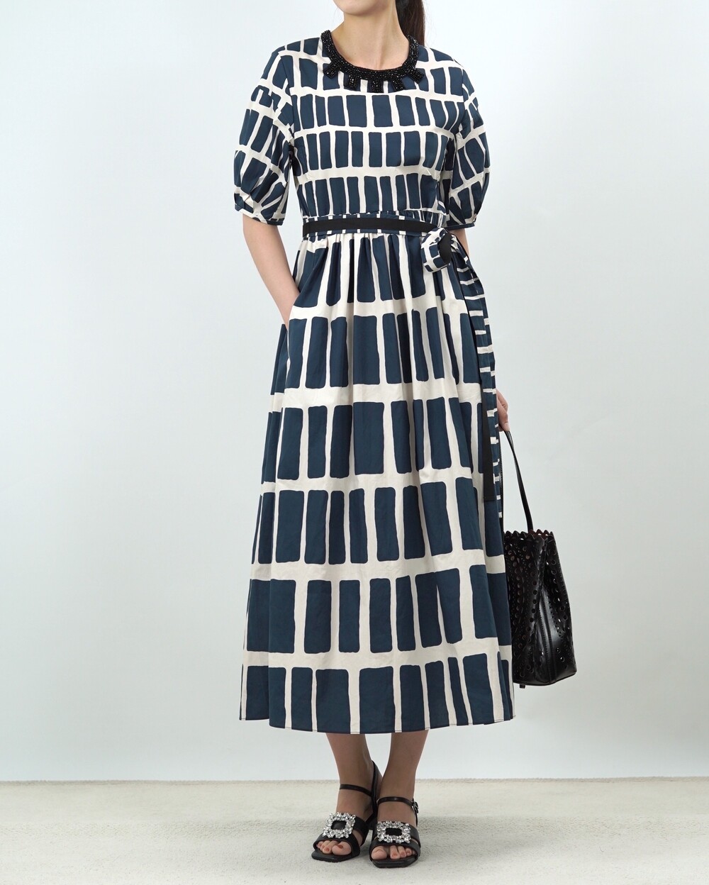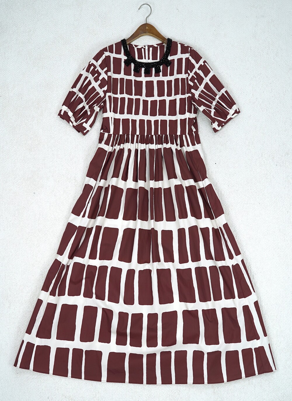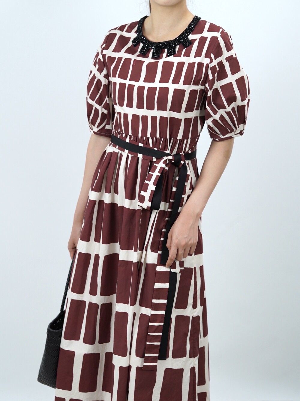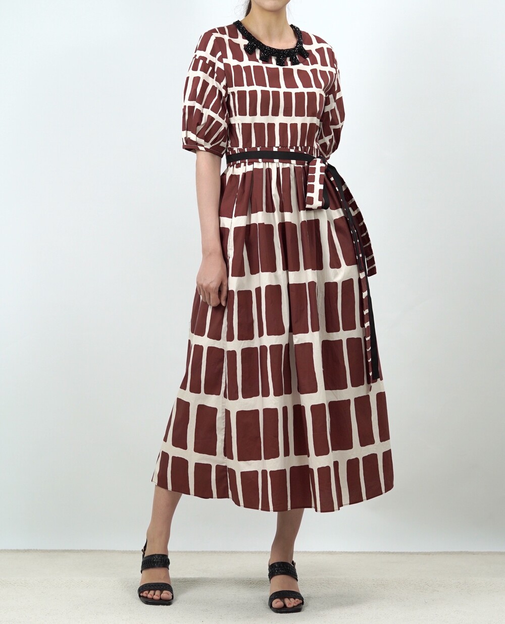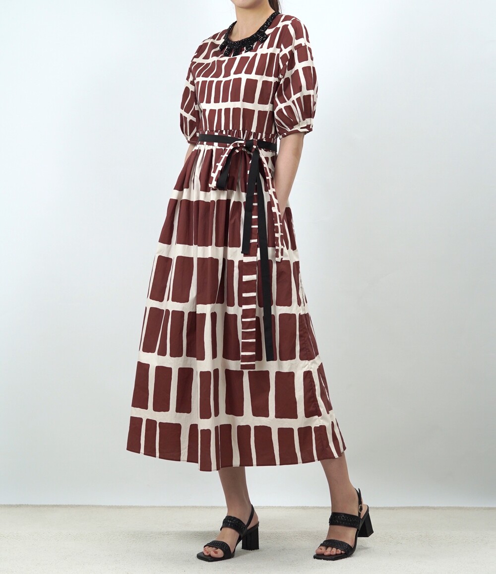 [수입 프리미엄] 밀란 내츄럴 브릭 프린트 드레스