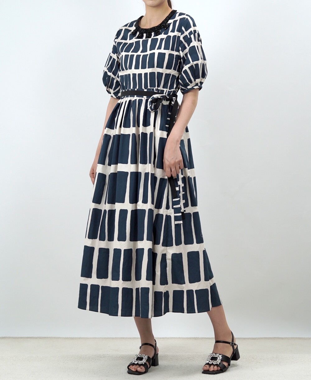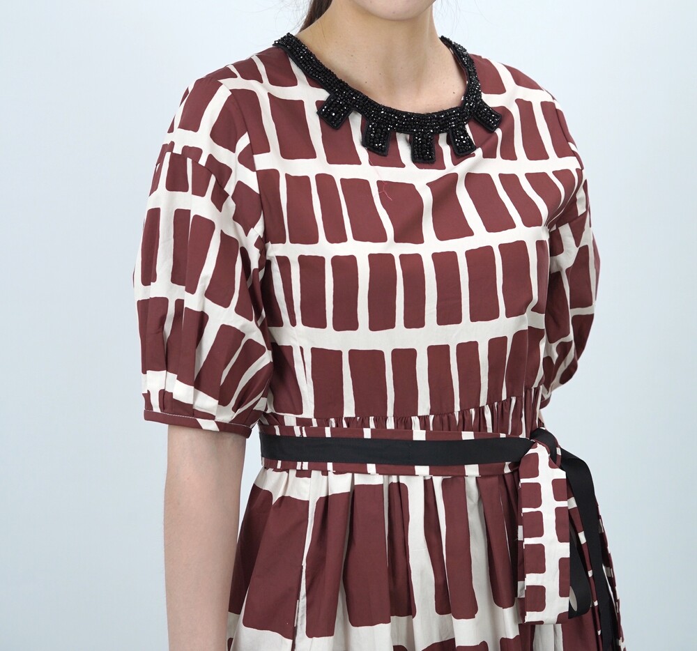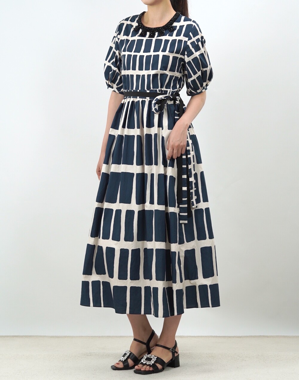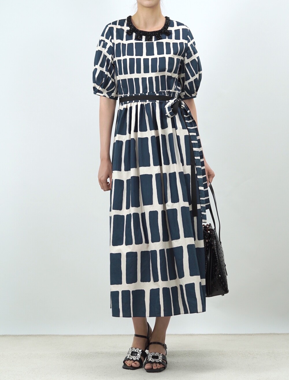 [수입 프리미엄] 밀란 내츄럴 브릭 프린트 드레스