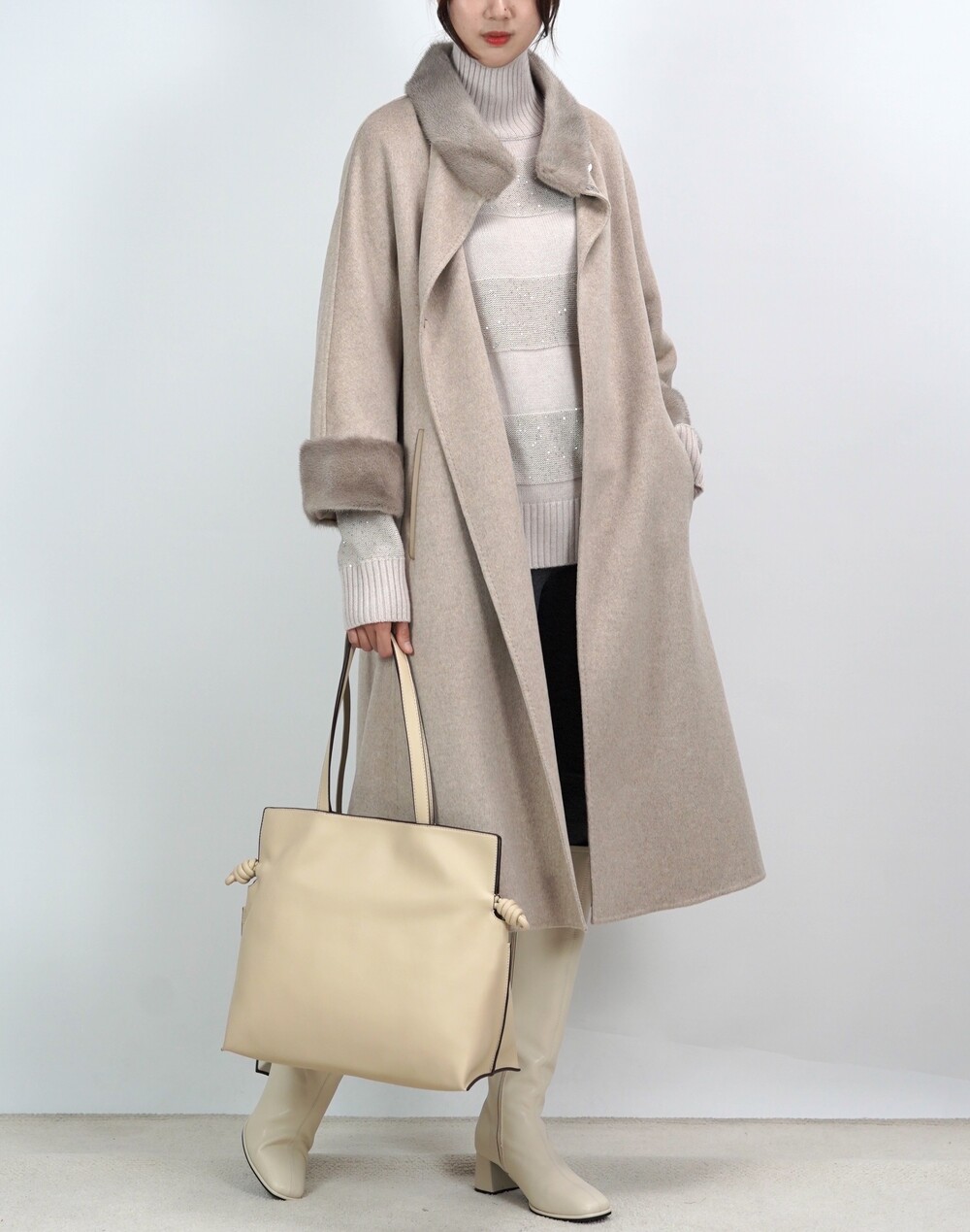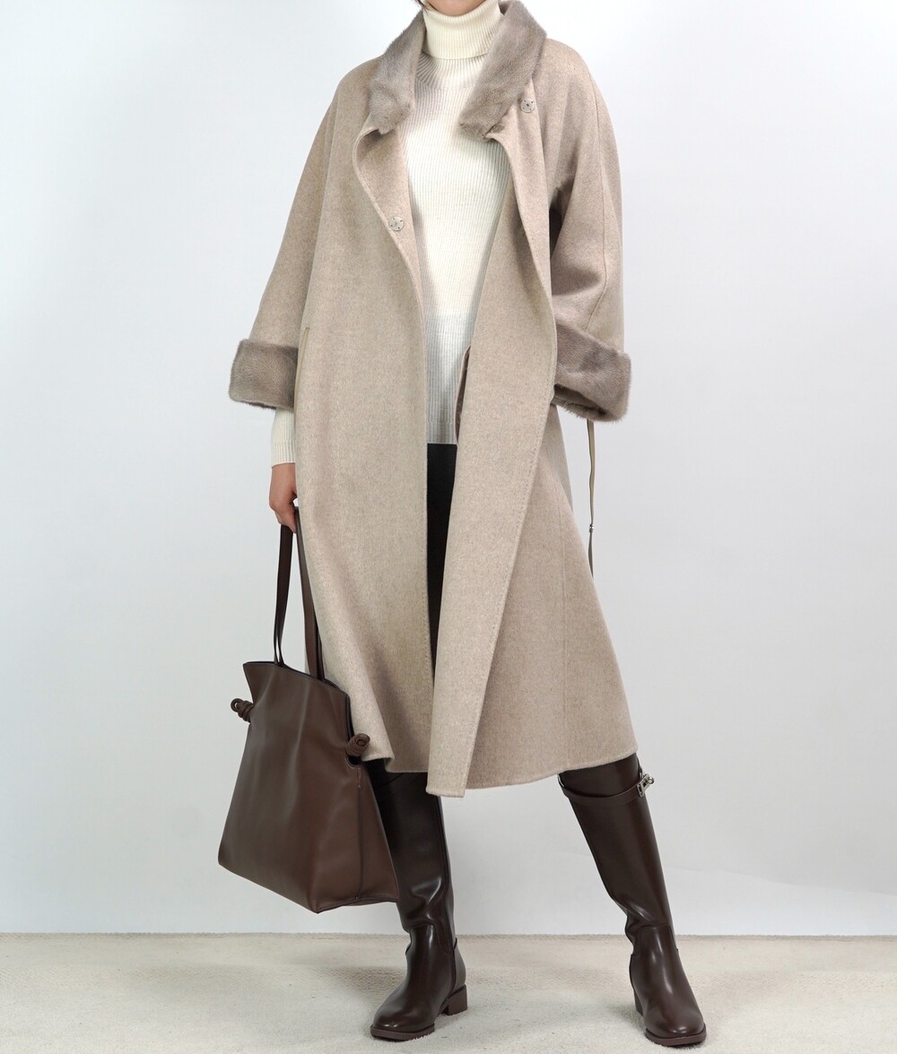 [슈퍼 프리미엄 수입] 프랑수아즈 노블 클래식 밍크 트리밍 코트