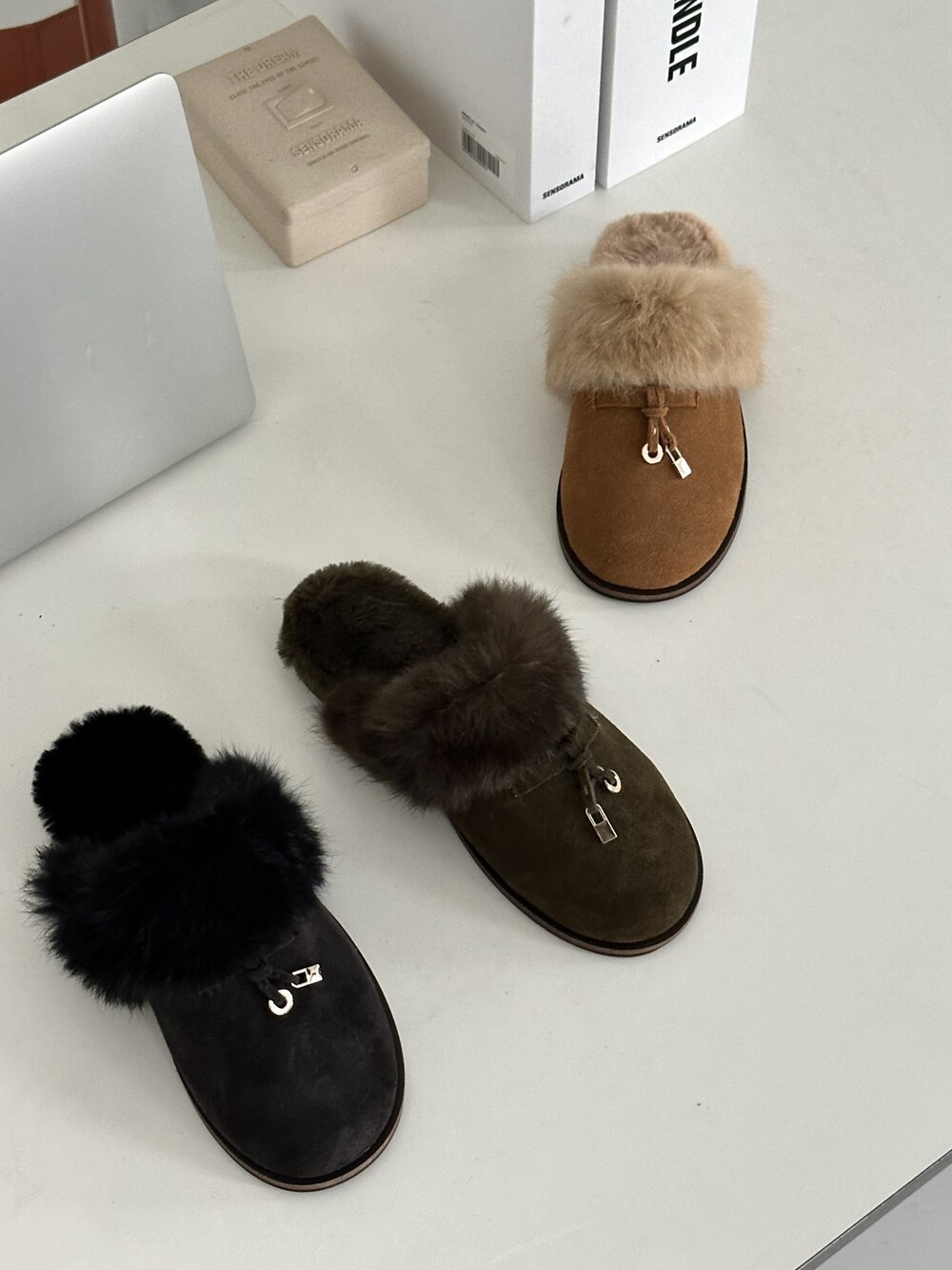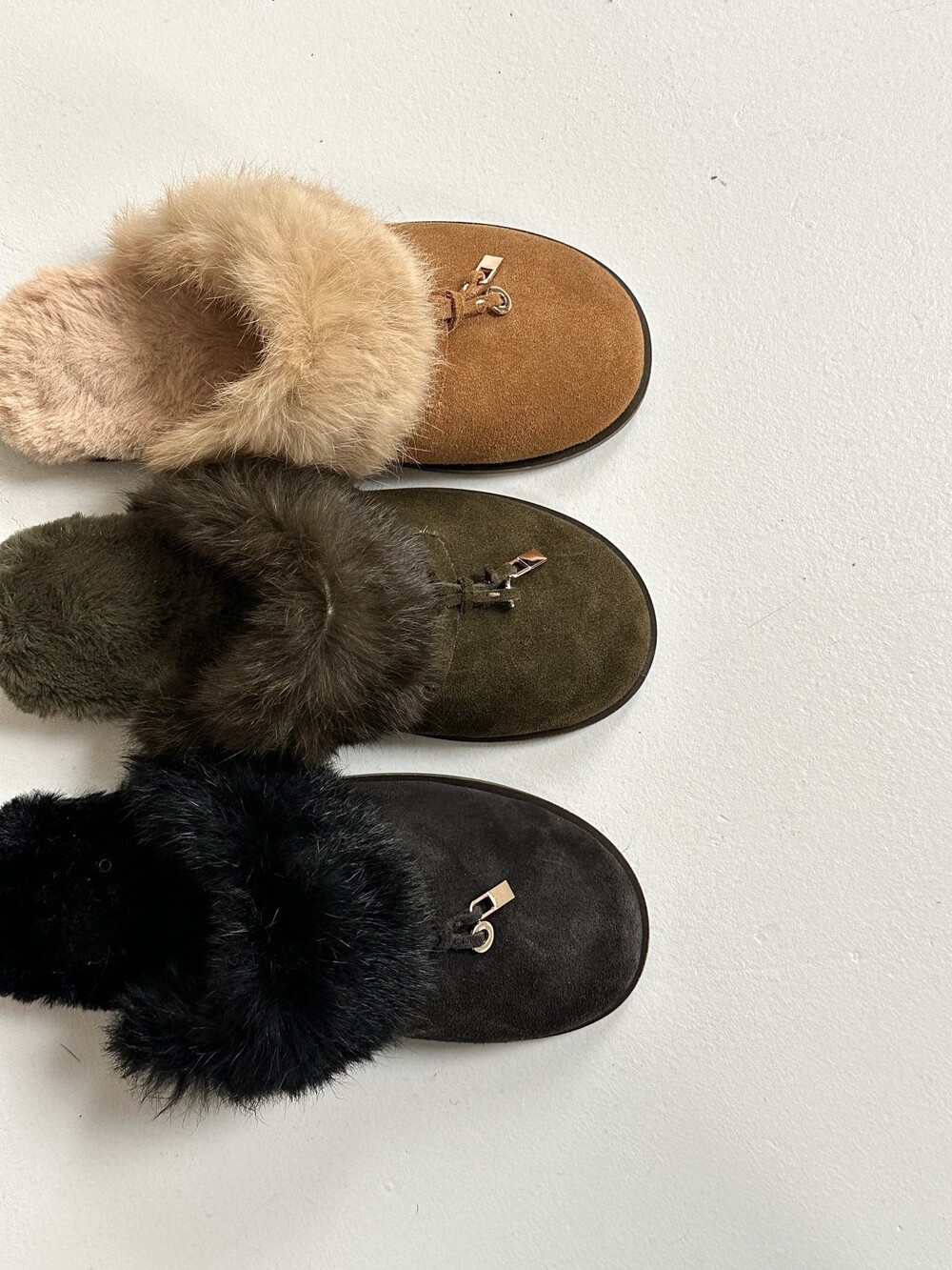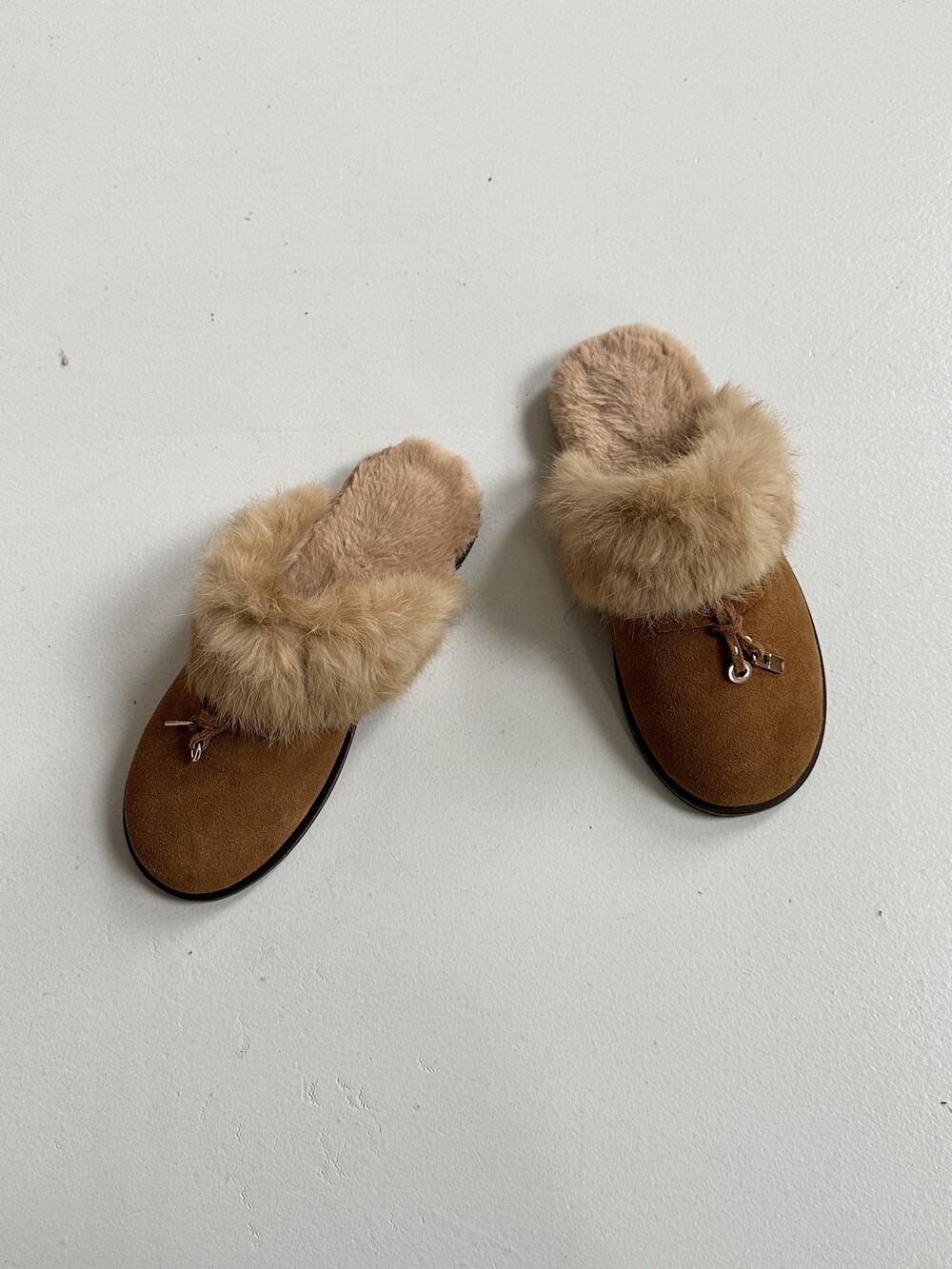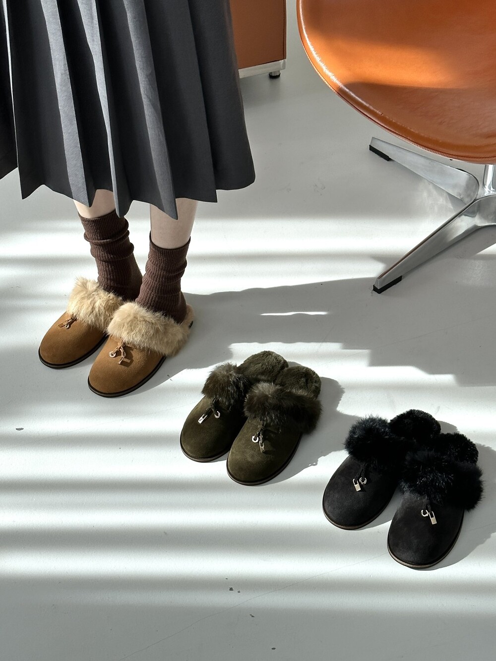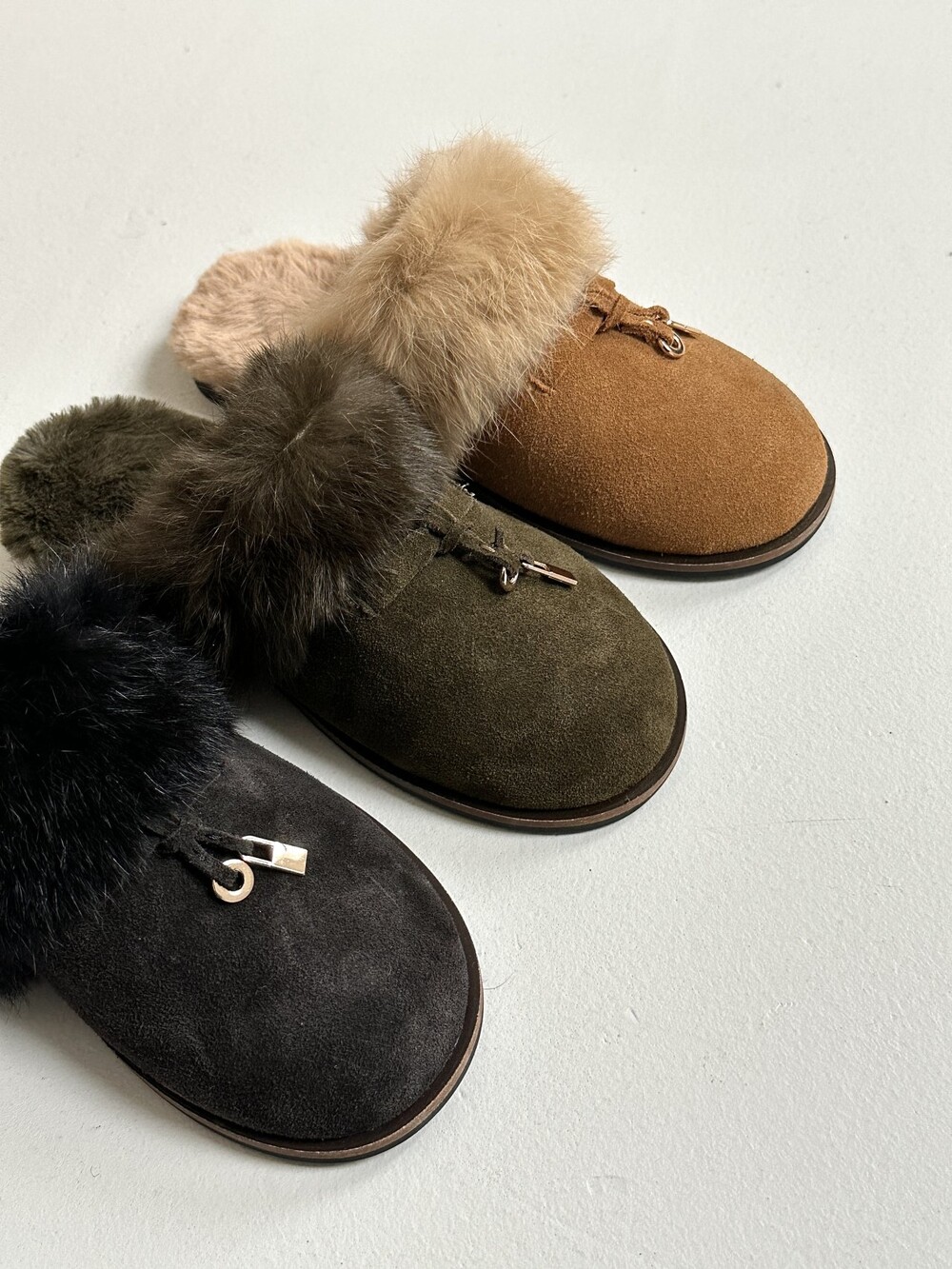 [천연 가죽 기획] 베니스 라운드 래빗 퍼 슬리퍼