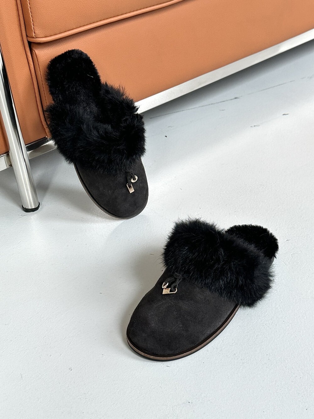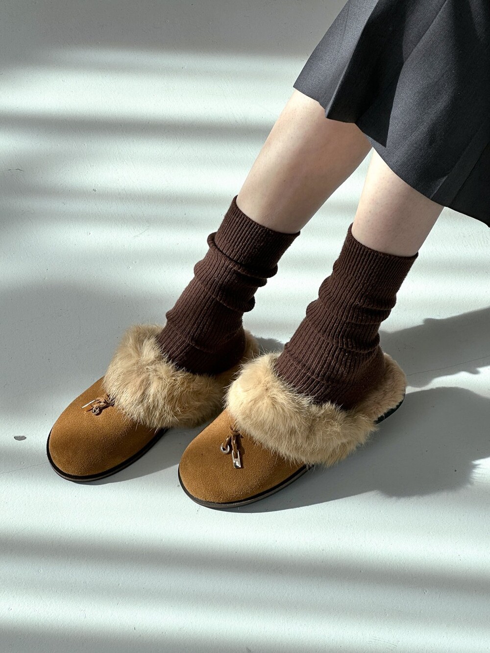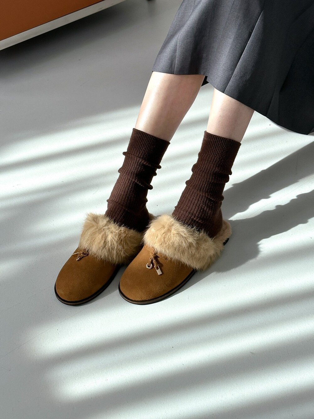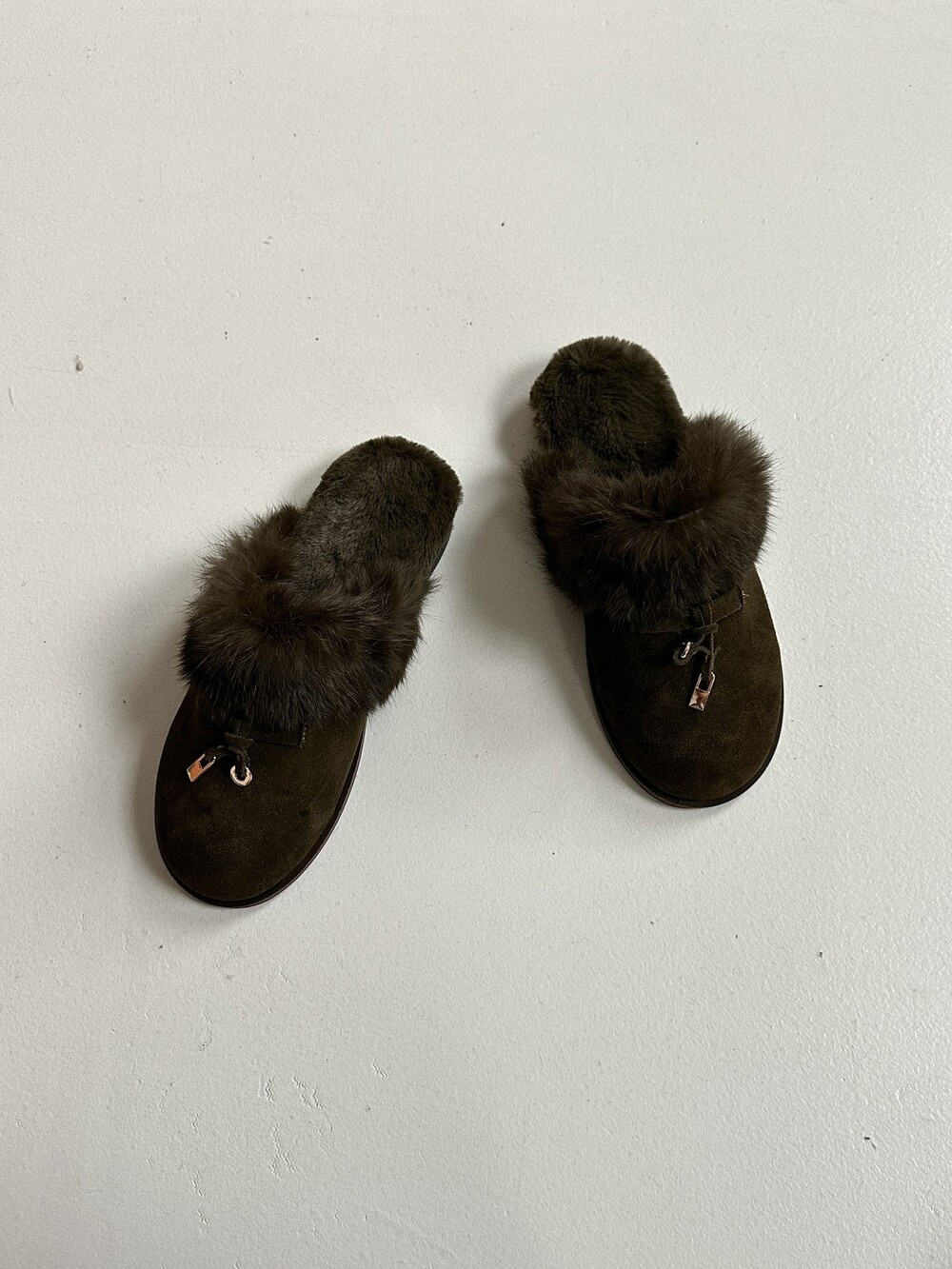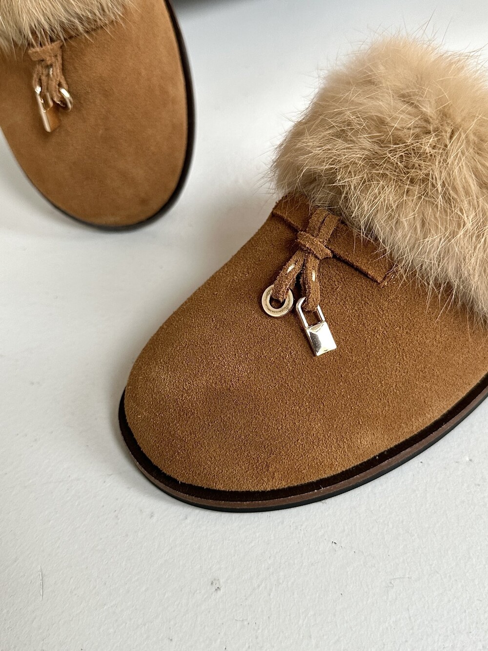 [천연 가죽 기획] 베니스 라운드 래빗 퍼 슬리퍼