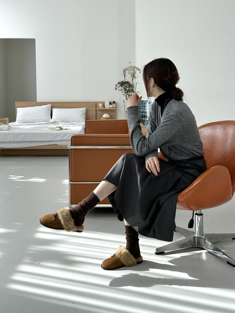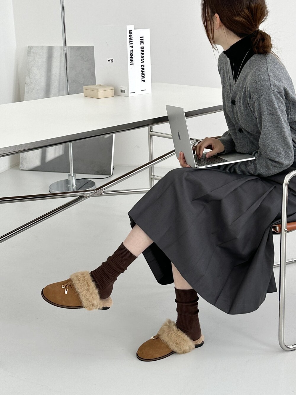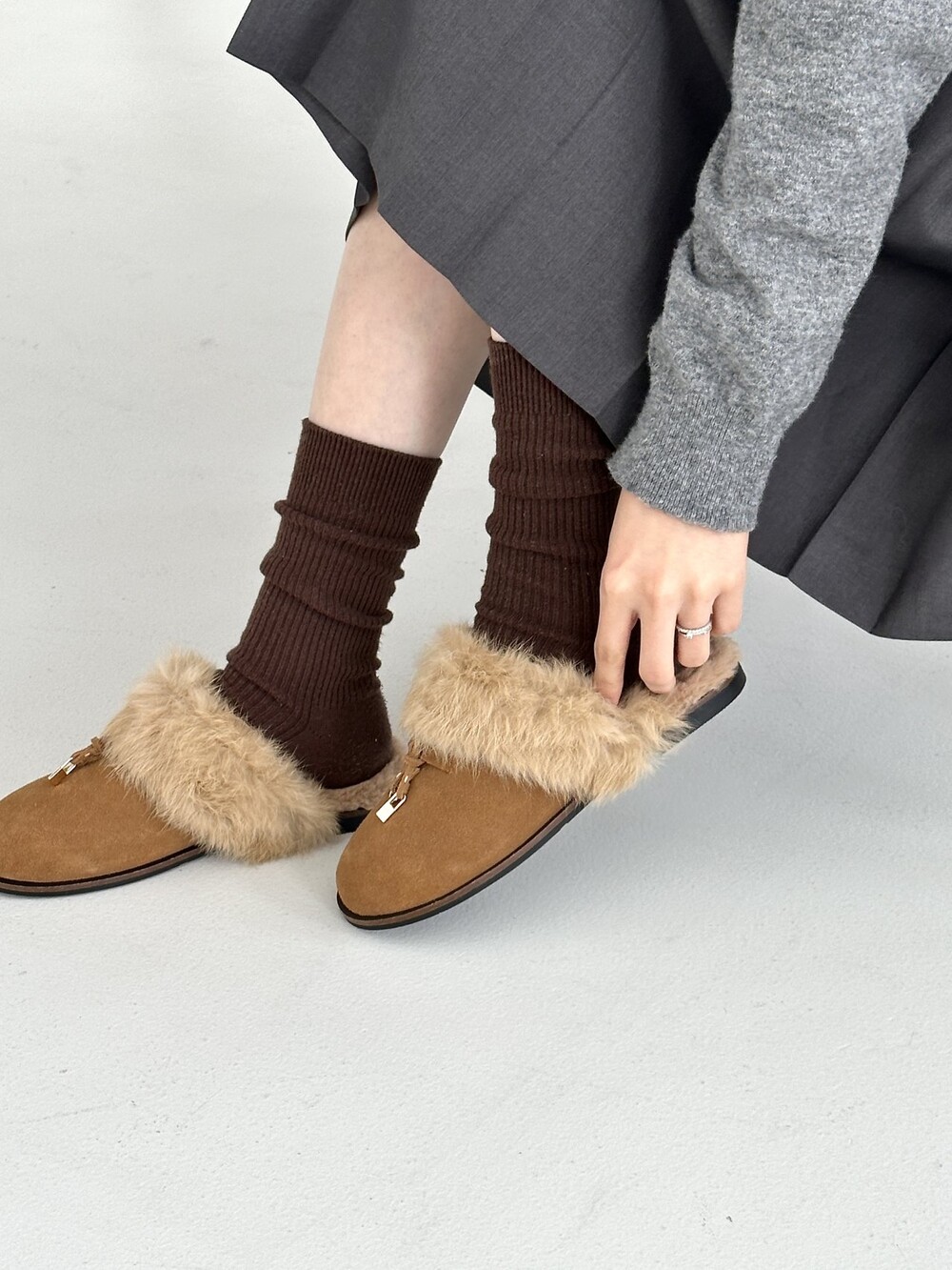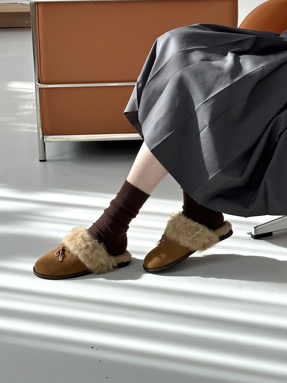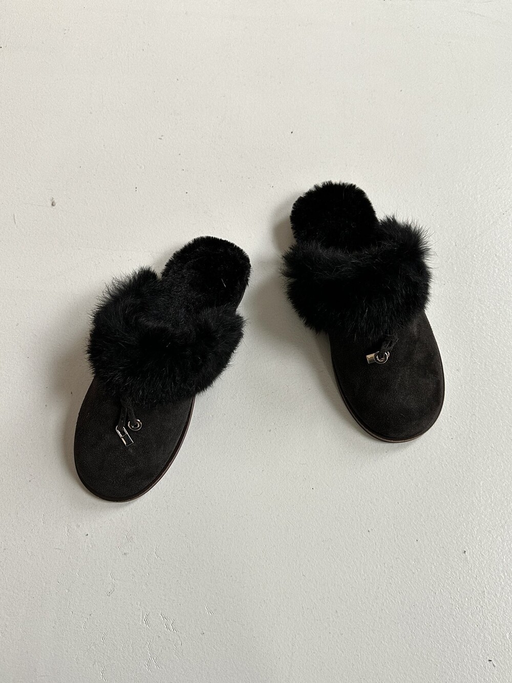 [천연 가죽 기획] 베니스 라운드 래빗 퍼 슬리퍼