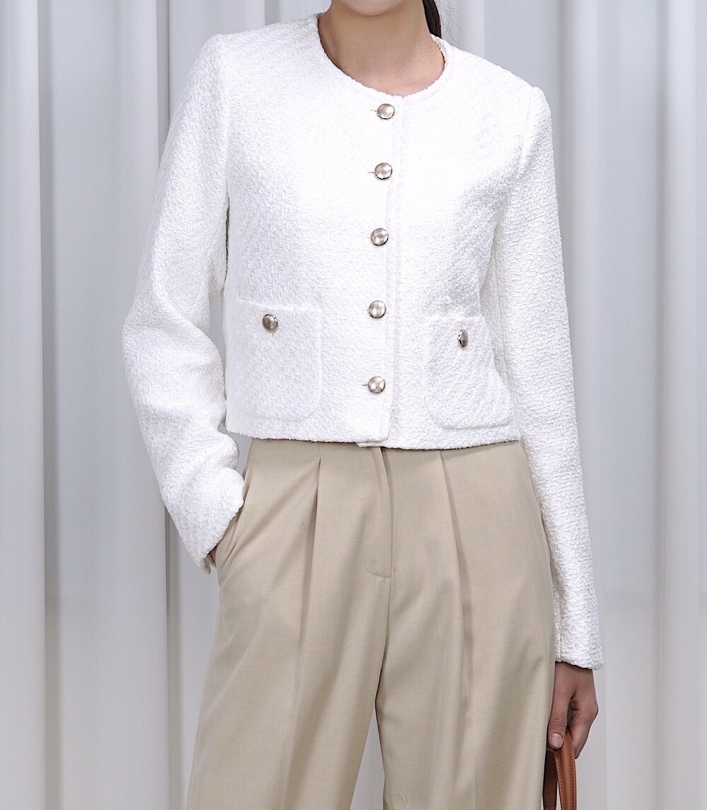 [수입 프리미엄] 밀란 모던 크롭 트위드 자켓