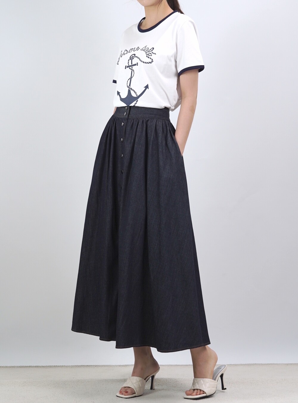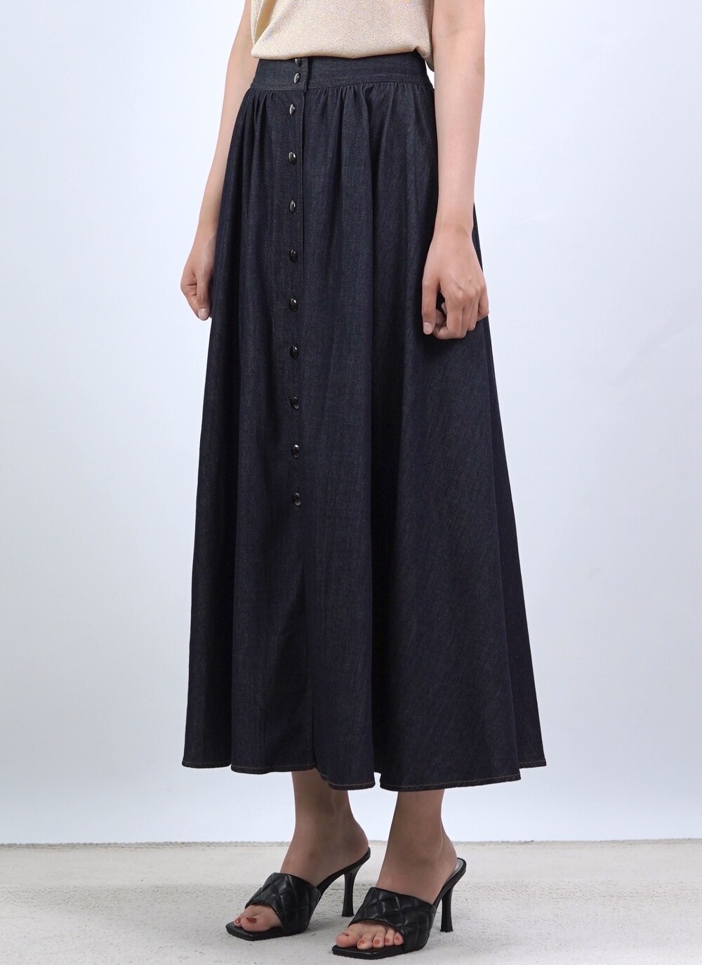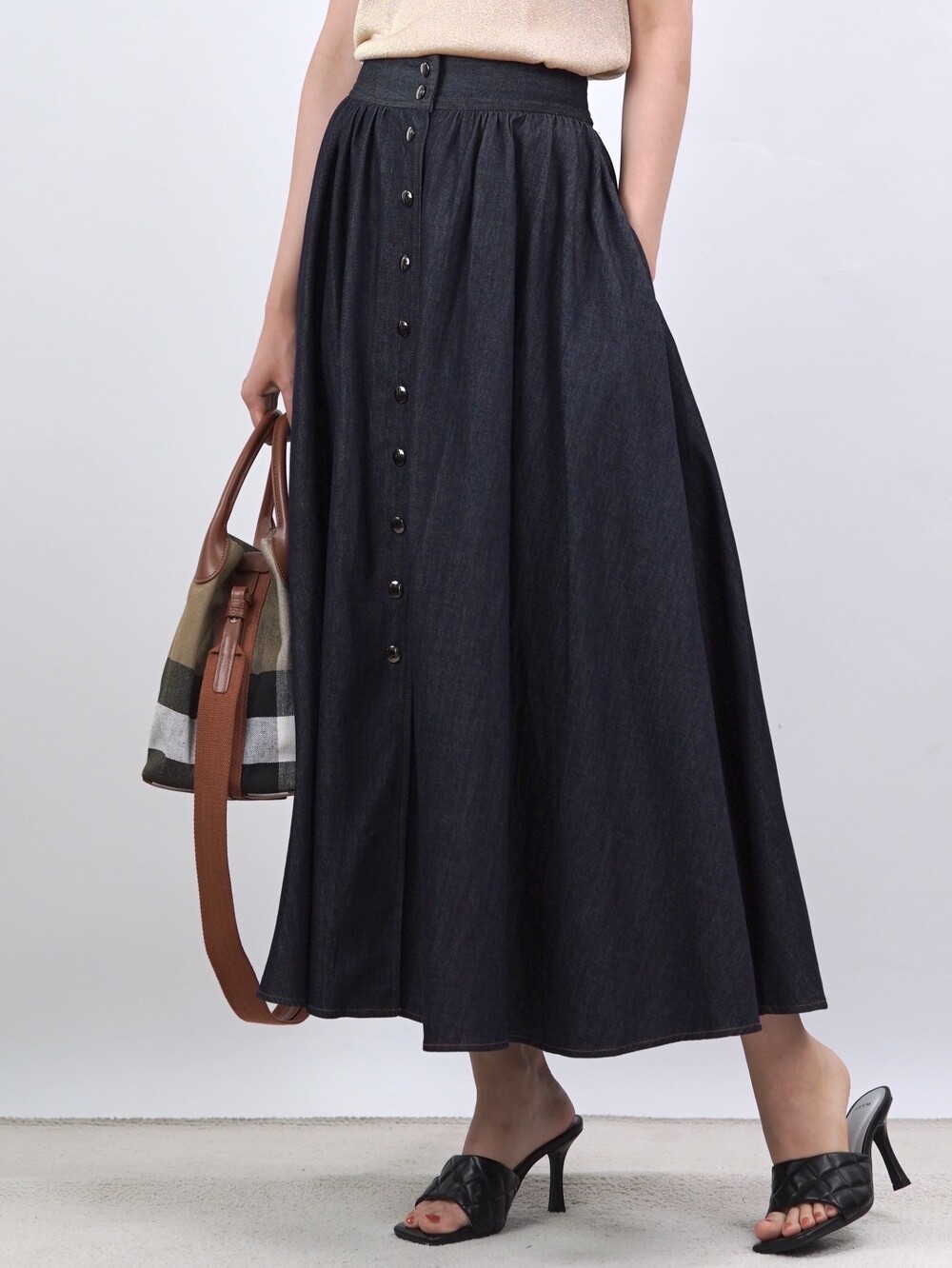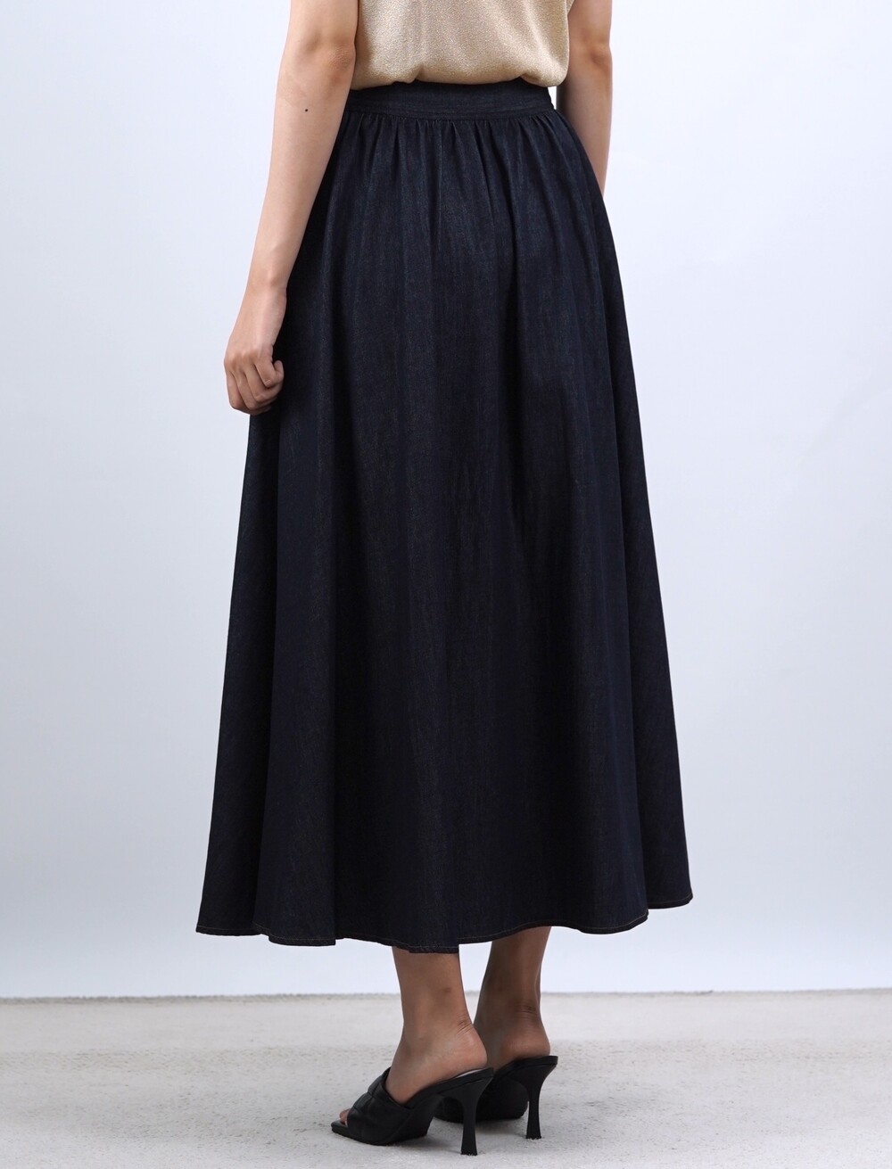 생지 데님 원단의 롱 스커트