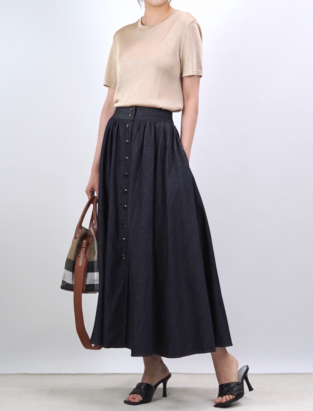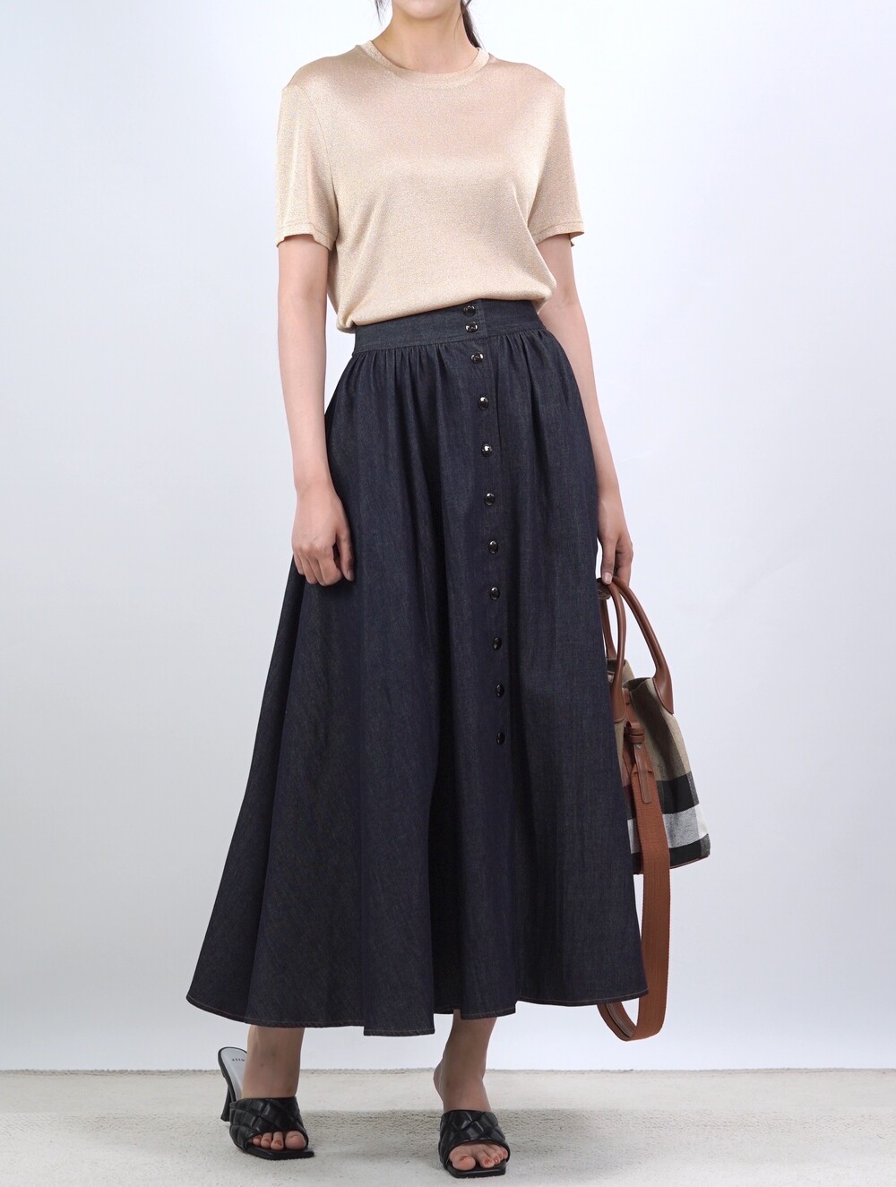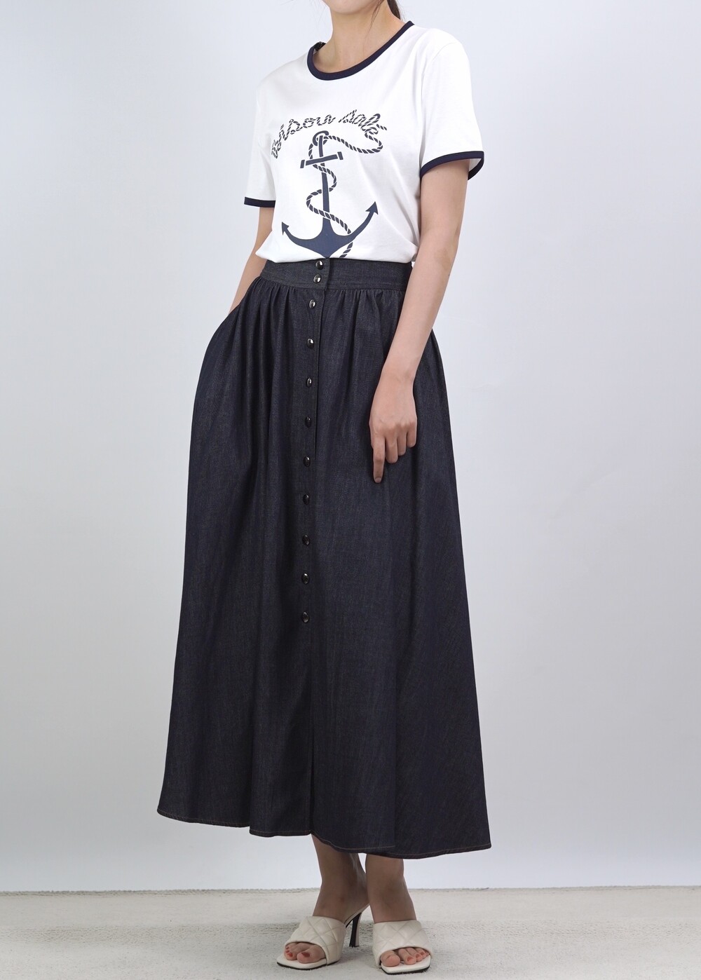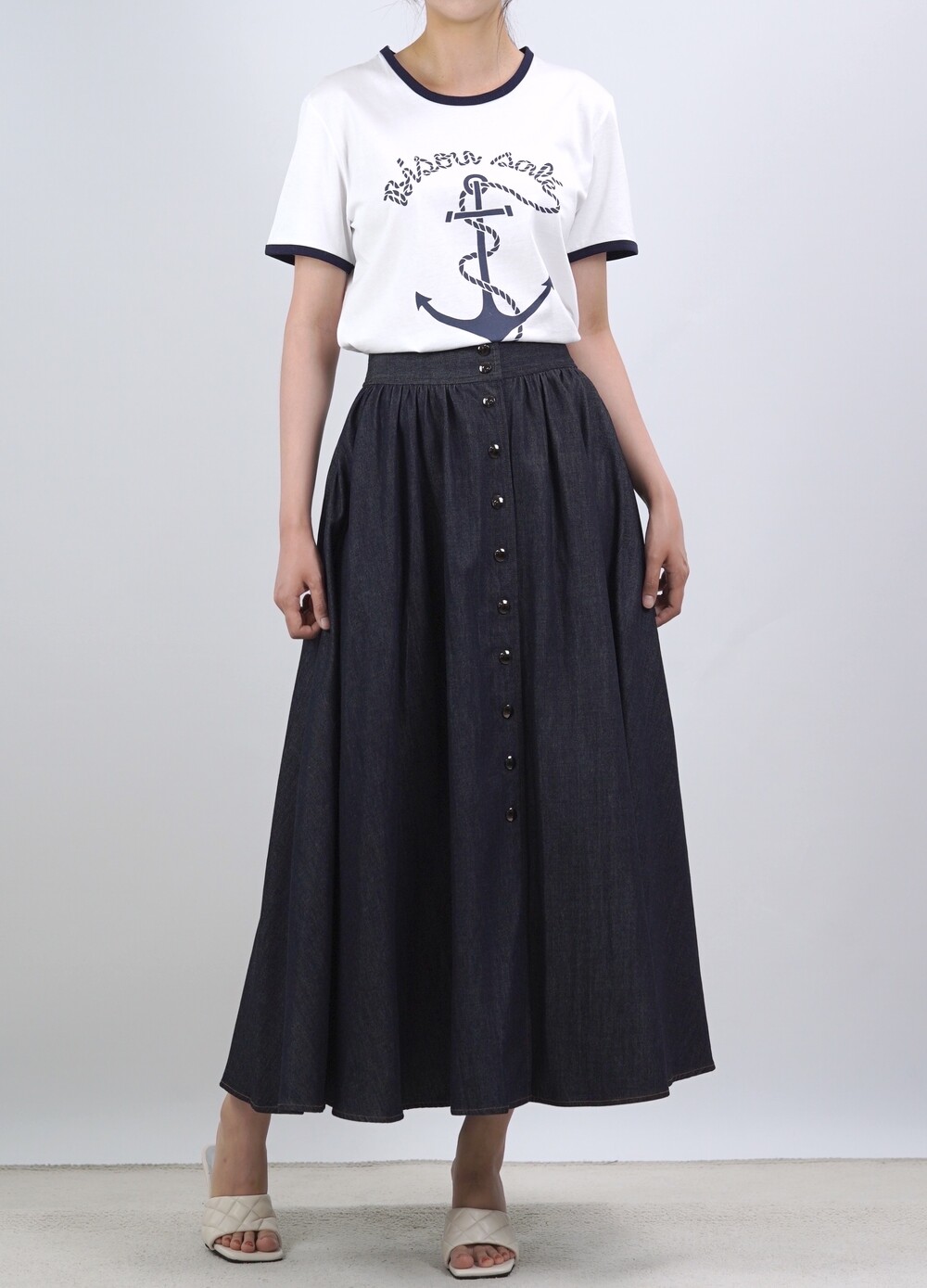 생지 데님 원단의 롱 스커트