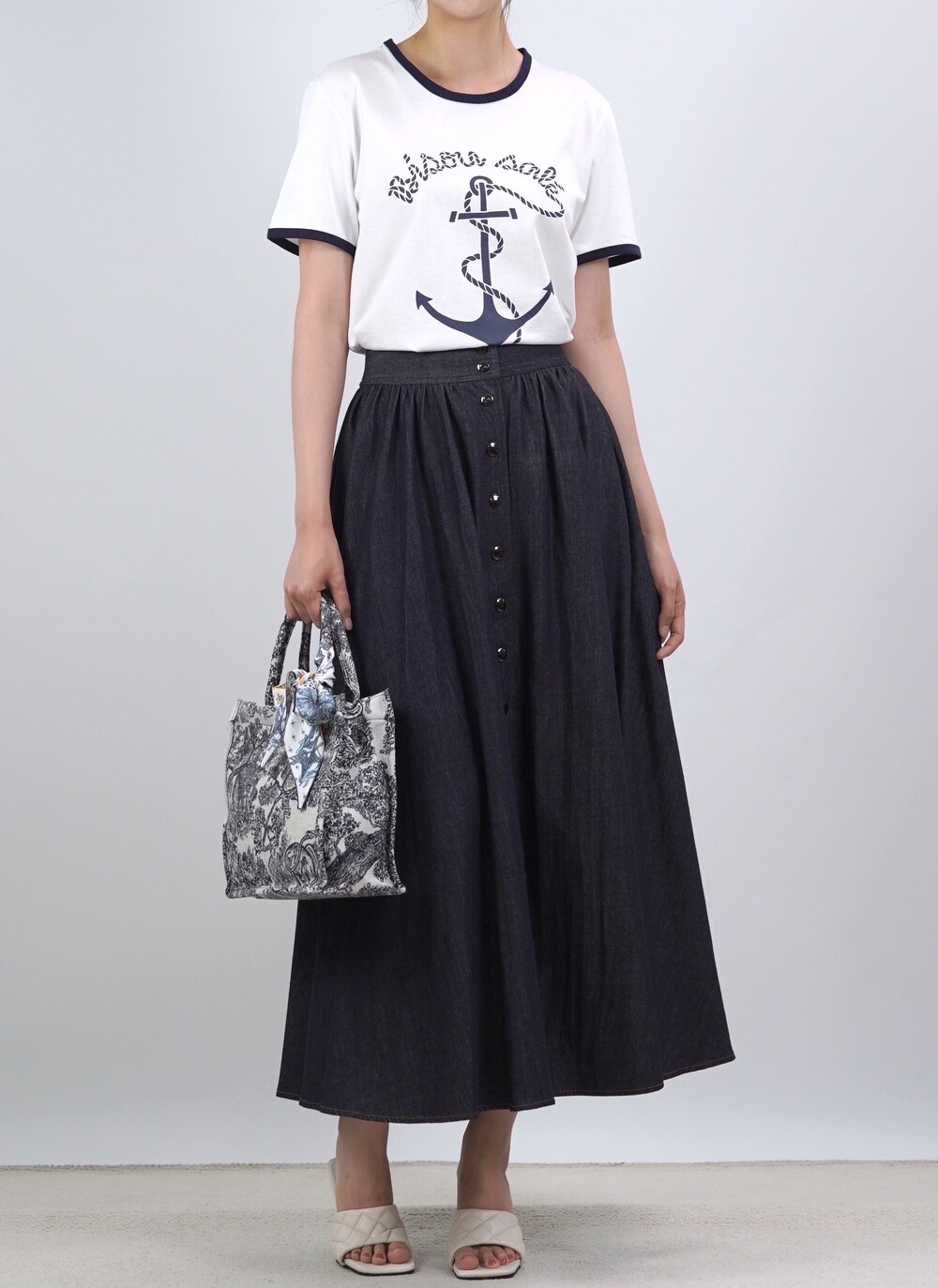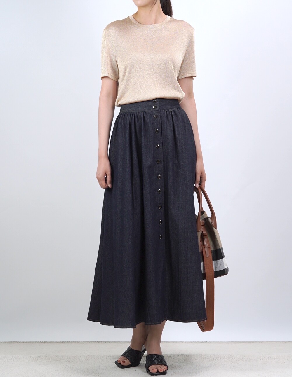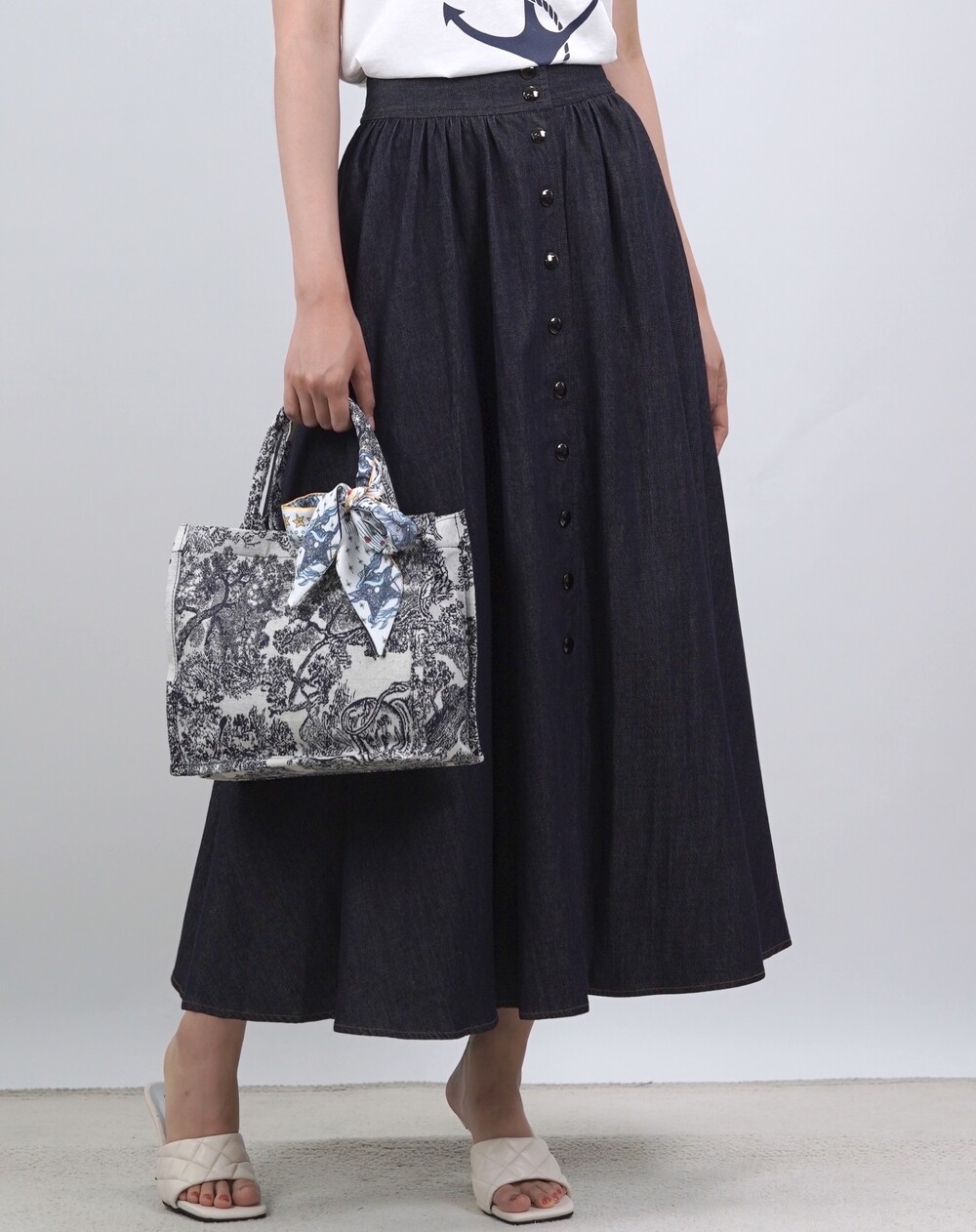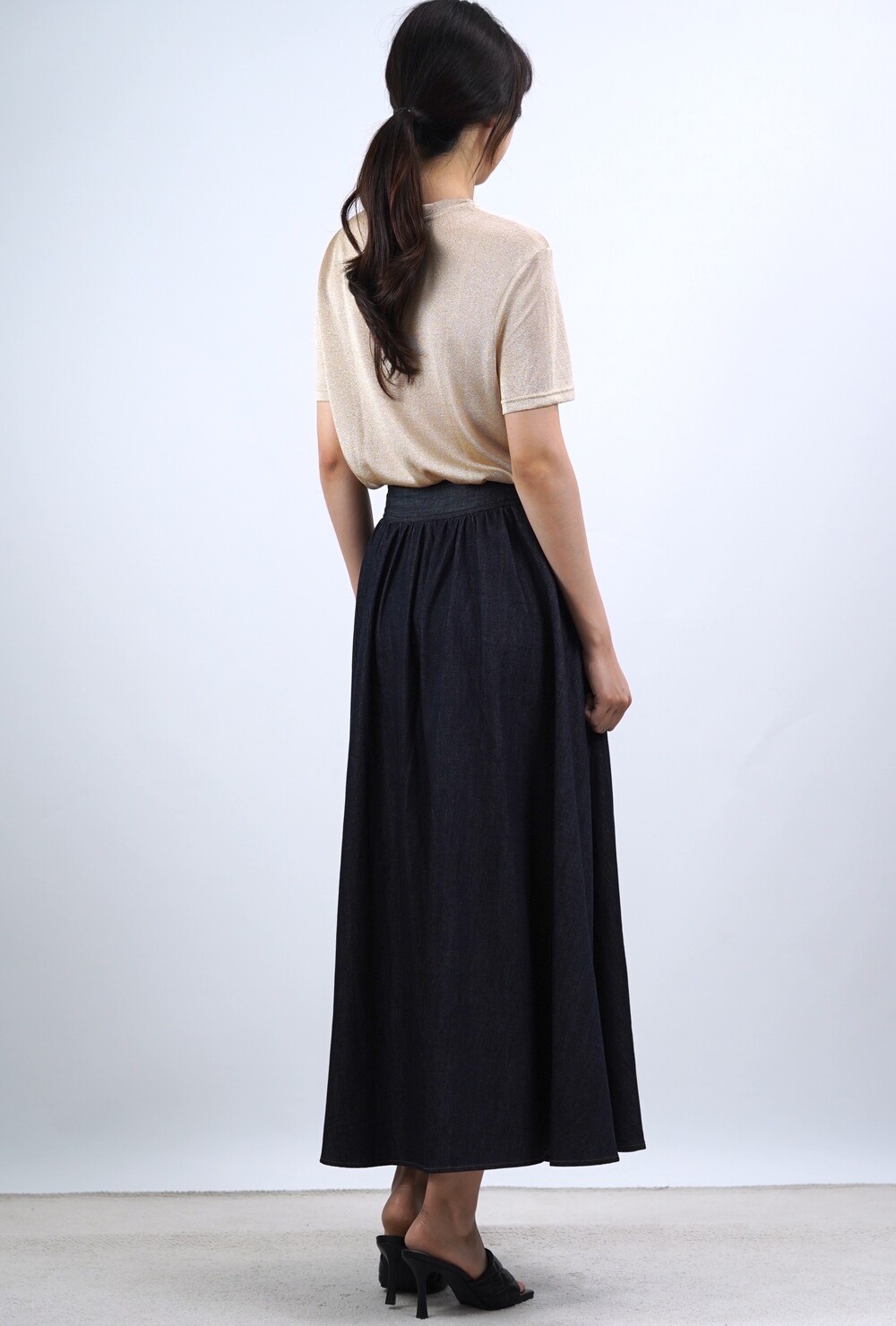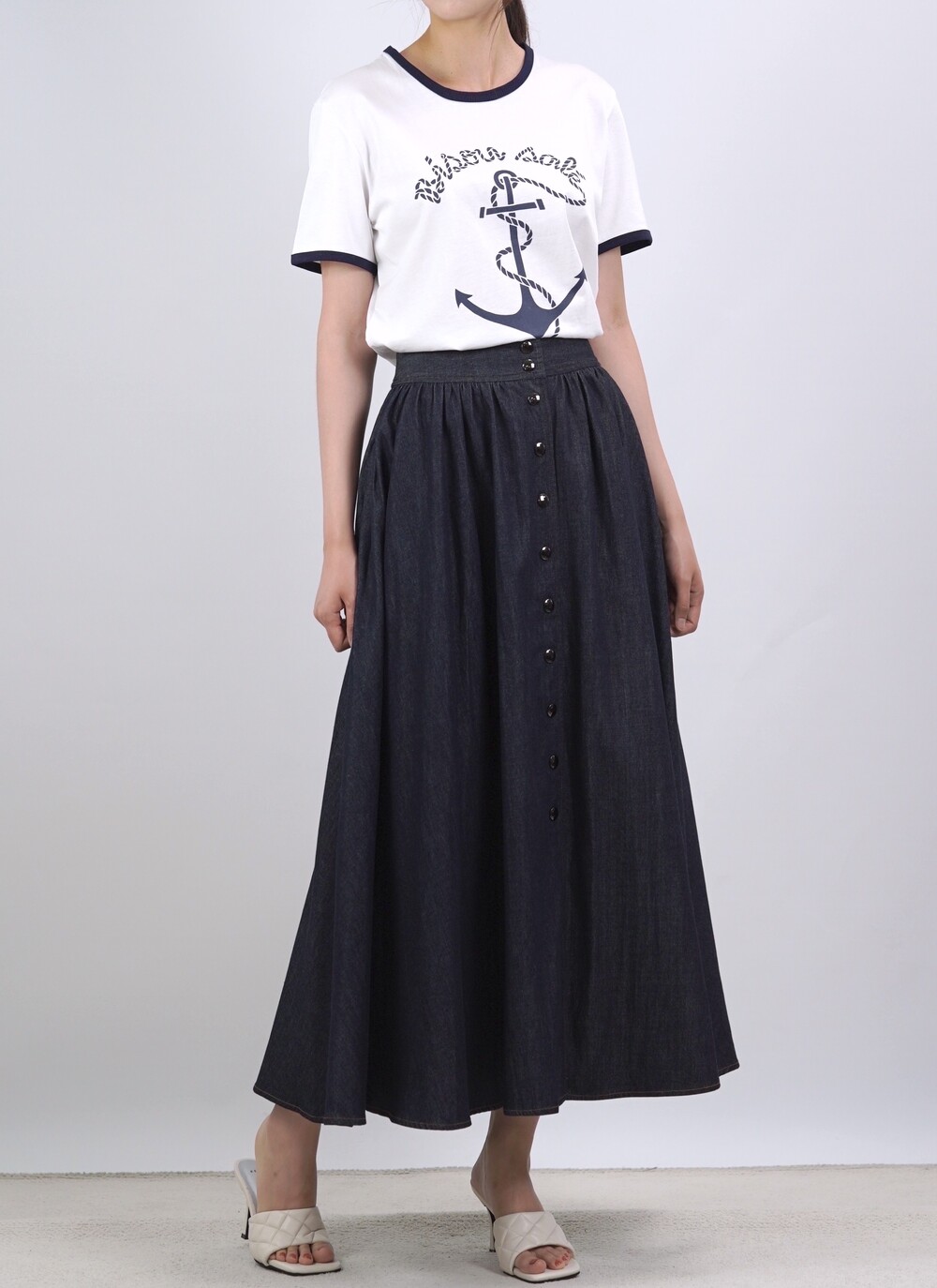 생지 데님 원단의 롱 스커트