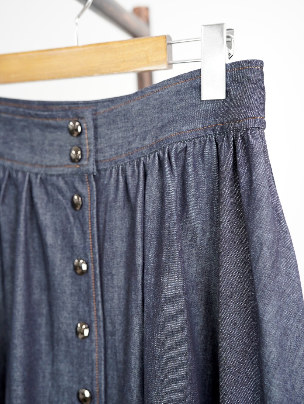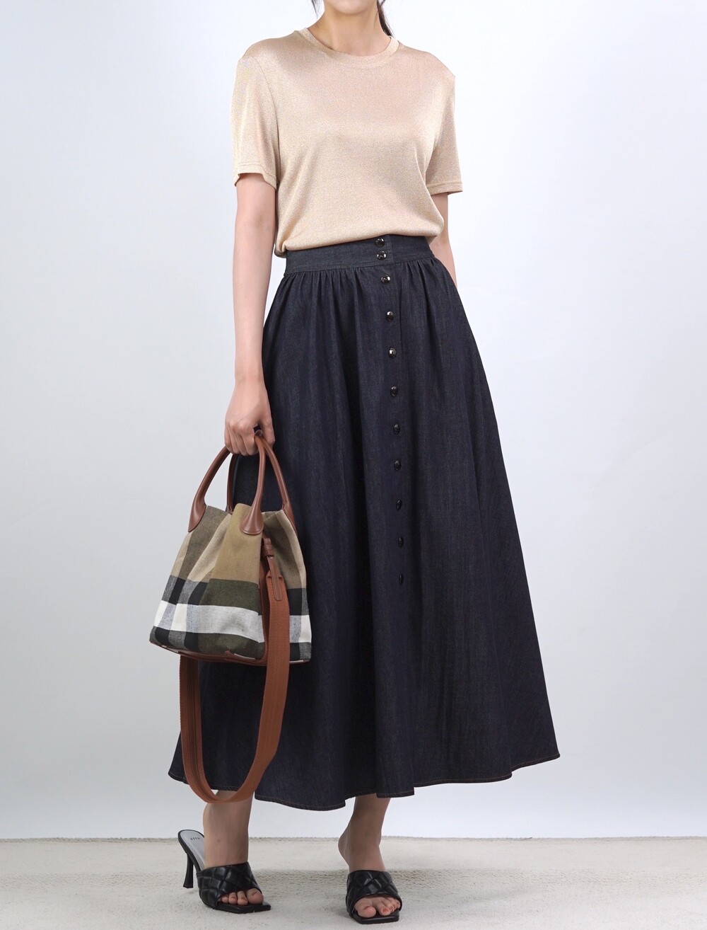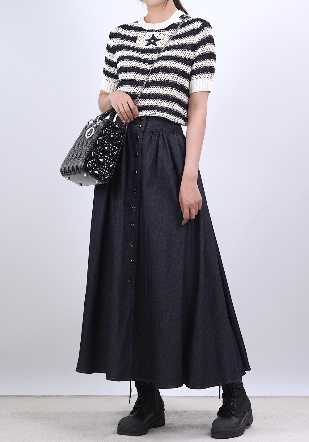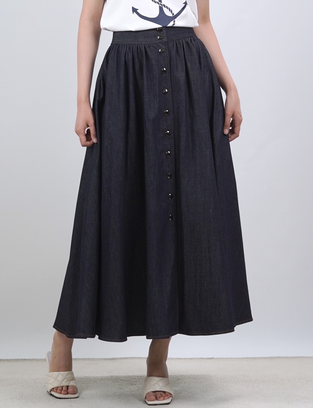생지 데님 원단의 롱 스커트