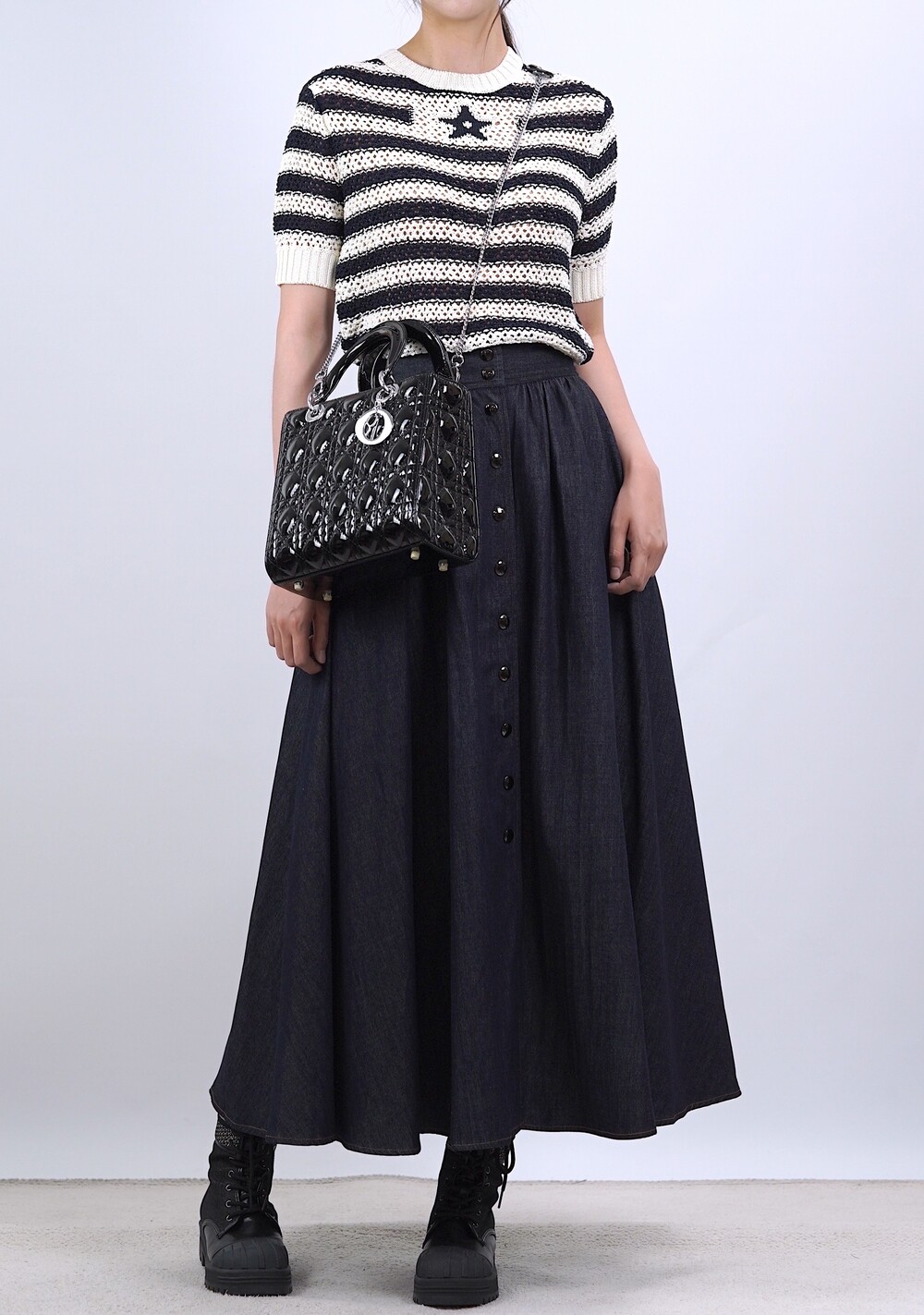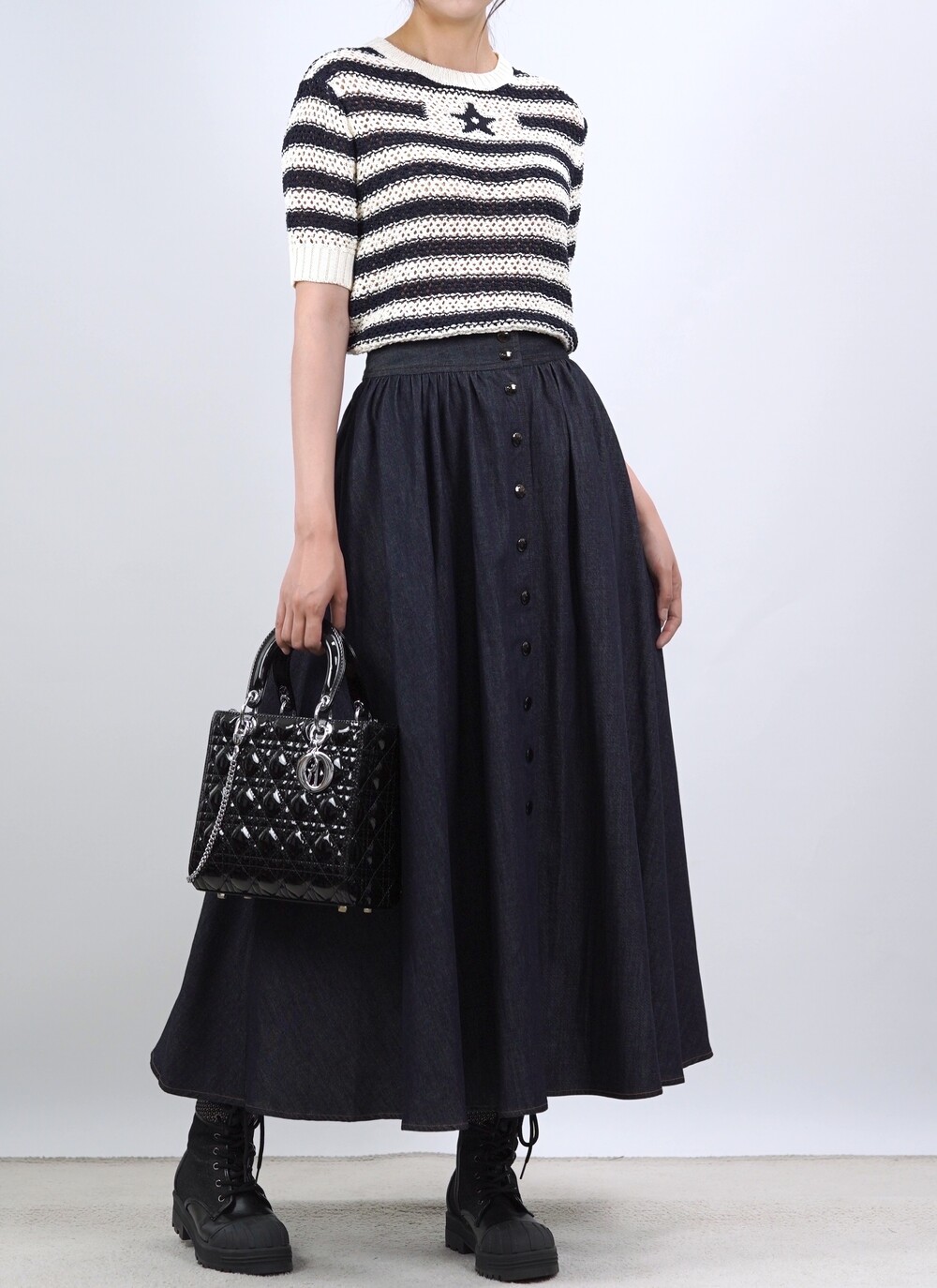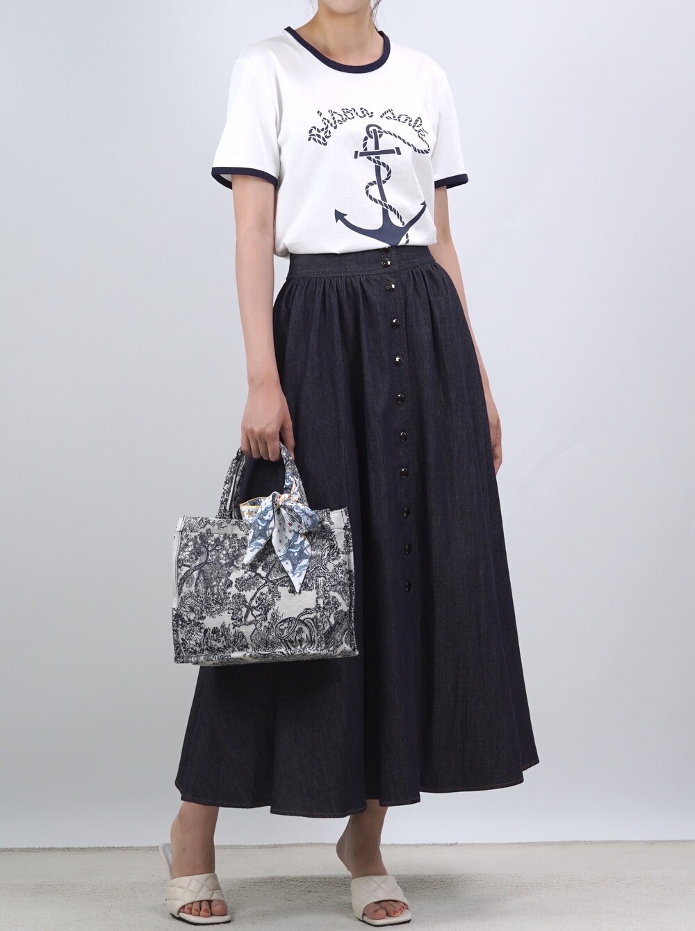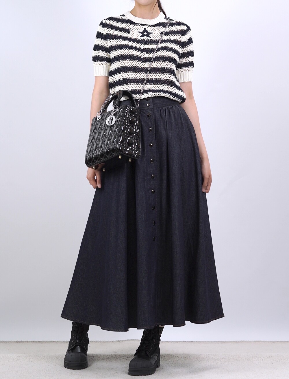 생지 데님 원단의 롱 스커트