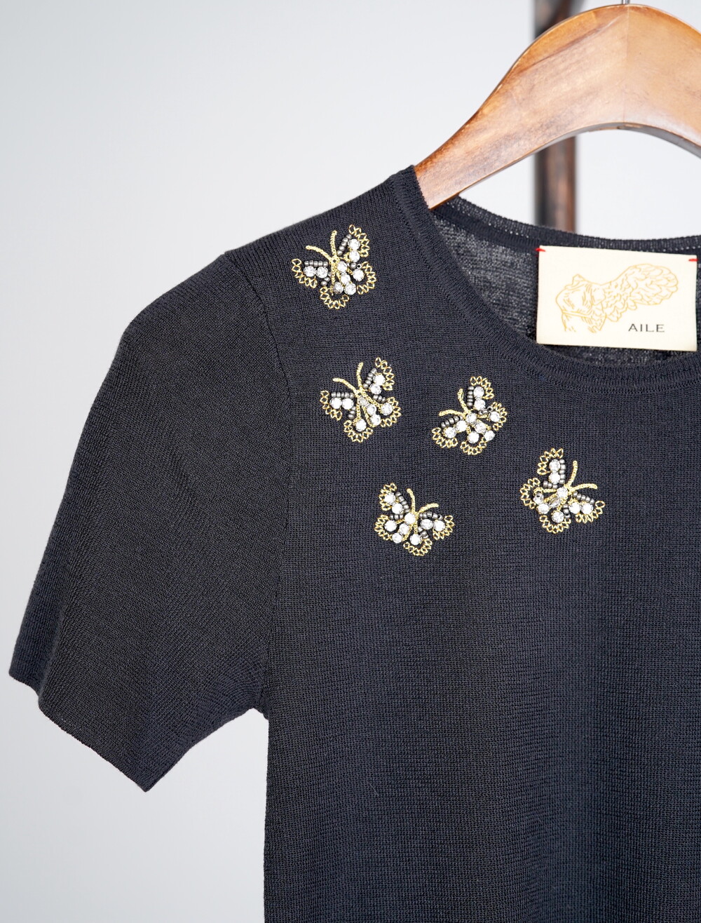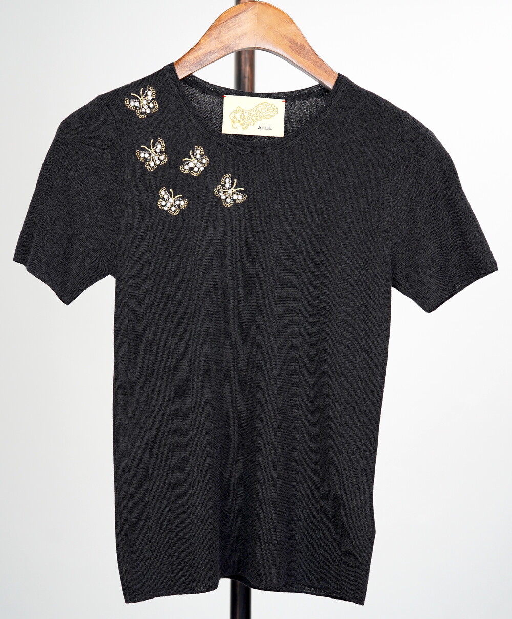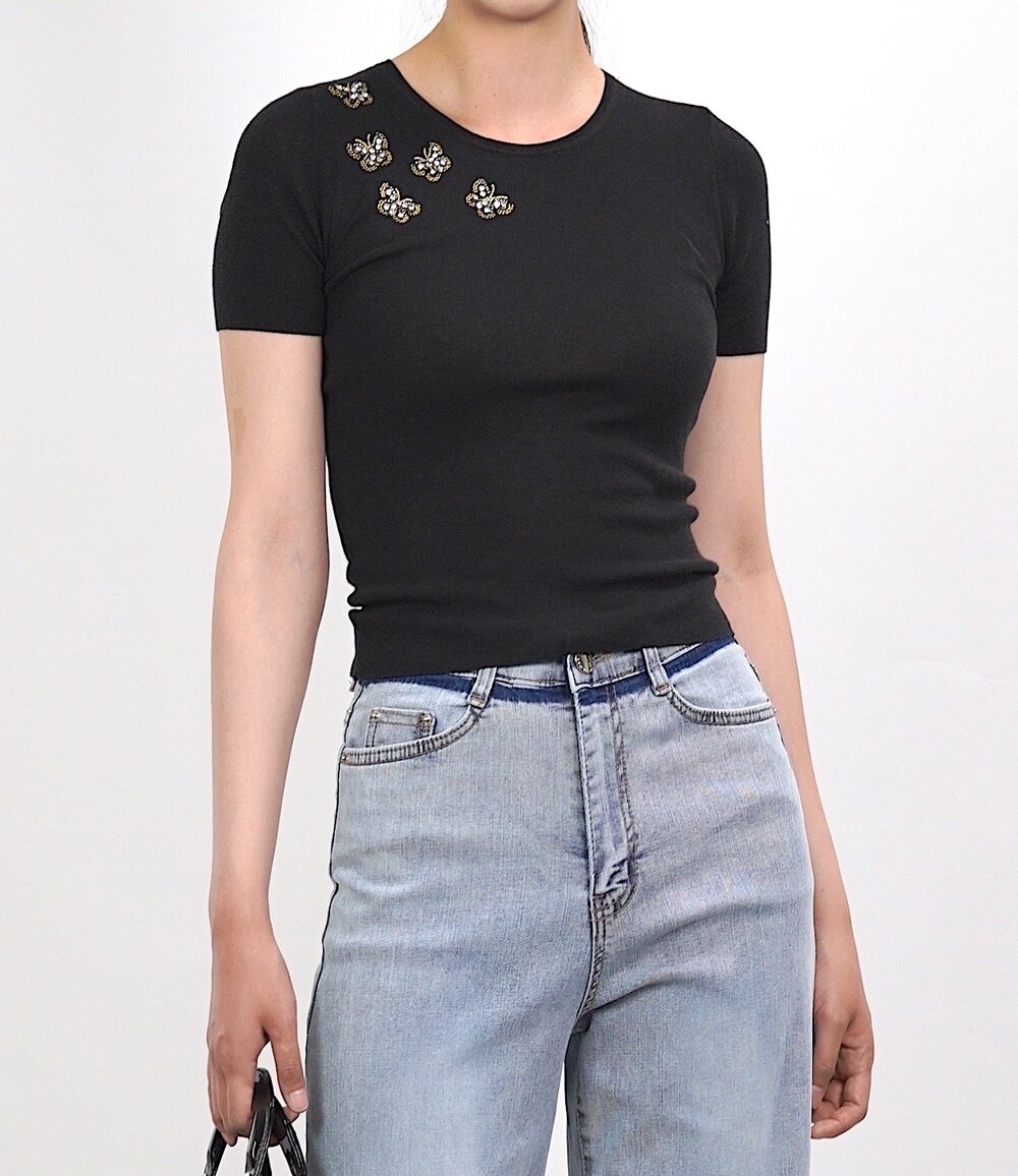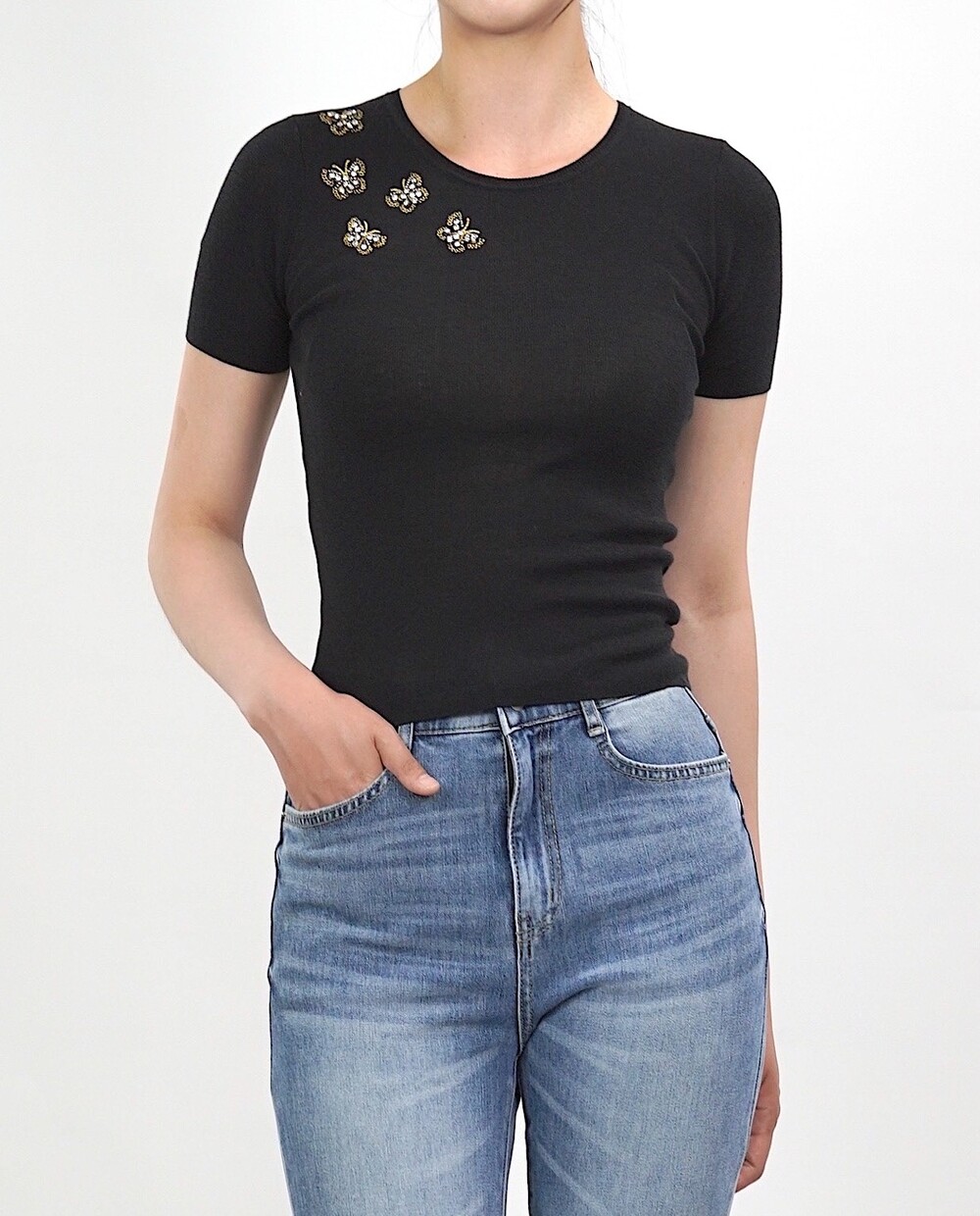 [수입 프리미엄] 파리 쥬얼리 버터플라이 슬림 니트 티셔츠