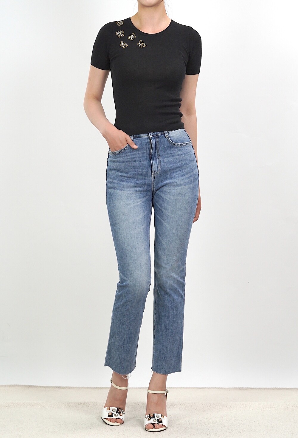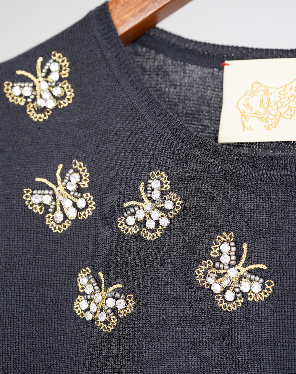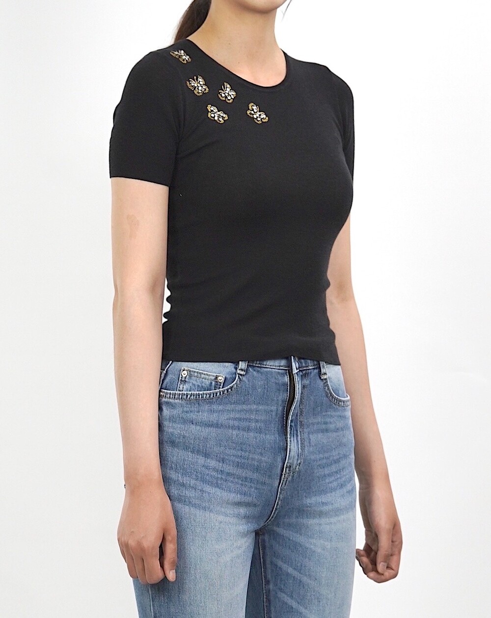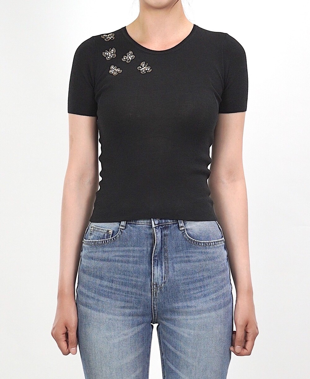 [수입 프리미엄] 파리 쥬얼리 버터플라이 슬림 니트 티셔츠