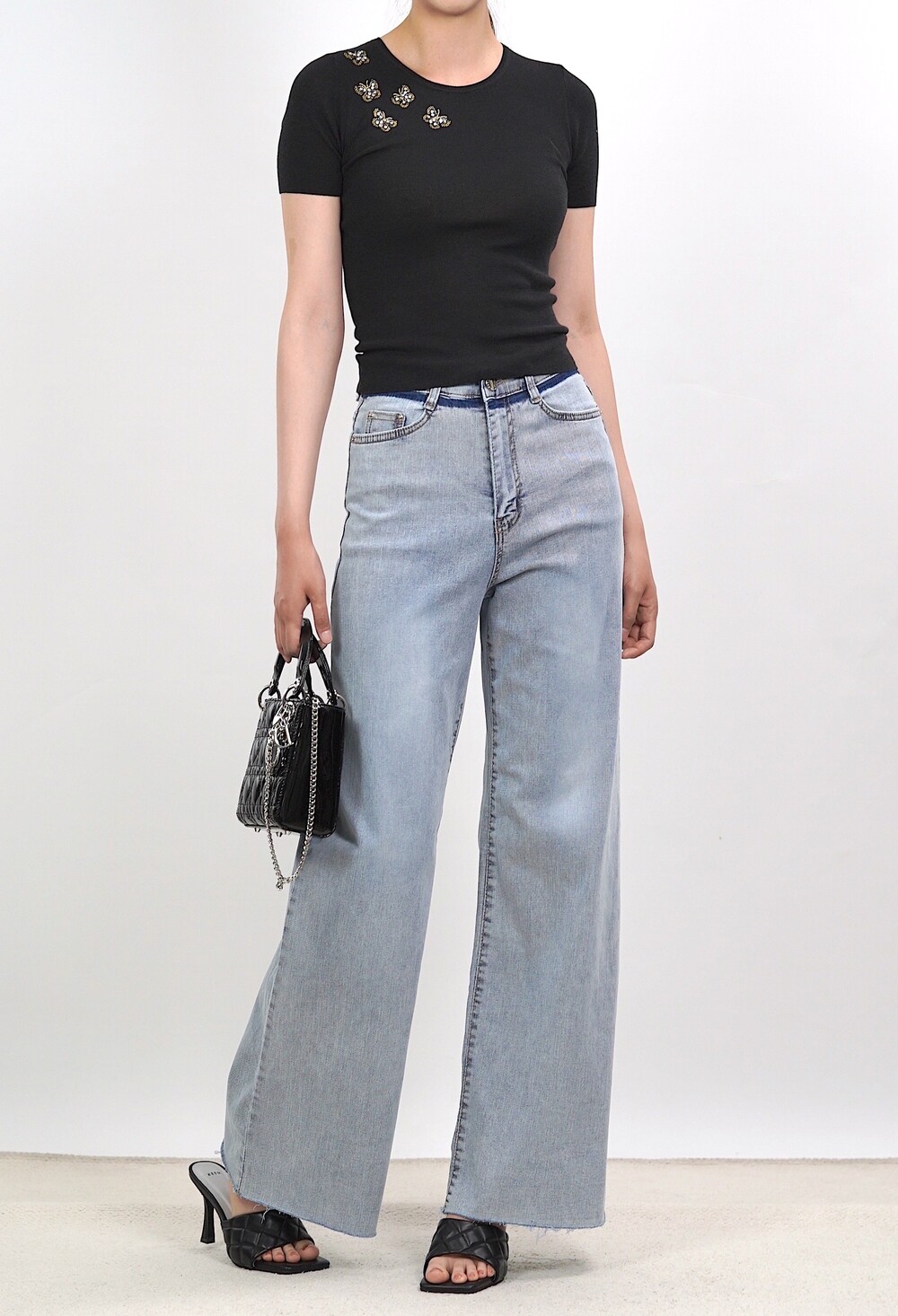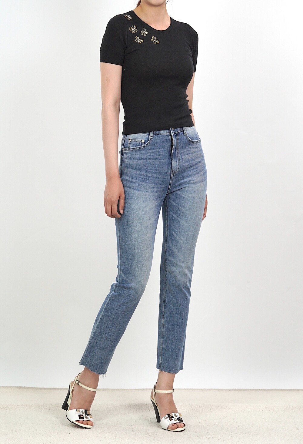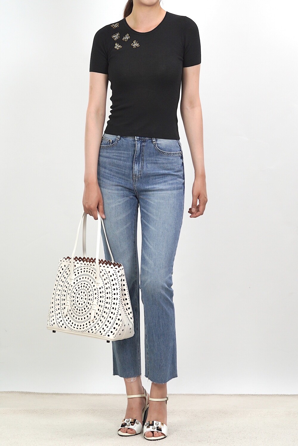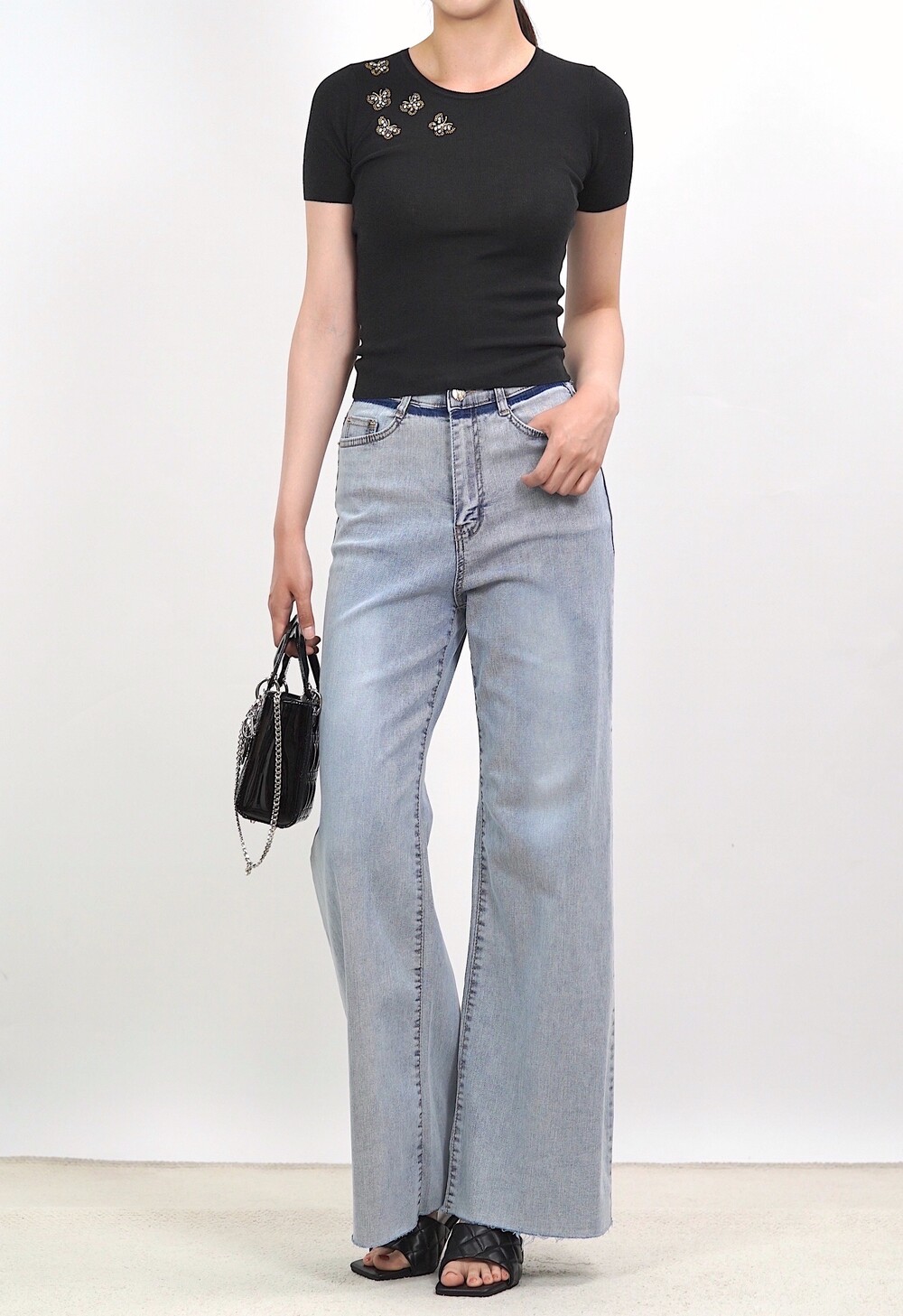 [수입 프리미엄] 파리 쥬얼리 버터플라이 슬림 니트 티셔츠