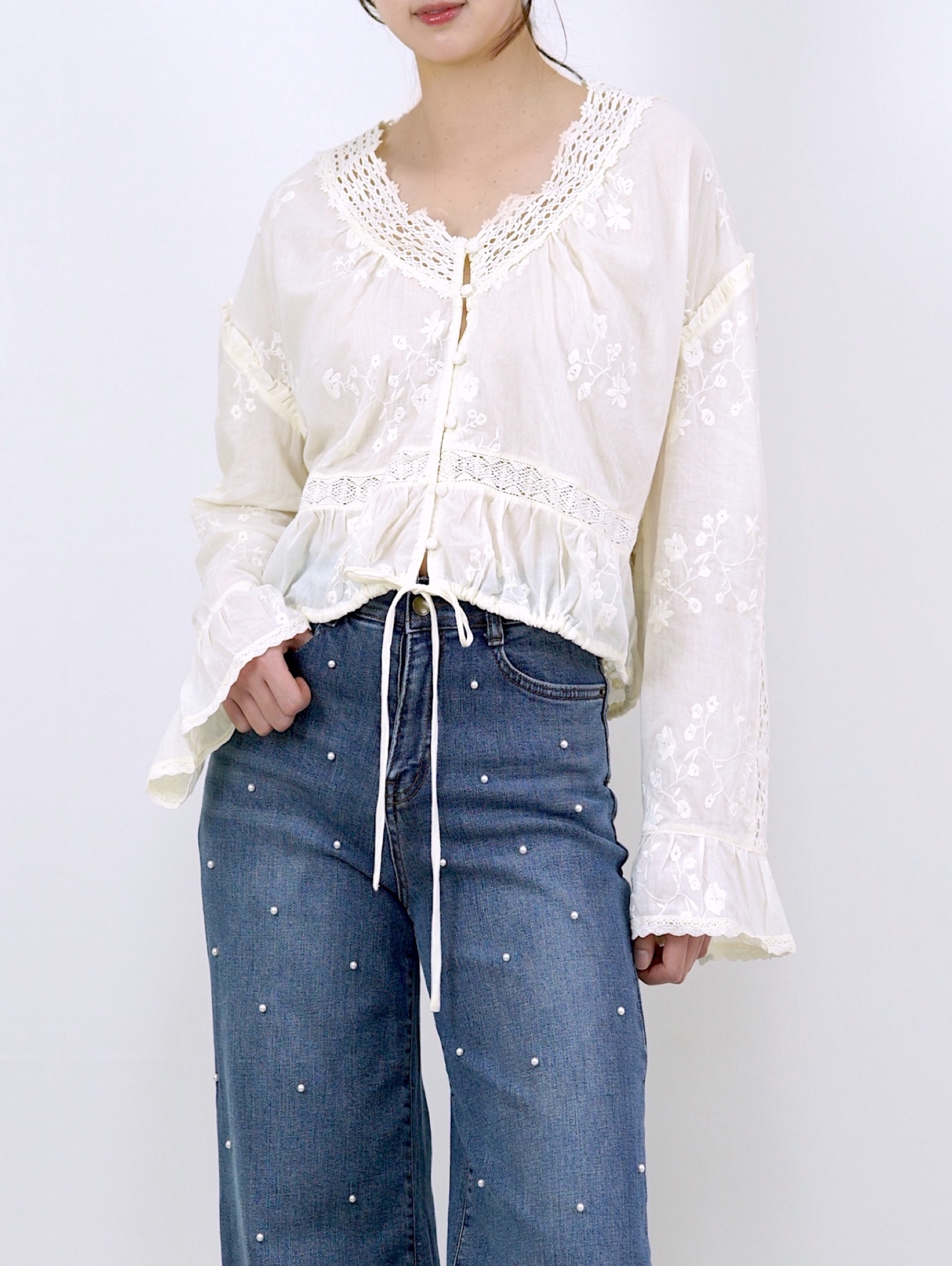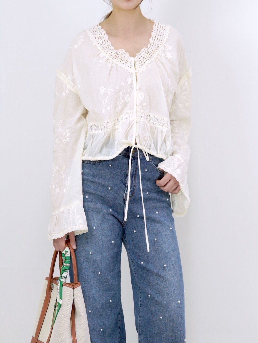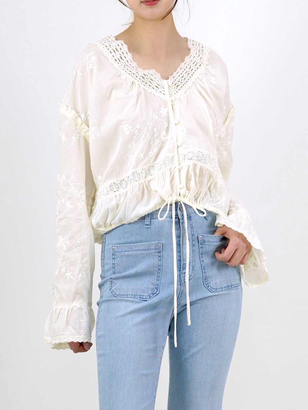 [수입 프리미엄] 마르세유 로맨틱 자수 레이스 블라우스