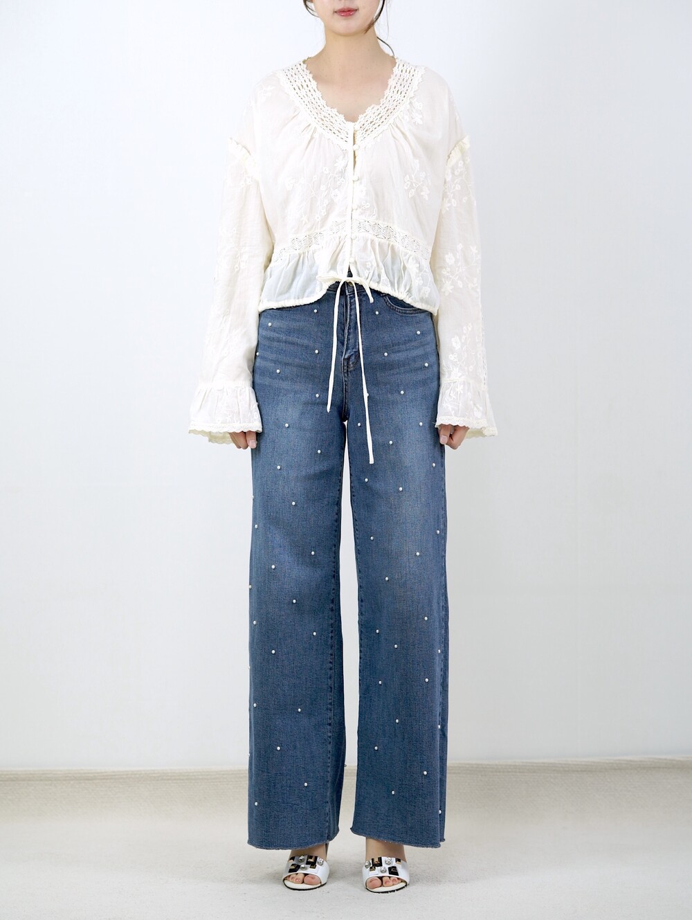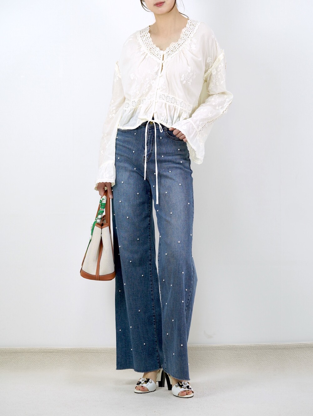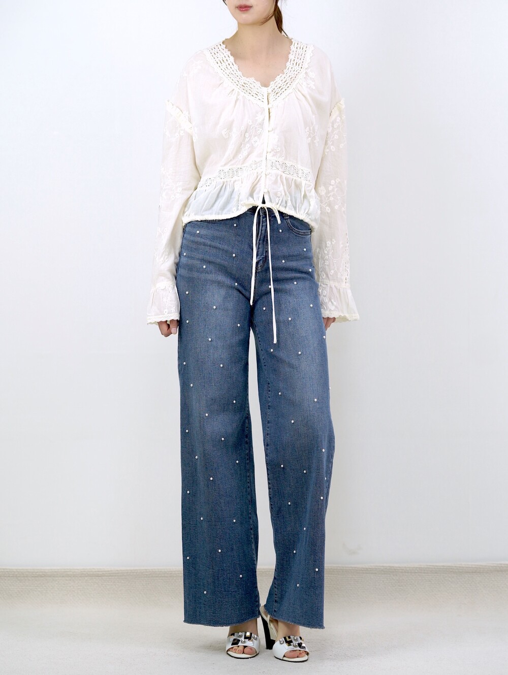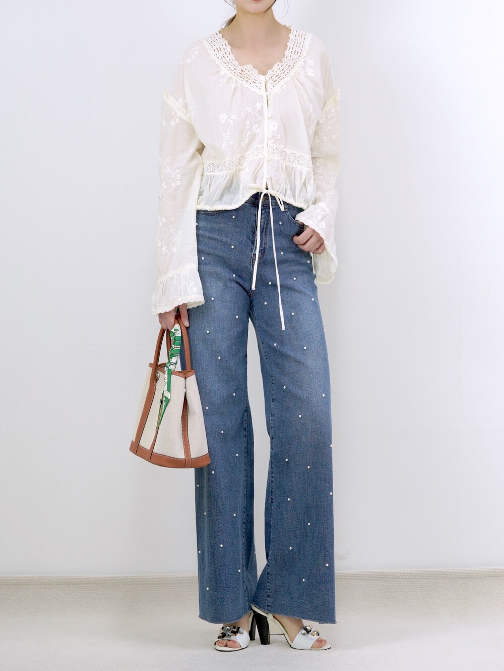 [수입 프리미엄] 마르세유 로맨틱 자수 레이스 블라우스