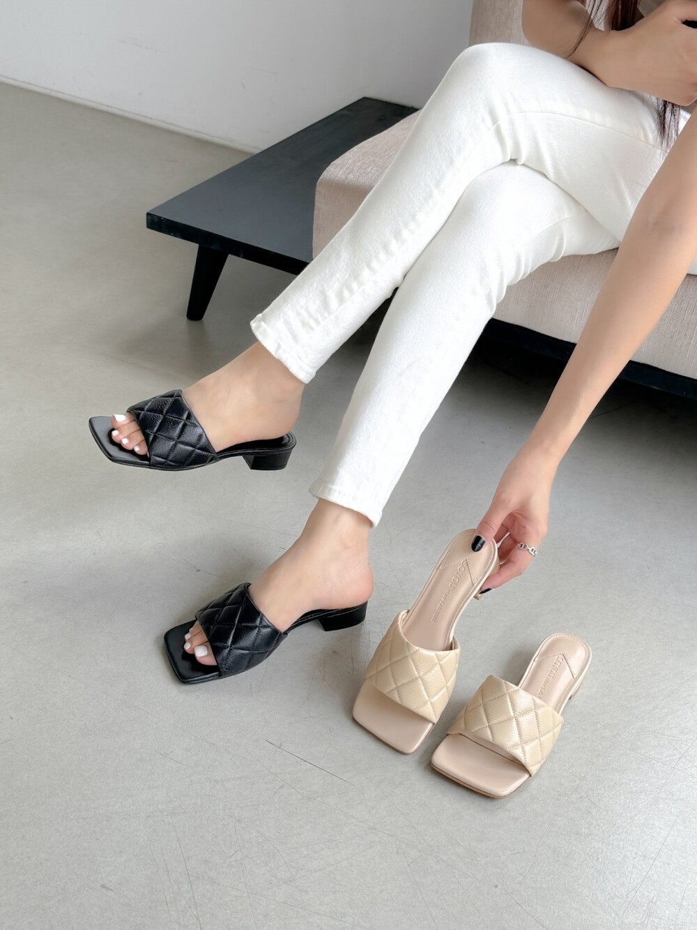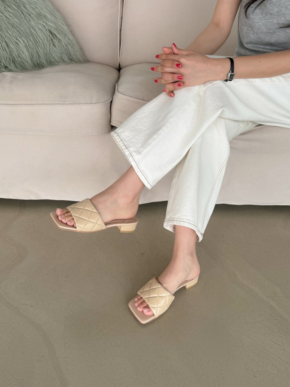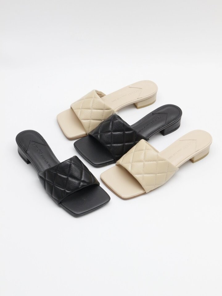 [기획 천연 가죽] 프렌치 퀄팅 컴포트 슬리퍼
