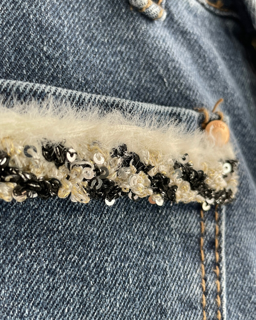 앞포켓을 트위드 자재로