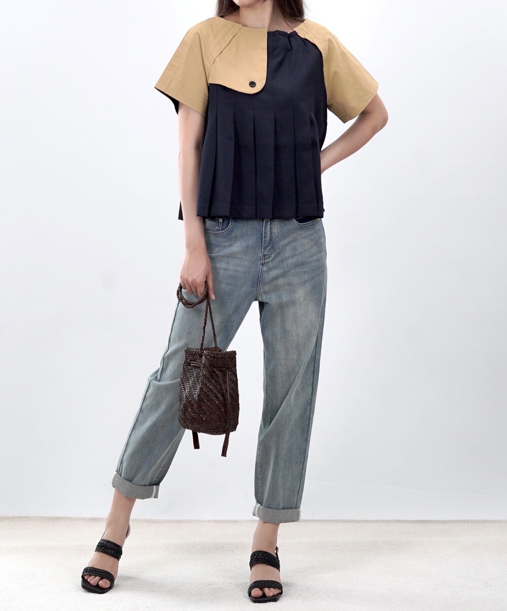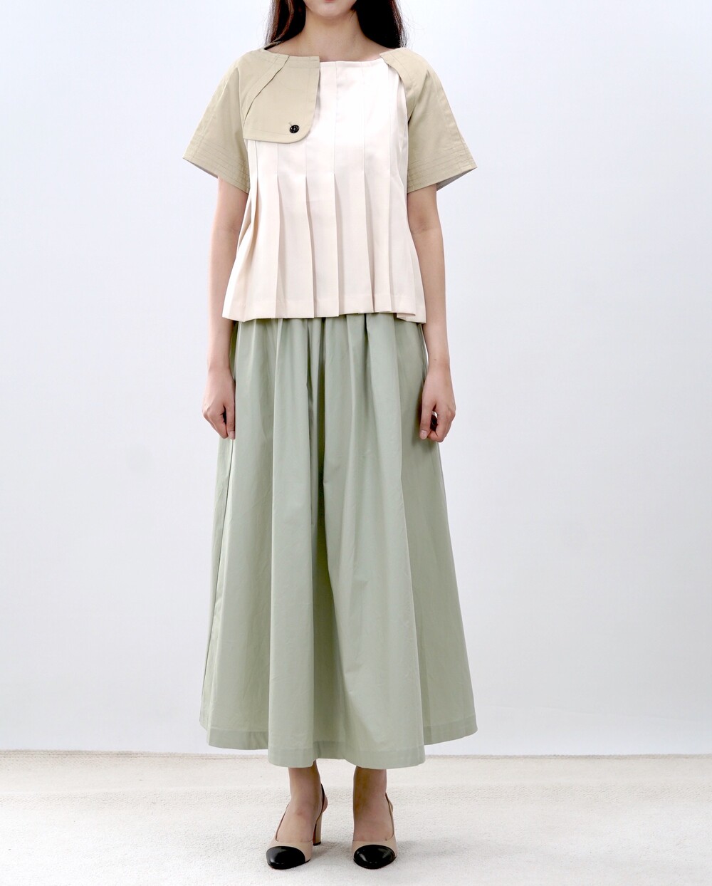 런던 플리츠 트렌치 블라우스
