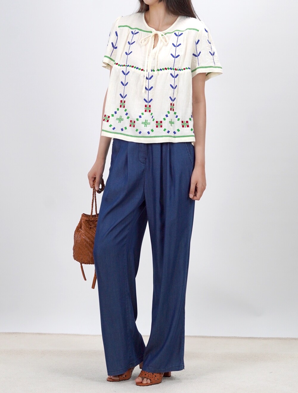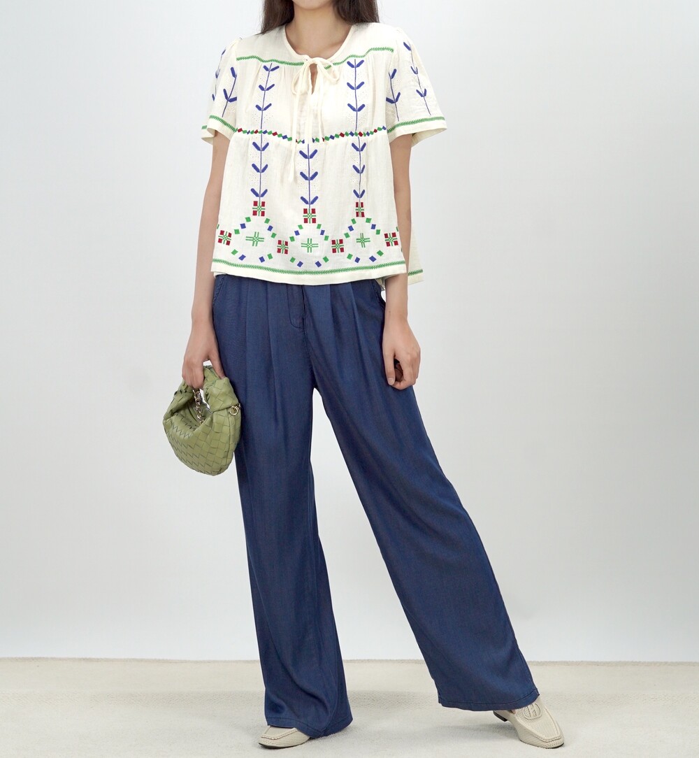 노르딕 썸머 자수 코지 블라우스