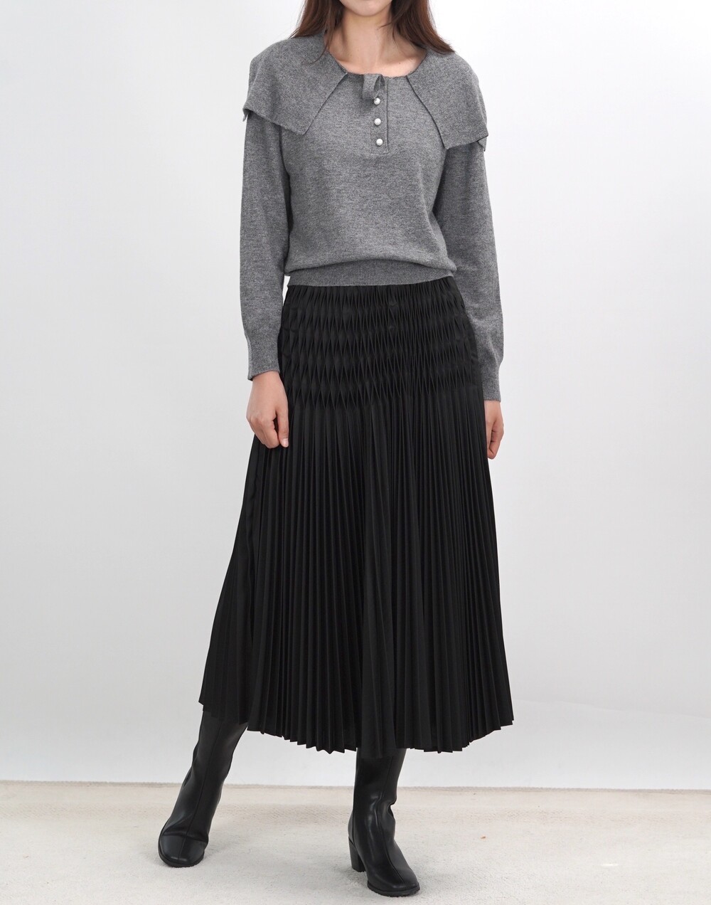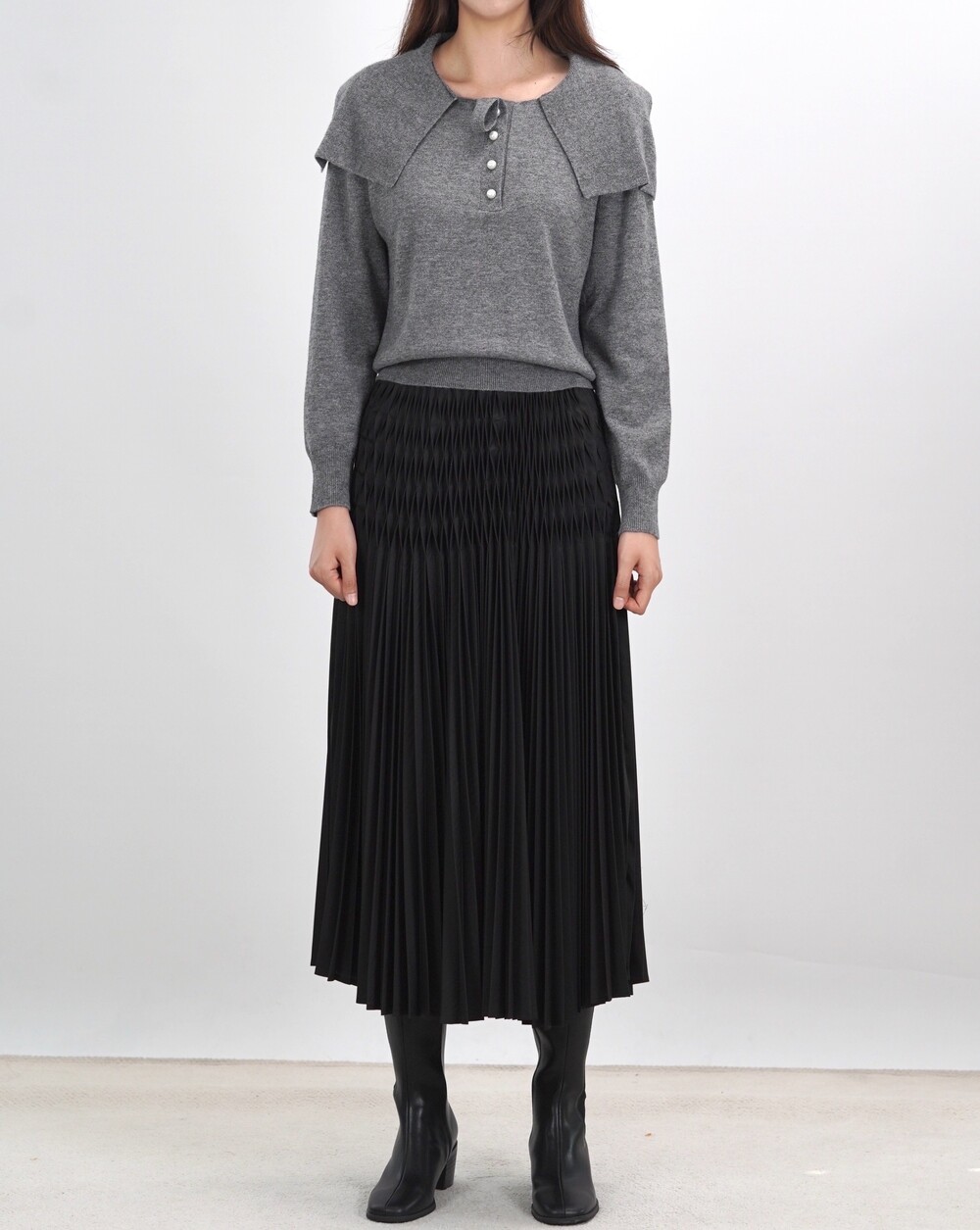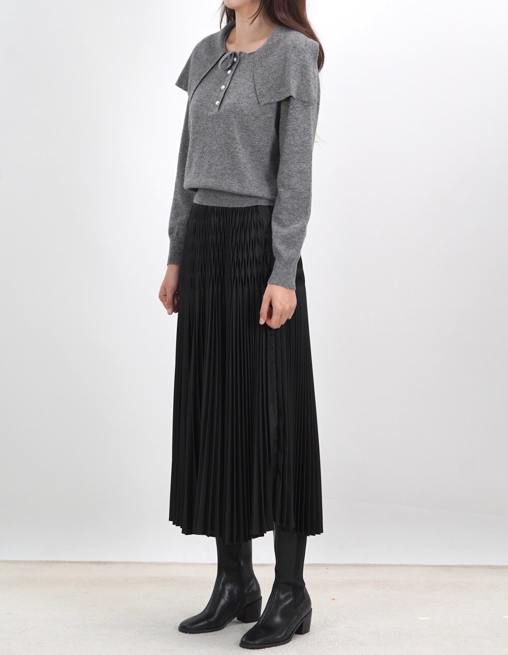 [수입 프리미엄] 파리 그라치아 스카프 카라 니트