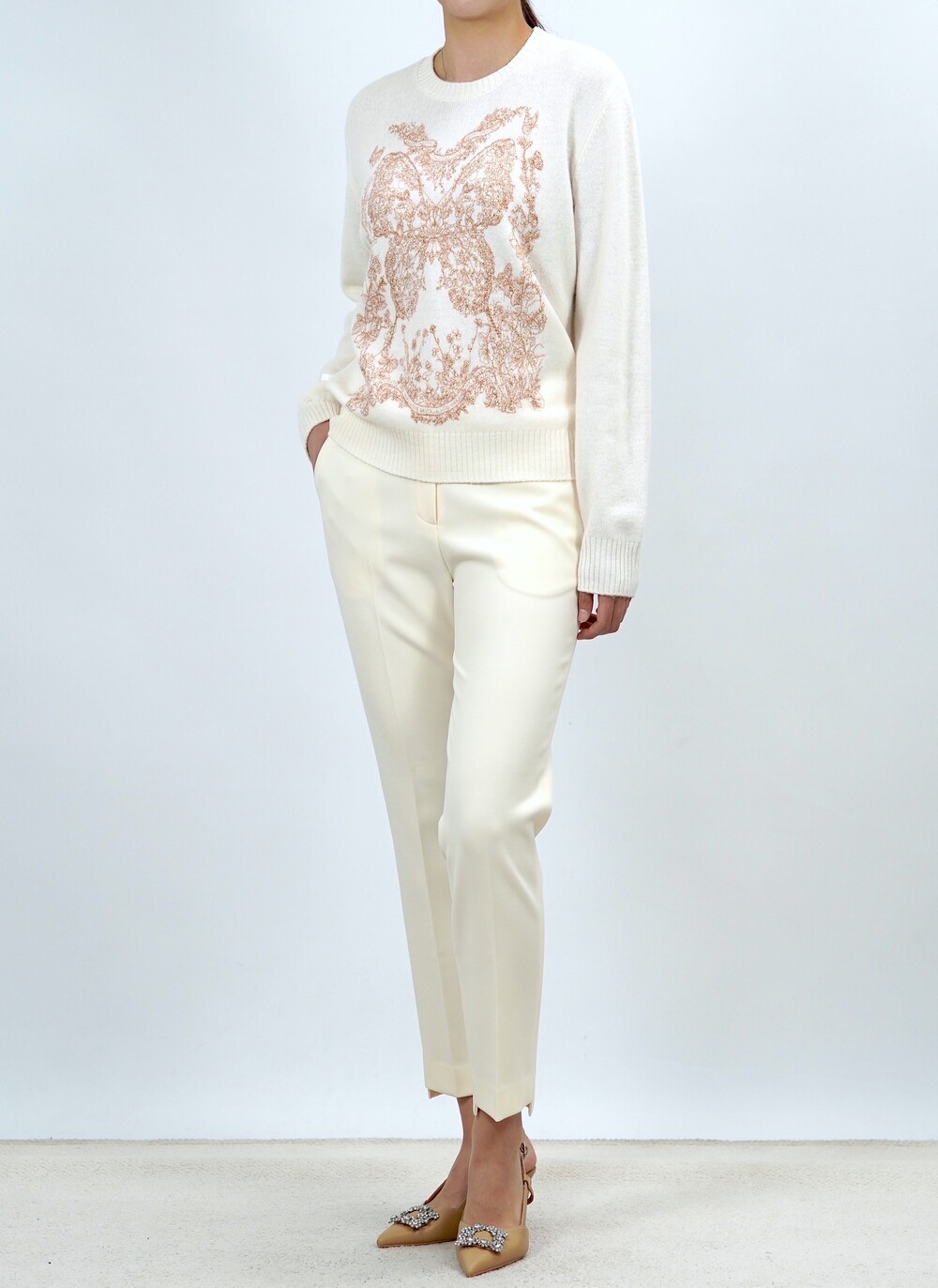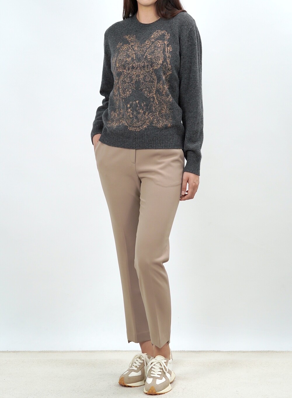 새겨놓은 울 니트 스웨터.