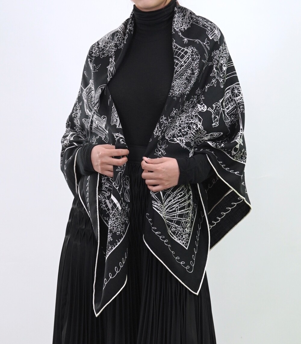 [수입 캐시미어 실크] 유러피안 가든 라지 까레 스카프