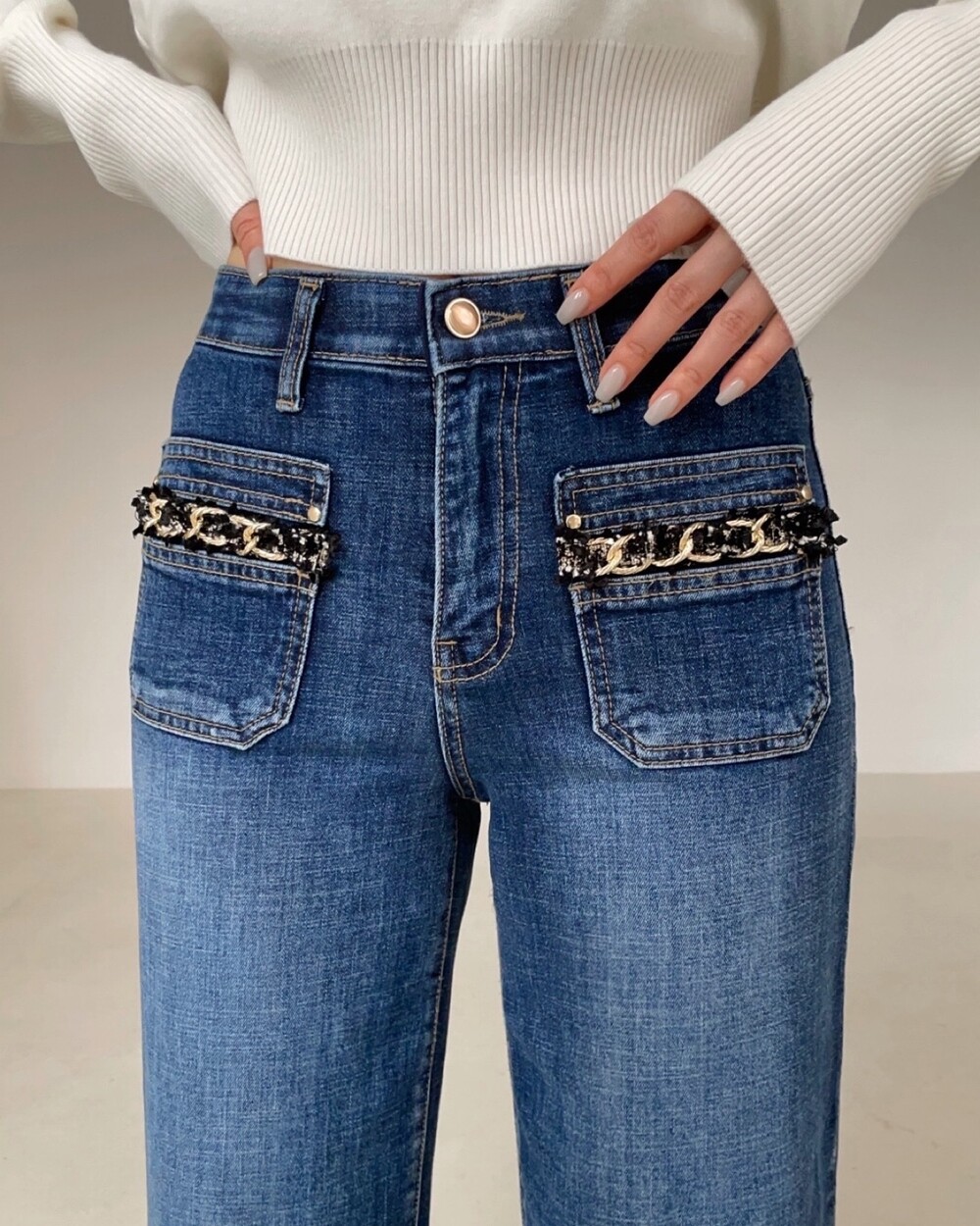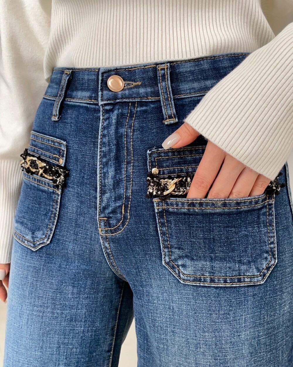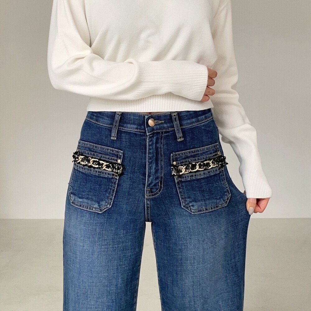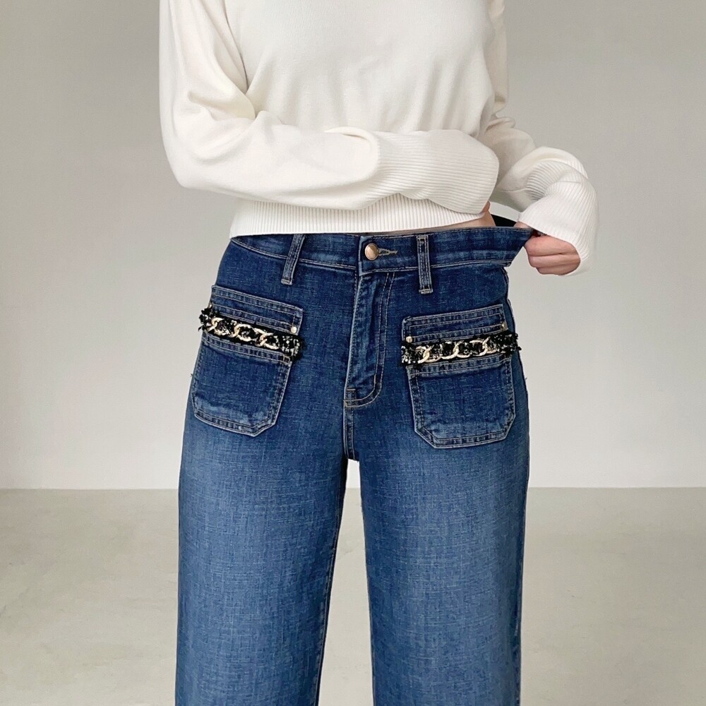 프렌치 코코 트위드 포켓 스탠다드 진