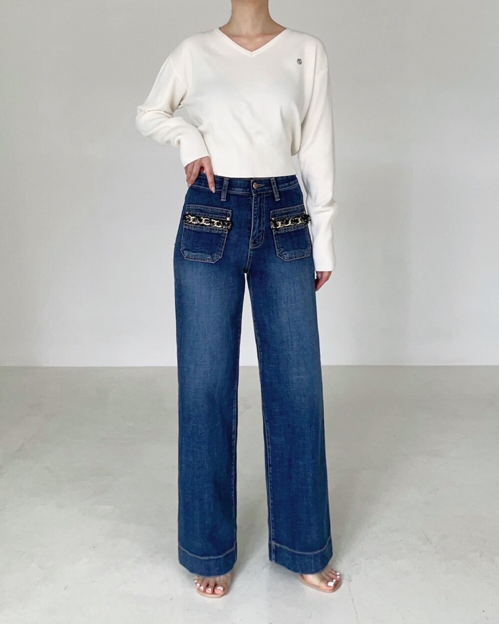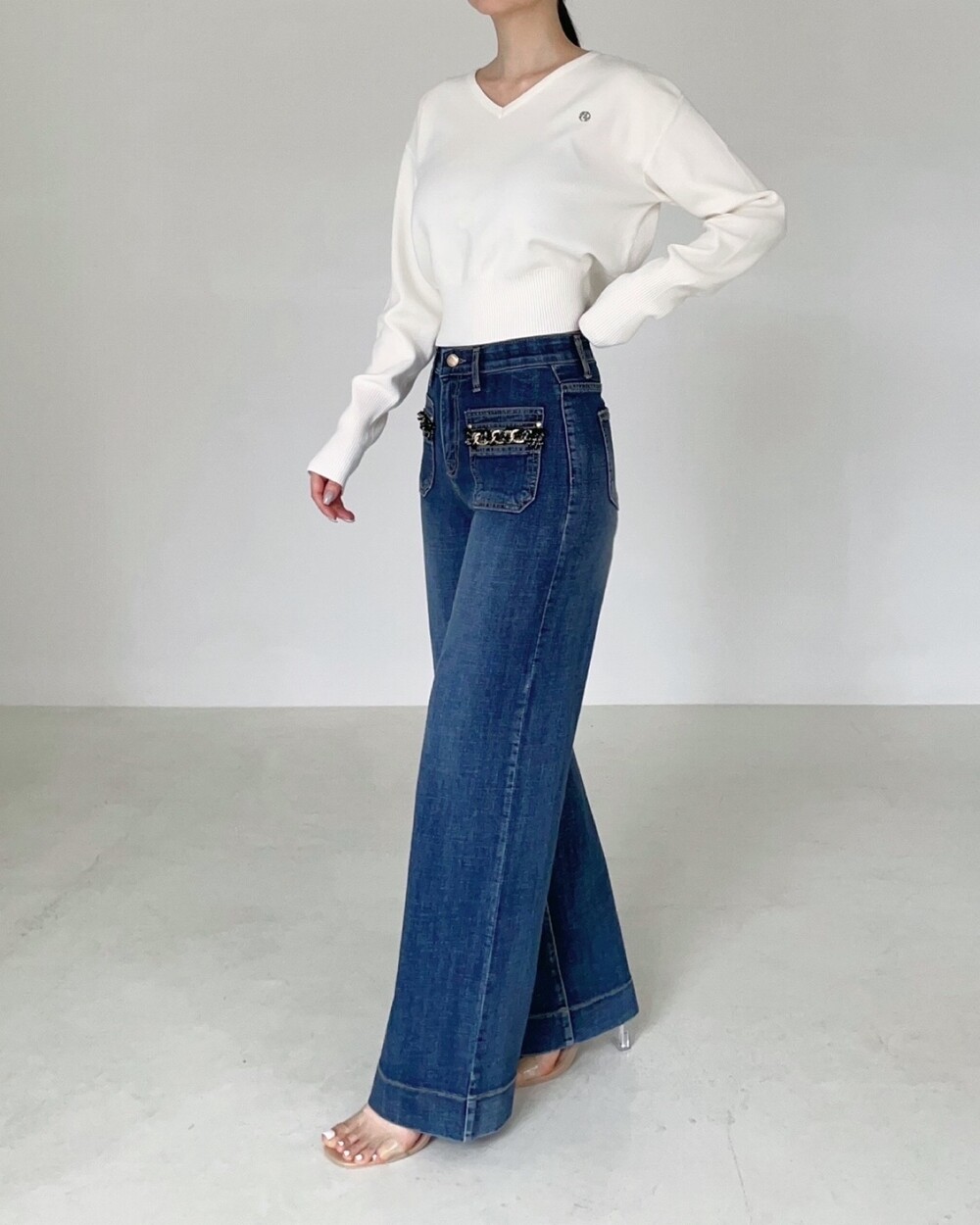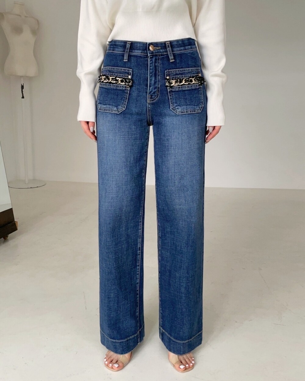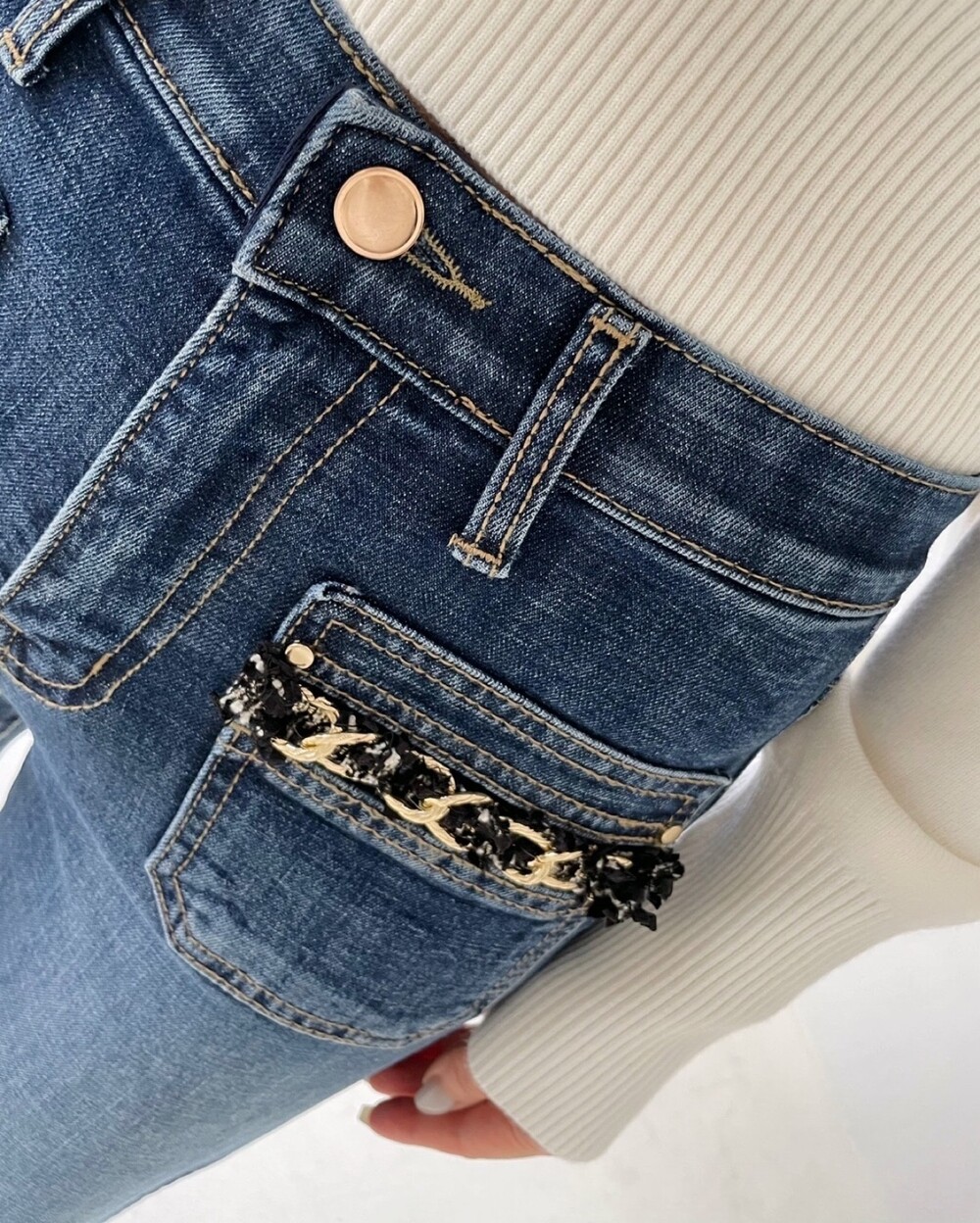 프렌치 코코 트위드 포켓 스탠다드 진