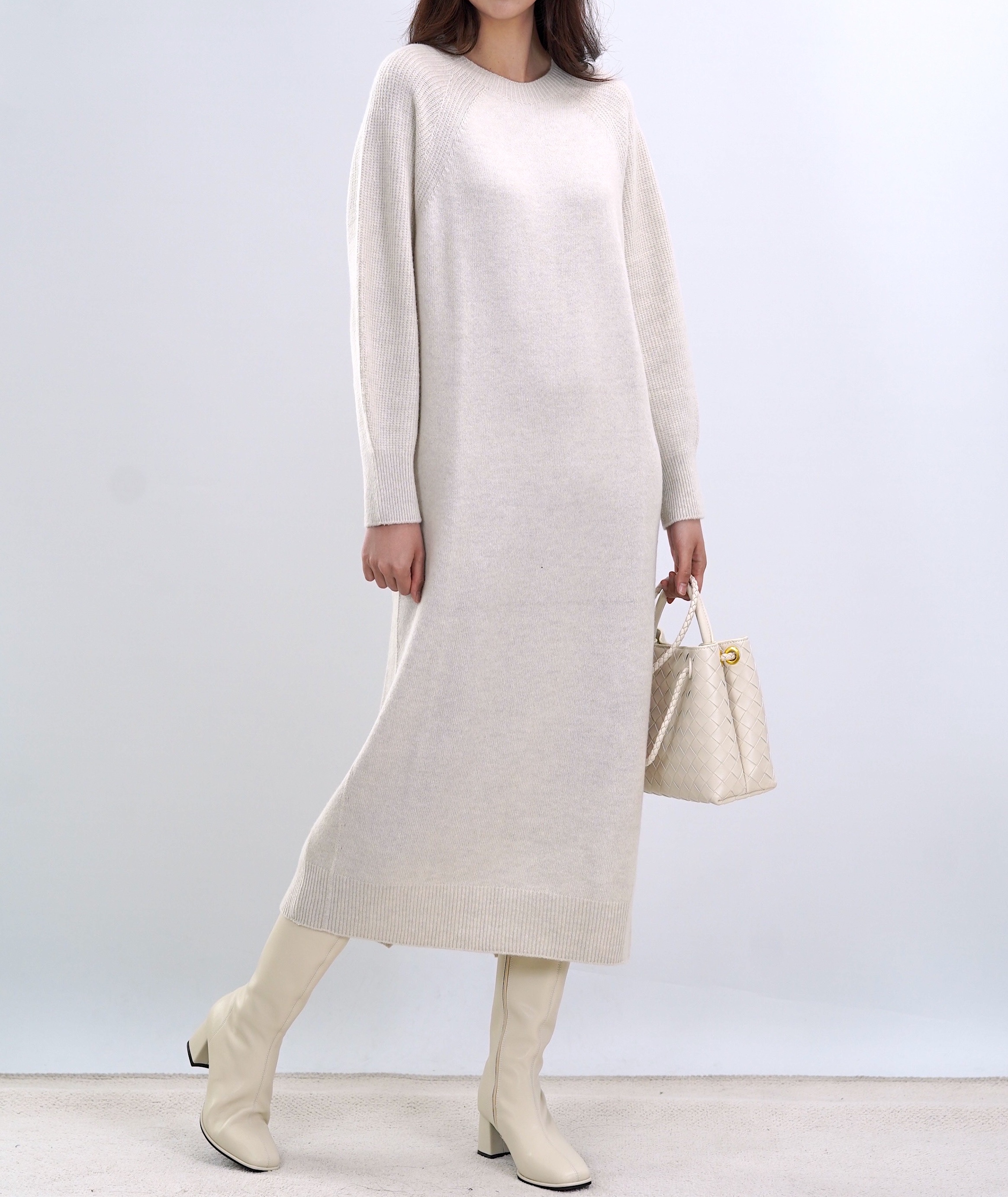 [프리미엄 캐시 울] 밀란 모노 라운지 니트 드레스