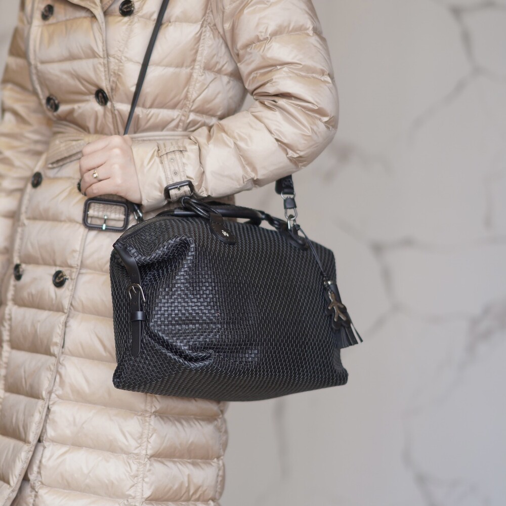 통가죽 소재에 패턴이 돋보이는 보스턴 백입니다