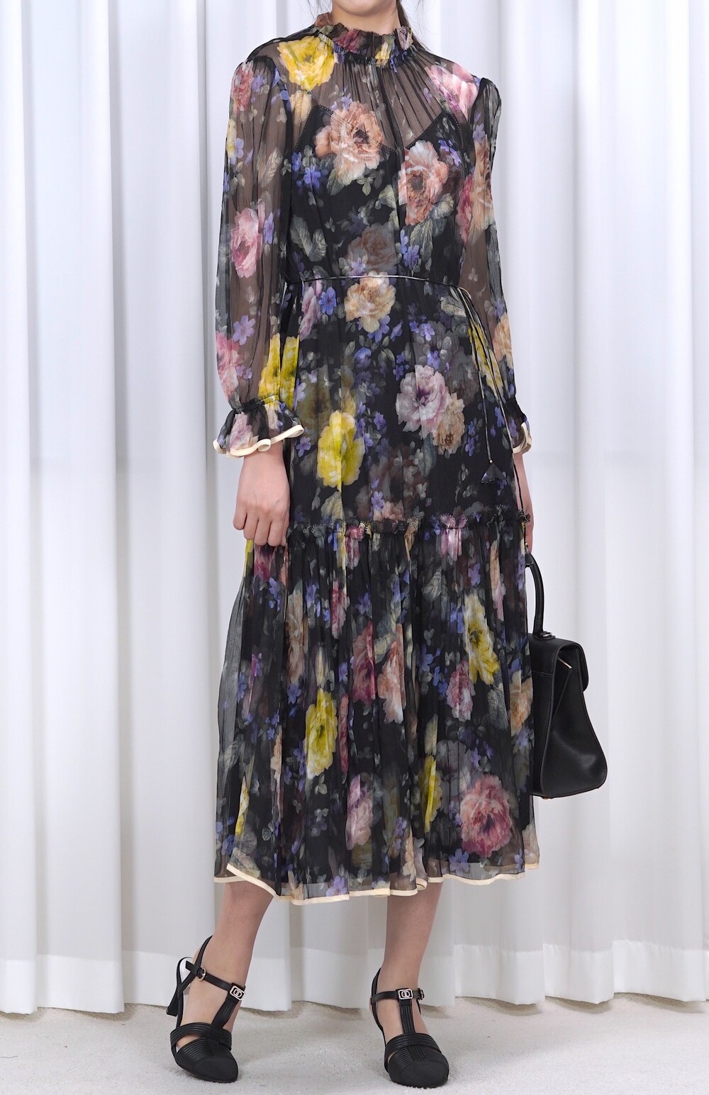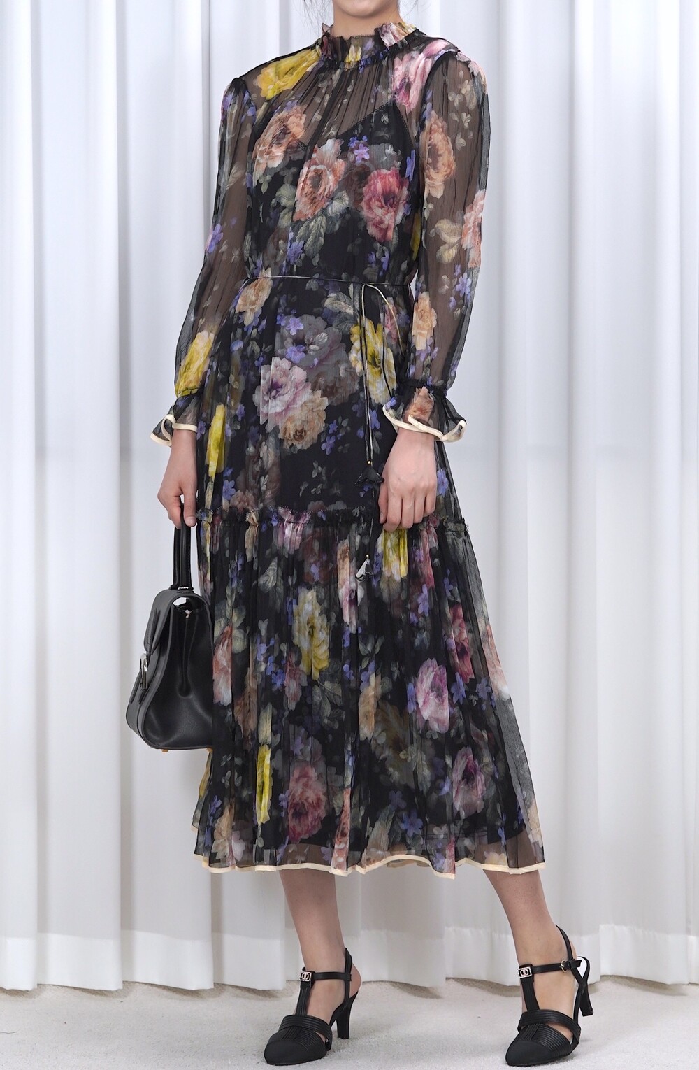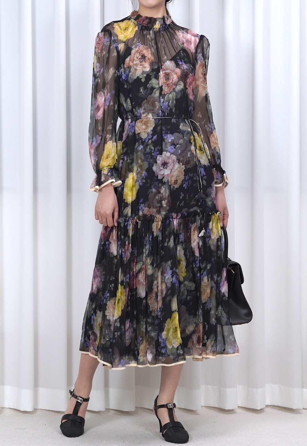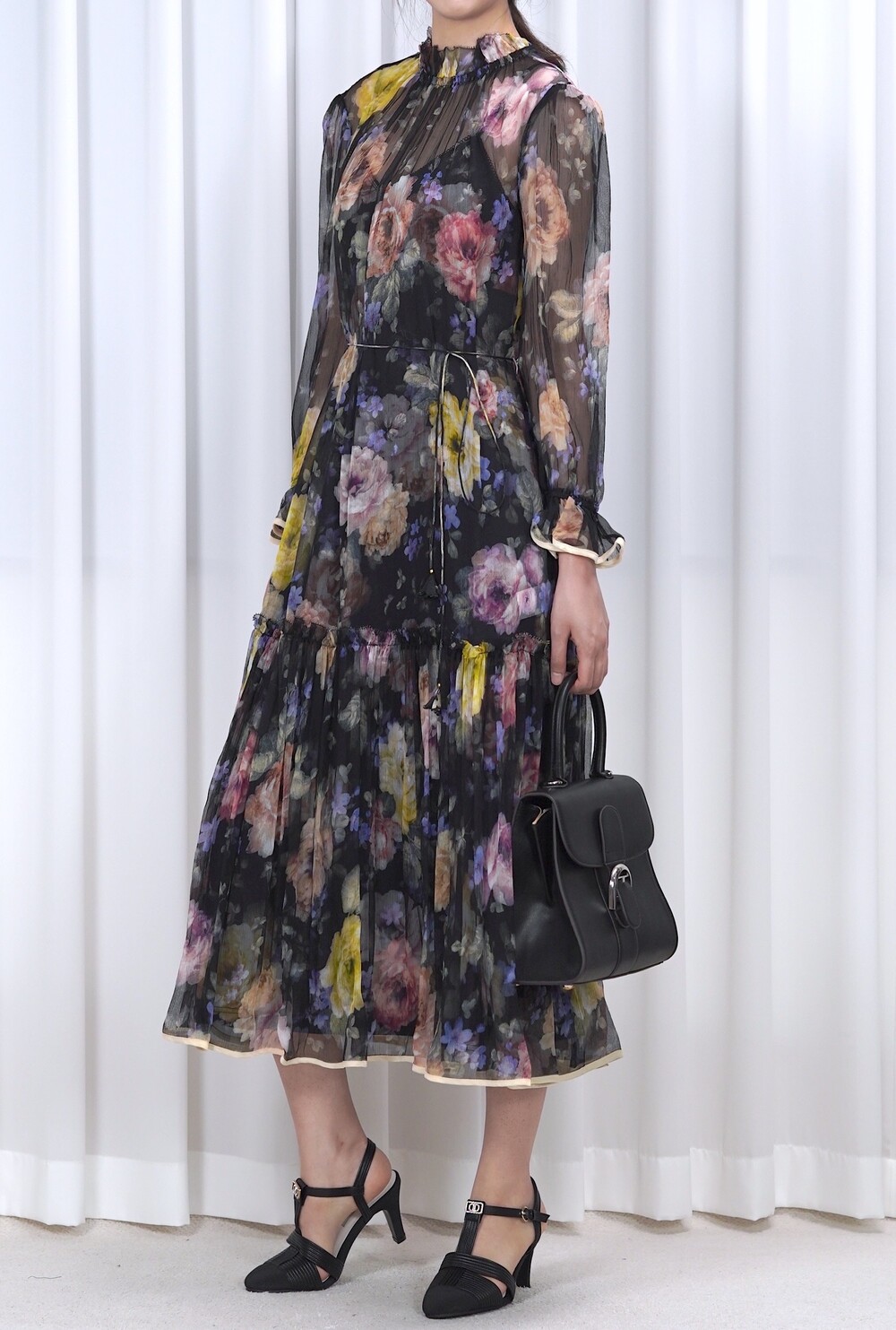 [수입 프리미엄] 밀란 로맨틱 플라워 실크 시폰 드레스