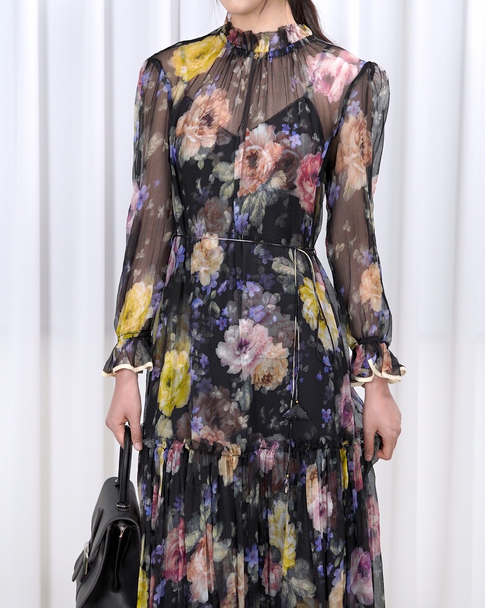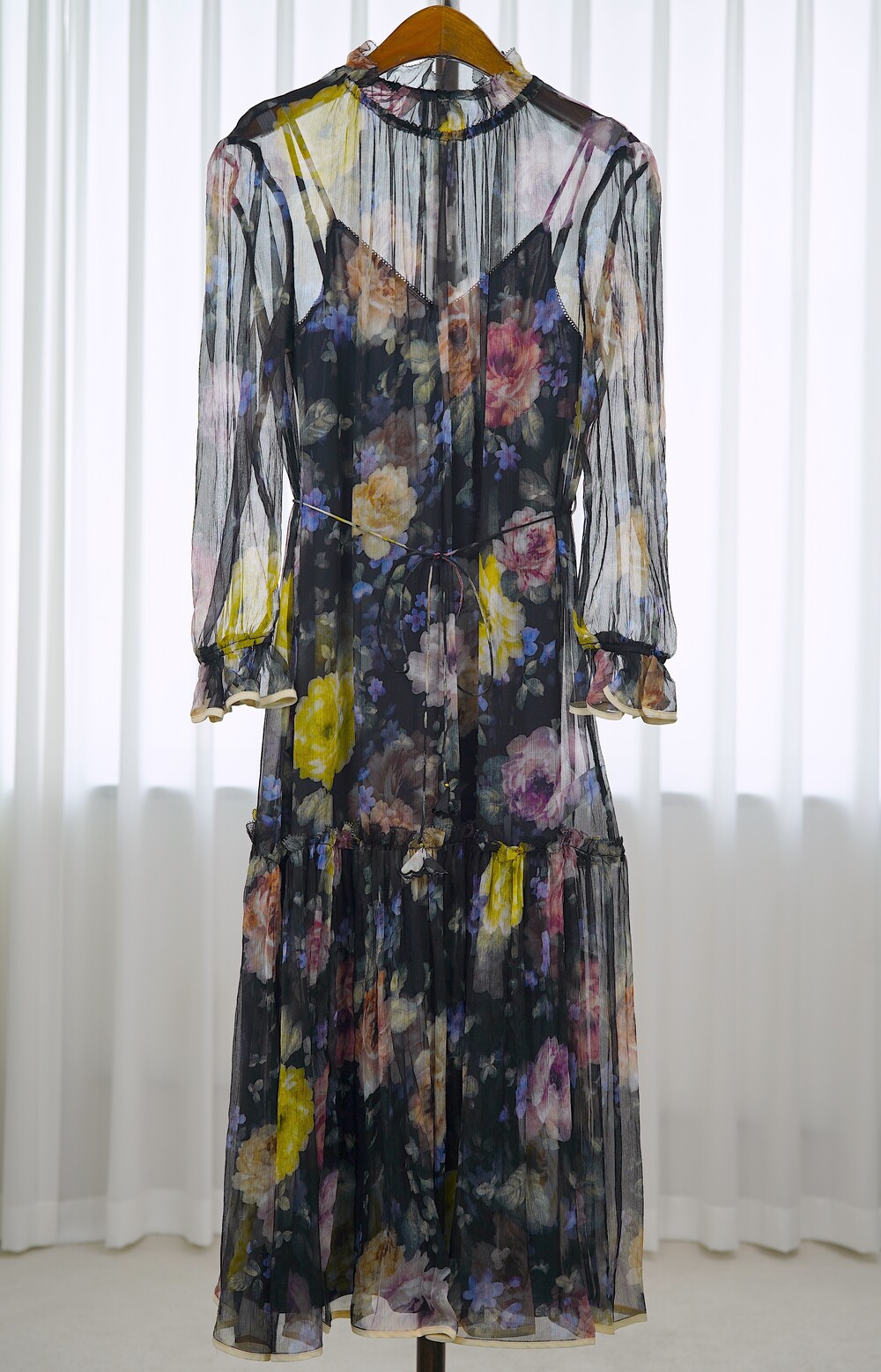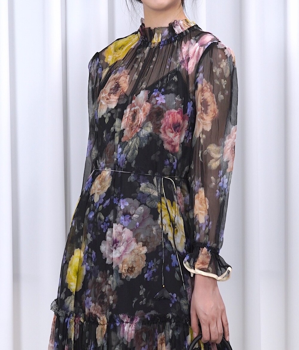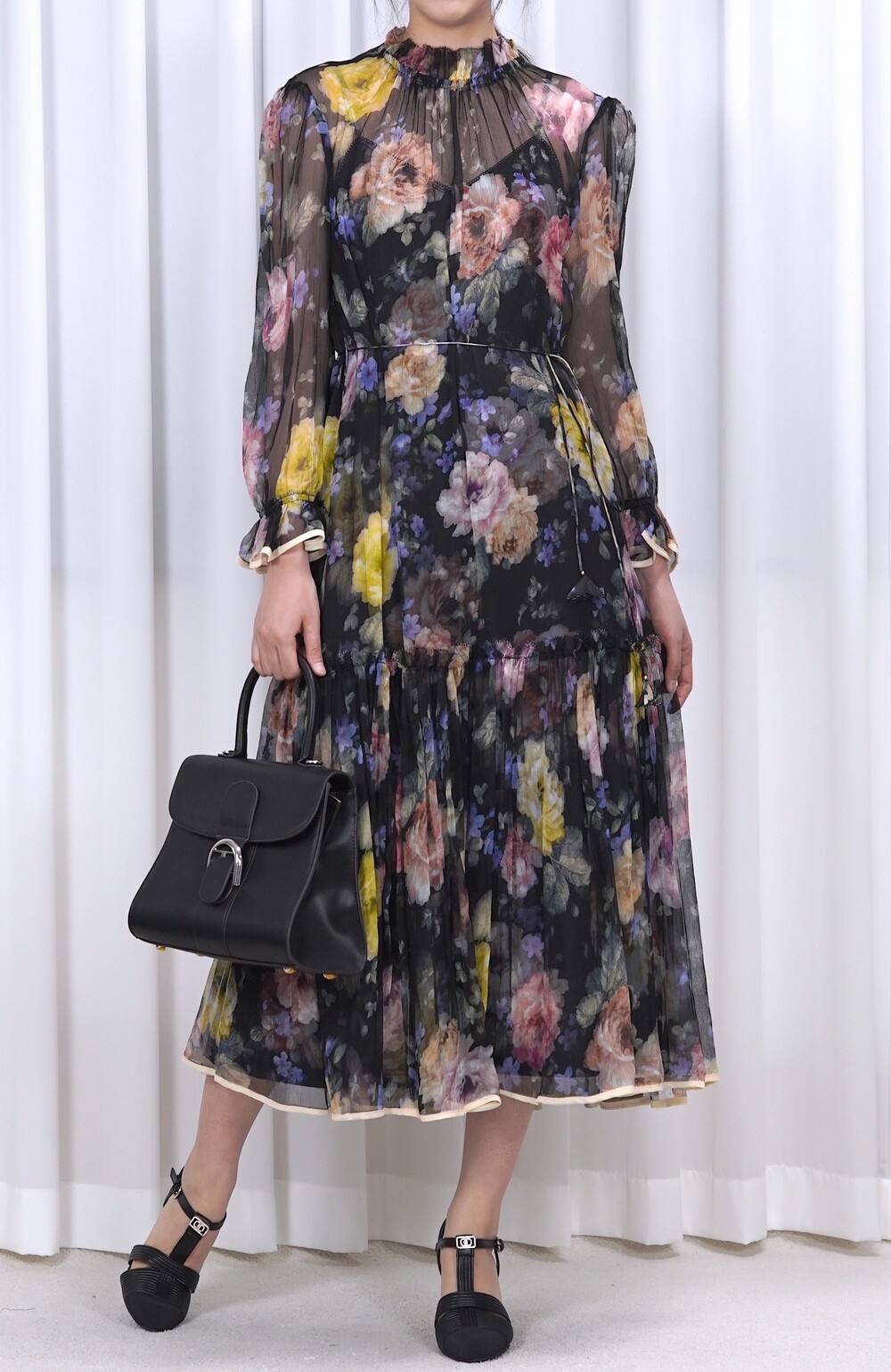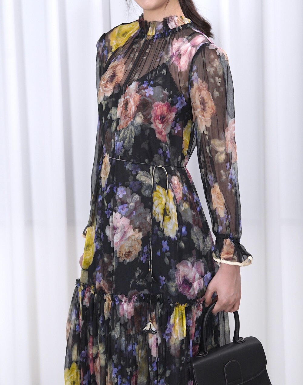 [수입 프리미엄] 밀란 로맨틱 플라워 실크 시폰 드레스