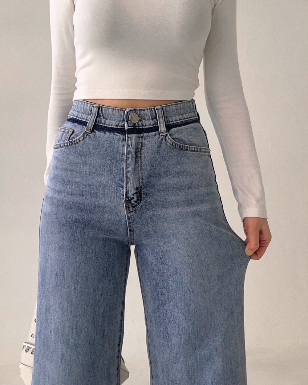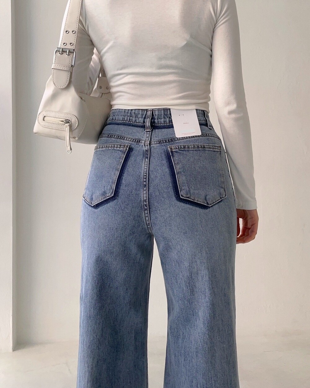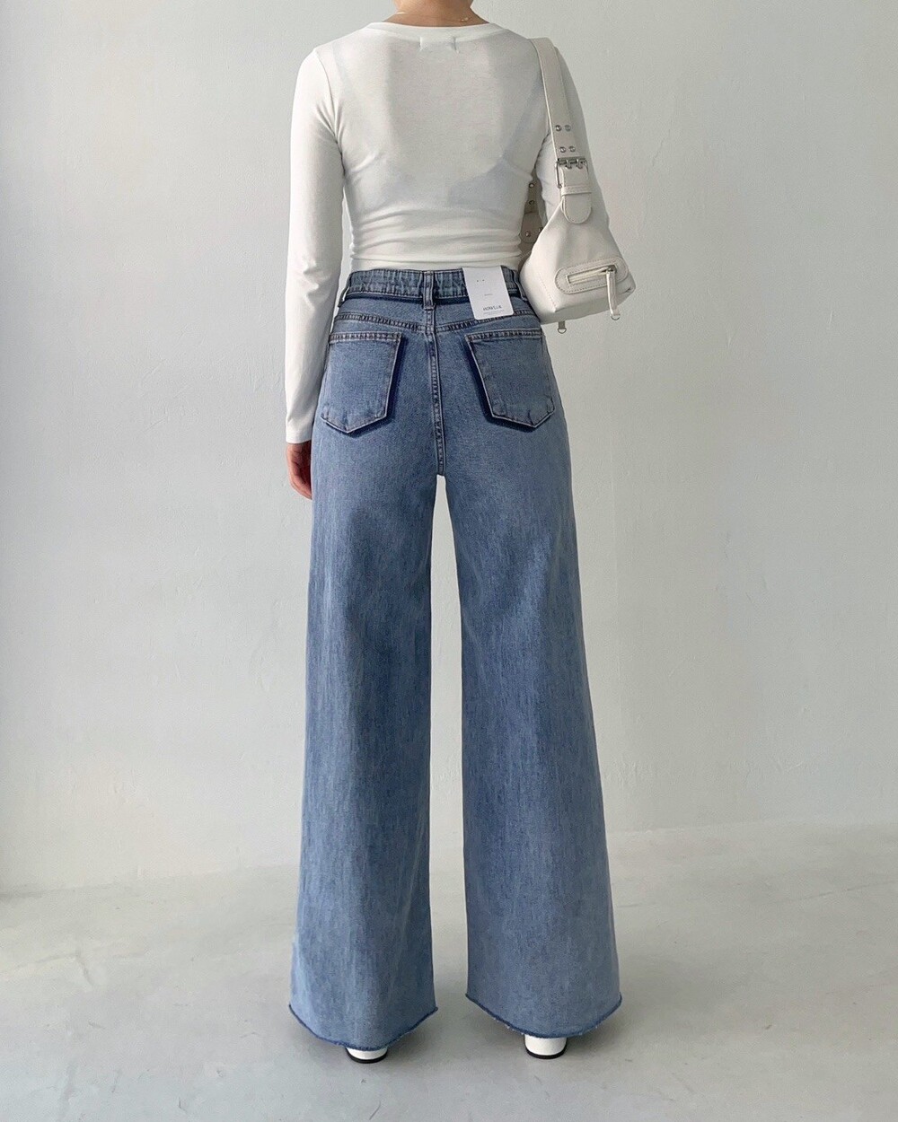 [빅사이즈 기획] 모나코 워싱 라인 와이드 데님진
