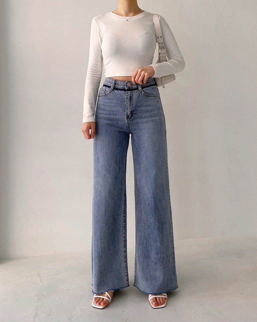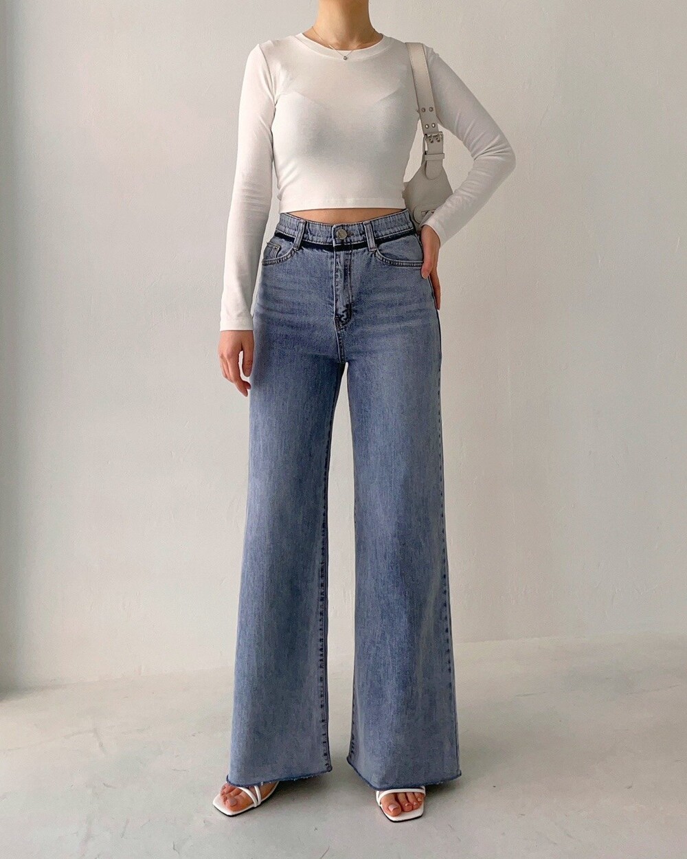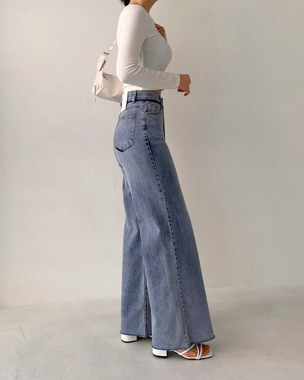[빅사이즈 기획] 모나코 워싱 라인 와이드 데님진